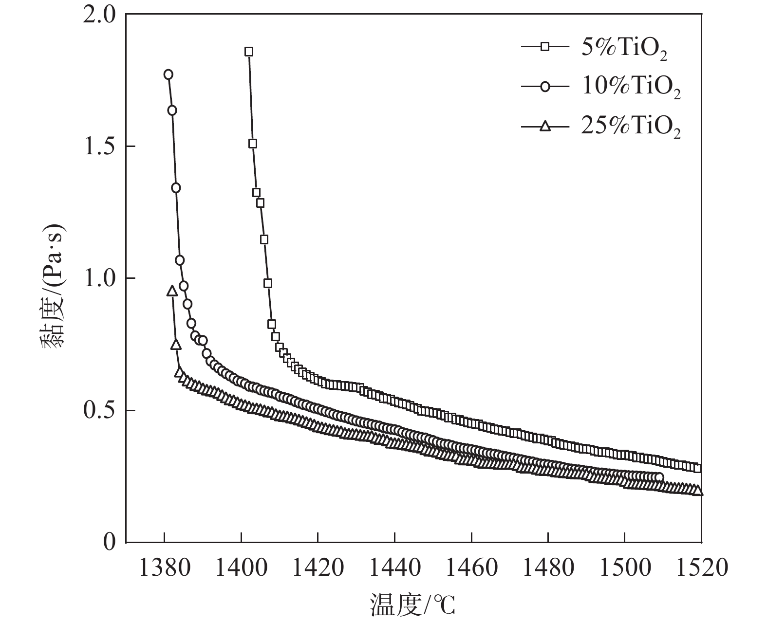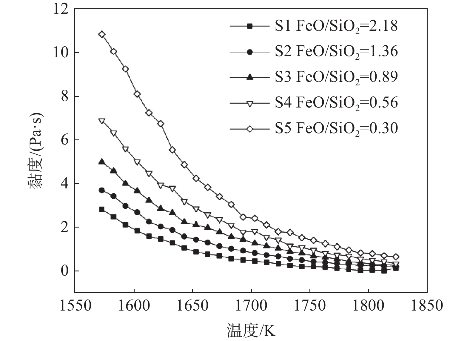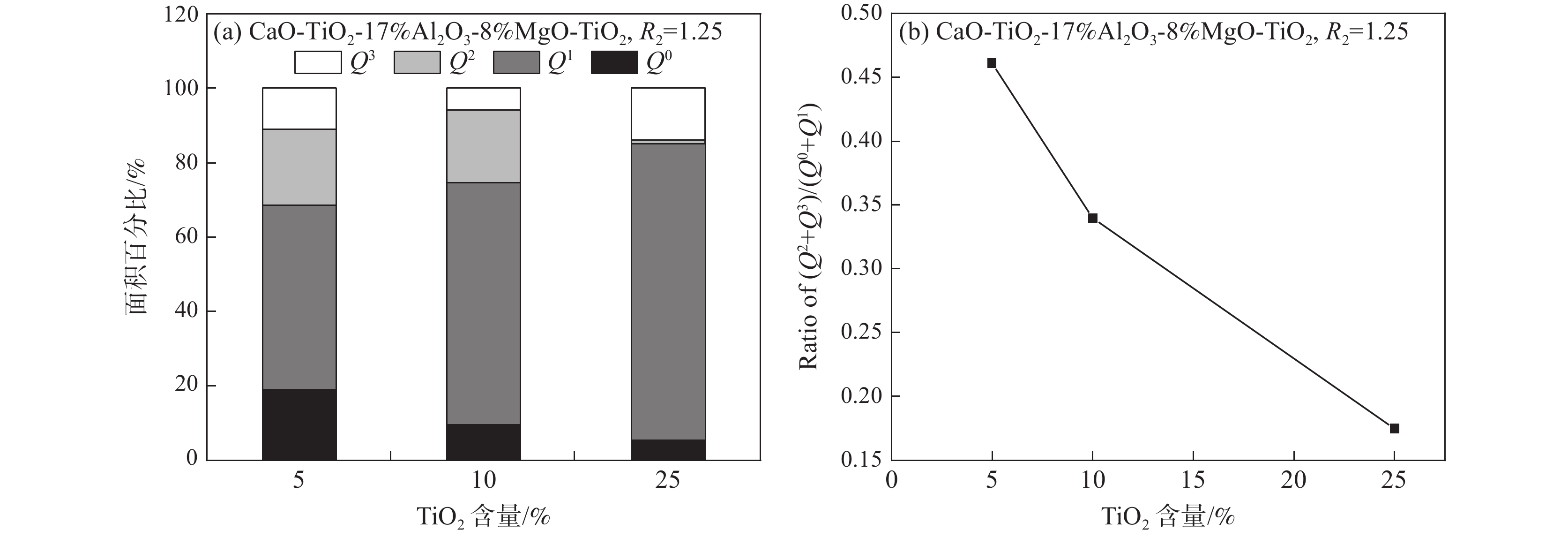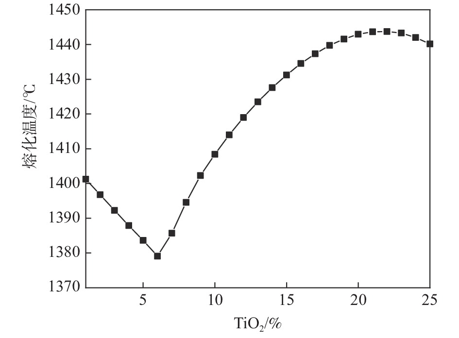 With the increase of the high-alumina raw materials with high economy in blast furnace (BF) of domestic iron and steel enterprises, the content of Al2O3 in slag increases and the fluidity of the slag iron becomes worse, which brings a series of problems to BF smelting. Taking five-component CaO-SiO2-Al2O3-MgO-TiO2 slag system as the research object, through phase diagram theoretical calculation, experimental research and slag structure analysis, the effects of different TiO2 content (low titanium 5%, medium titanium 15%, and high titanium 25%) in high-alumina slag on the viscosity and melting temperature of high-alumina BF slag were studied, The reasons affecting the physicochemical properties of slag are analyzed by slag structure. The results show that the fixed alkalinity R2 is 1.25, the mass fraction of TiO2 increases from 1% to 25% and the melting temperature of slag in the phase diagram first decreases and then increases. When the mass fraction of TiO2 is 7%, the liquid phase of slag first precipitates from plagioclase calcium aluminosilicate (Ca2Al2SiO7 ) to calcium titanate (CaTiO3) with melting point of 1975 ℃, and the melting temperature of slag increases. When the TiO2 content increases from 5% (low titanium) to 25% (high titanium) the slag viscosity and melting temperature decrease. The higher the temperature, the better the fluidity of slag, that is, TiO2 in slag exists in [TiO6]8- octahedron structure, which can disintegrate the complex silica network structure in slag. When the content of TiO2 increases from 5% to 25%, the content of complex structural unit Si(Q2+Q3) in the slag decreases, the content of simple structural unit Si(Q0+Q1) increases, Si(Q2+Q3 )/Si(Q0+Q1) decreases, and the slag structure is simplified, that is, TiO2 acts as a slag modifier in the slag whether in low, medium or high titanium content, which is helpful to reduce the viscosity and it plays a positive role in improving slag fluidity.