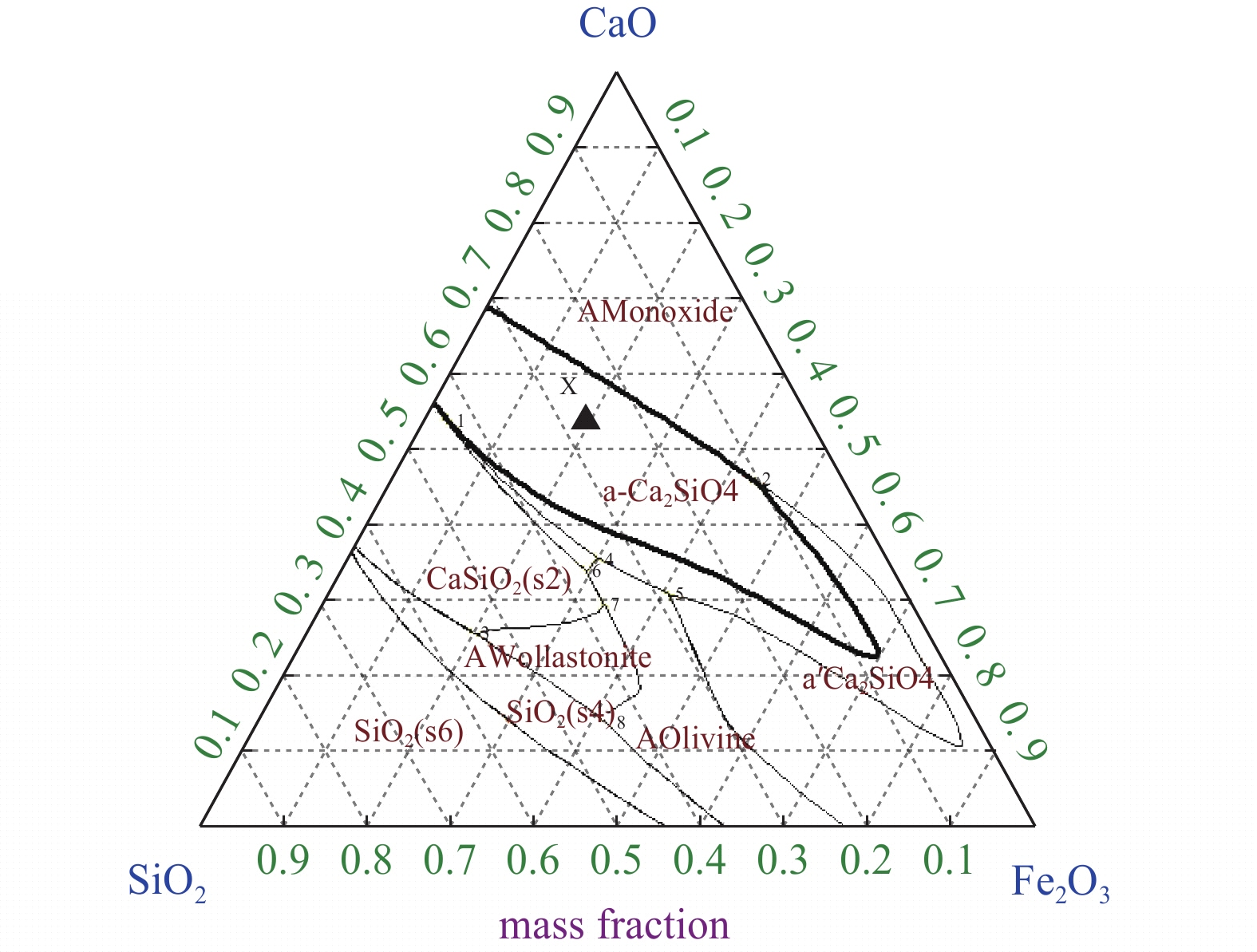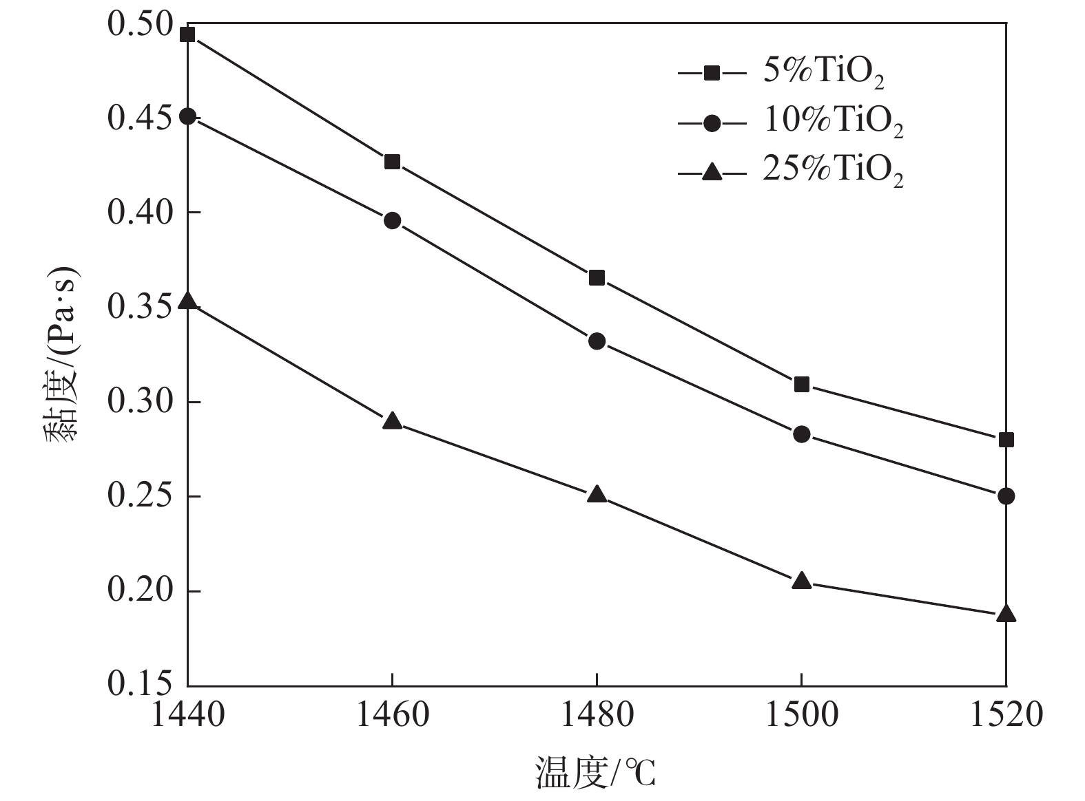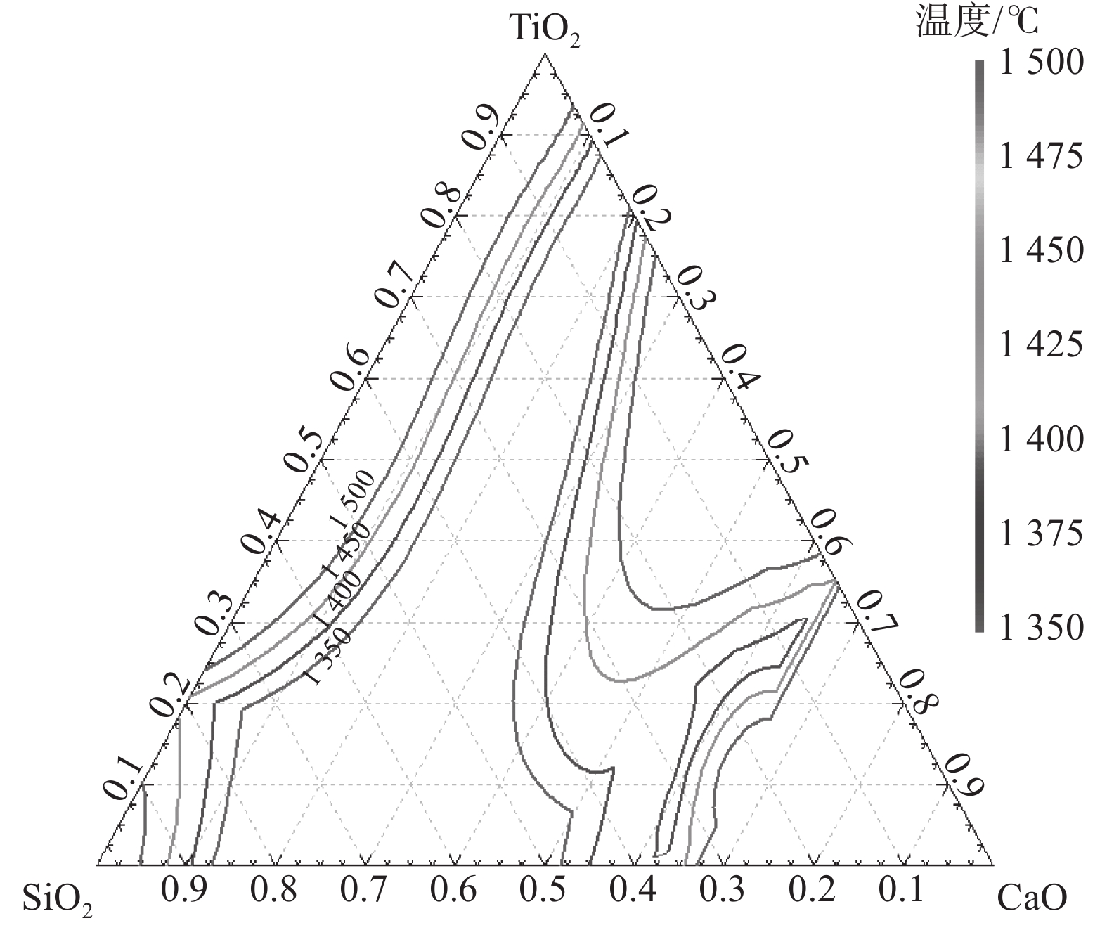 With the increase of the high-alumina raw materials with high economy in blast furnace (BF) of domestic iron and steel enterprises, the content of Al2O3 in slag increases and the fluidity of the slag iron becomes worse, which brings a series of problems to BF smelting. Taking five-component CaO-SiO2-Al2O3-MgO-TiO2 slag system as the research object, through phase diagram theoretical calculation, experimental research and slag structure analysis, the effects of different TiO2 content (low titanium 5%, medium titanium 15%, and high titanium 25%) in high-alumina slag on the viscosity and melting temperature of high-alumina BF slag were studied, The reasons affecting the physicochemical properties of slag are analyzed by slag structure. The results show that the fixed alkalinity R2 is 1.25, the mass fraction of TiO2 increases from 1% to 25% and the melting temperature of slag in the phase diagram first decreases and then increases. When the mass fraction of TiO2 is 7%, the liquid phase of slag first precipitates from plagioclase calcium aluminosilicate (Ca2Al2SiO7 ) to calcium titanate (CaTiO3) with melting point of 1975 ℃, and the melting temperature of slag increases. When the TiO2 content increases from 5% (low titanium) to 25% (high titanium) the slag viscosity and melting temperature decrease. The higher the temperature, the better the fluidity of slag, that is, TiO2 in slag exists in [TiO6]8- octahedron structure, which can disintegrate the complex silica network structure in slag. When the content of TiO2 increases from 5% to 25%, the content of complex structural unit Si(Q2+Q3) in the slag decreases, the content of simple structural unit Si(Q0+Q1) increases, Si(Q2+Q3 )/Si(Q0+Q1) decreases, and the slag structure is simplified, that is, TiO2 acts as a slag modifier in the slag whether in low, medium or high titanium content, which is helpful to reduce the viscosity and it plays a positive role in improving slag fluidity.