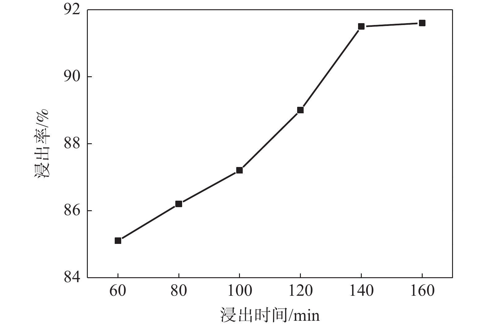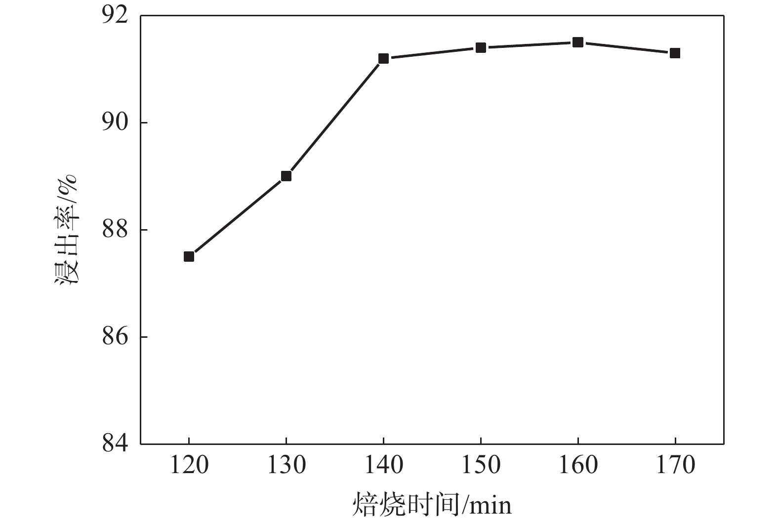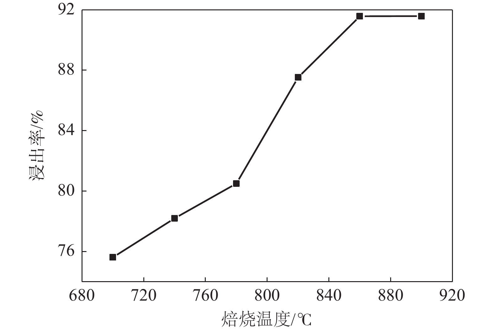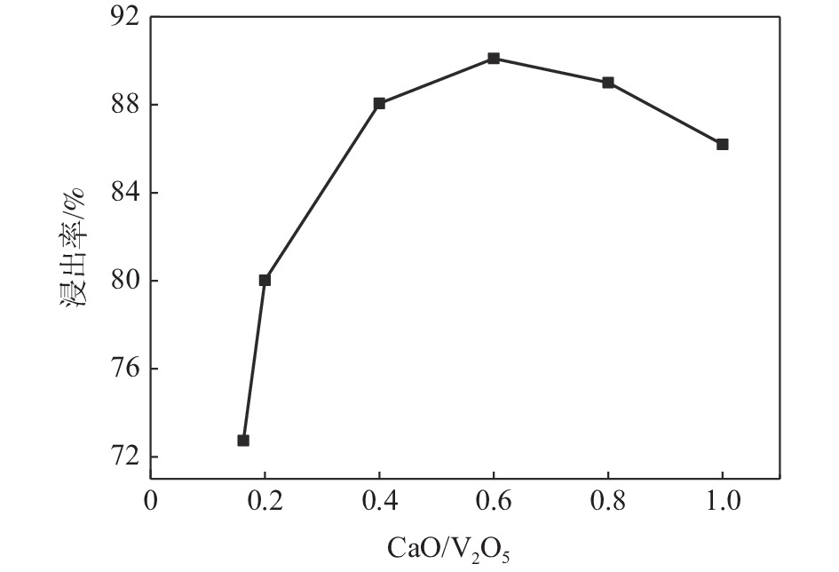 In view of the high-calcium content of high calcium and high-phosphorus vanadium slag and the existing vanadium extraction process difficult to effectively extract vanadium, blank roasting-carbonation leaching process is investigated, and the response surface method is used for optimization. The effects of CaO/V2O5 mass ratio, roasting temperature, roasting time, leaching stirring speed, leaching temperature, leaching time and sodium carbonate solution concentration on the leaching rate of vanadium from high-calcium vanadium slag were investigated. The results show that the average vanadium leaching rate is 92.22% when the mass ratio of CaO/V2O5 in vanadium slag is 0.6, calcination at 899 ℃ for 160 min, clinker leaching temperature at 95℃, leaching time of 140 min, sodium carbonate concentration of 168 g/L and stirring speed of 300 r/min. Compared with the traditional vanadium extraction process, the blank roasting-carbonation leaching process has the advantage of high vanadium leaching rate for high-calcium vanadium slag.