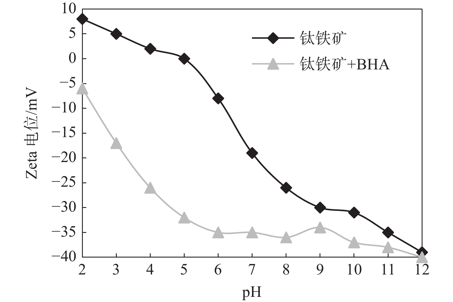 Flotation is an effective means to recover ilmenite, in which collector plays a key role. At present, the research on ilmenite flotation collectors mainly focuses on the collectors including oleic acid and hydroxamic acid. Among them, benzohydroxamic acid based collectors have attracted much attention because of their high selectivity, however, there is little research on the flotation mechanism of ilmenite. Based on the study of the interface properties of ilmenite, the flotation mechanism of benzohydroxamic acid and ilmenite was revealed by means of single mineral flotation test, infrared spectroscopy, contact angle and potentiodynamic test.