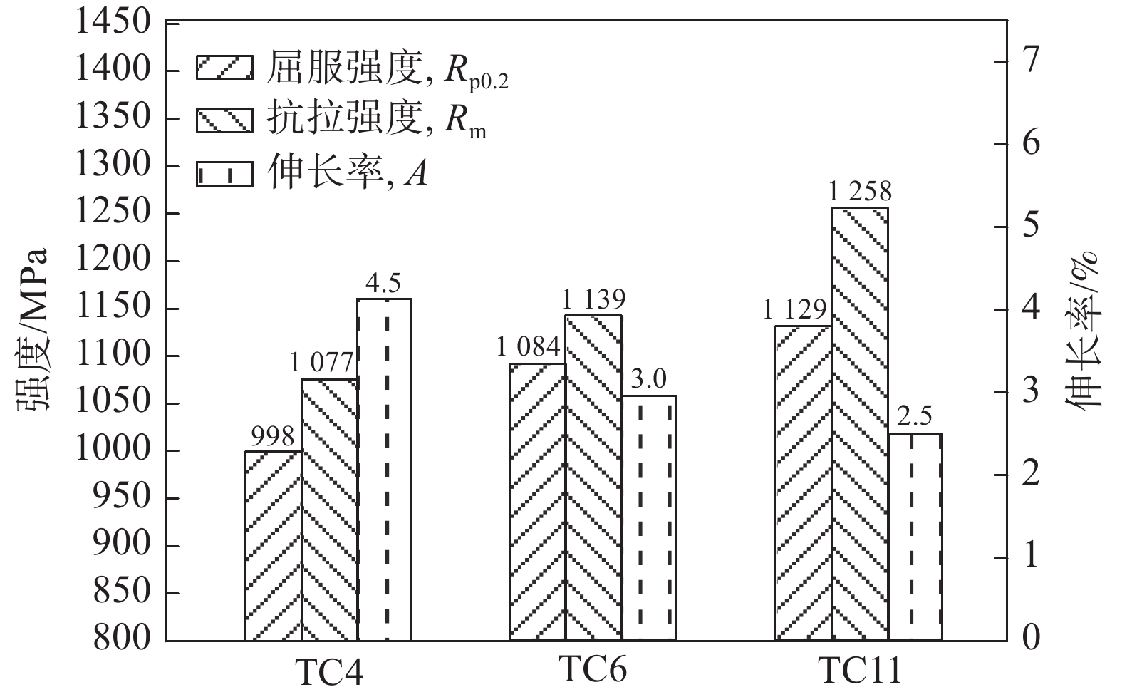 In order to study the effect of dynamic compression properties on ballistic resistance of titanium alloy materials, three different strength grades of α+β two-phase titanium alloys, TC4, TC6 and TC11, are selected for the dynamic compression test, quasi-static tensile test and 5.8 mm caliber bullet target test to compare and analyze the microstructure, mechanical properties, dynamic compression properties and crater morphology. The results show that TC4, TC6 and TC11 strengthened by solution and aging heat treatment, the tensile strength and dynamic compressive strength of TC11 titanium alloy are the highest, reaching 1 258 MPa and 1 973 MPa, respectively. Three kinds of titanium alloy target plates with a thickness of 12 mm are used for target test, and the 5.8 mm caliber bullet with vertical incidence is effectively protected. The pit depth of TC11 titanium alloy is 2.4 mm and the pit size is 7.5 mm × 5.5 mm, which is smaller than the crater size of the other two titanium alloy, and shows a better protective effect. For the protection of 5.8 mm caliber bullet, there is a corresponding relationship between the dynamic compression performance and its elastic resistance. The higher of the dynamic compression strength and the critical fracture strain, the more energy absorbed by the impact process, and the better the ballistic performance.