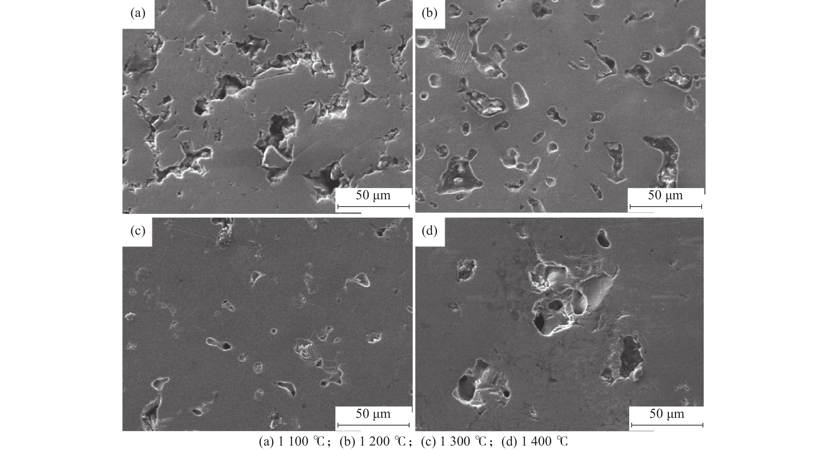 The porous Ti-15Al alloy materials were prepared by powder metallurgy with Ti and Al powder as raw materials. The effects of different sintering temperatures on the phase composition, micropore structure, compressive and corrosion resistance were studied. The results show that the equilibrium phase of α-Ti and Ti3Al is formed due to partial diffusion and solid-phase reaction between metal Ti and Al after the porous Ti-15Al alloy sintered at high temperature. With the increase of sintering temperature, the structure gradually changes from elongated through-holes to nearly spherical closed pores, and the porosity and average pore size both increases first and then decreases. The porosity and pore size after sintering at 1 300 ℃ reach the minimum, with values of 11.6% and 13.8 μm, respectively. Due to the change of pore structure, the compressive strength and corrosion resistance of porous Ti-15Al alloy increase first and then decrease with the increase of sintering temperature. The compressive strength and corrosion resistance of porous Ti-15Al alloy are the best when the sintering temperature is 1 300 ℃, the maximum compressive strength is 79 MPa, and the minimum corrosion current density is 2.05×10?7 A/cm2.