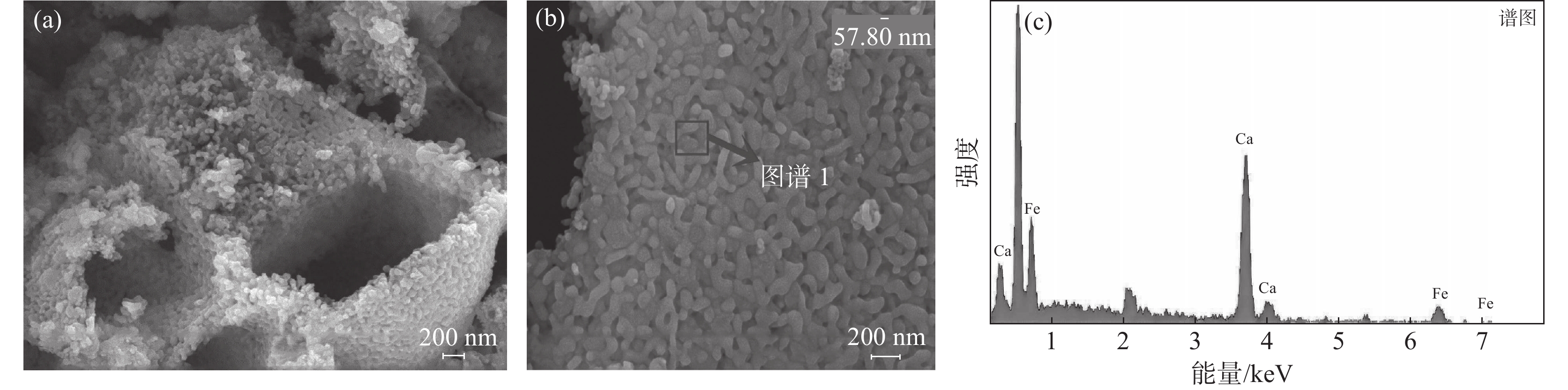 Using Iron(Ⅲ) nitrate nonahydrate and calcium nitrate tetrahydrate as raw materials, deionized water as solvent, citric acid as complexing agent, ammonia water to adjust pH value of solution, blank cordierite honeycomb as support, dicalcium ferrite cordierite honeycomb support type catalyst was prepared. The results show that nanoscale dicalcium ferrite/cordierite honeycomb-supported catalyst with single phase, high crystallinity and developed porosity can be obtained when the molar amount of citric acid is 2.5 times the total amount of calcium and iron ions, and calcinated at 700 ℃ for 2 h. The as-prepared nanosized dicalcium ferrite has a specific surface area of 174.29 m2/g, pore volume of 0.31423 cm3/g, pore size of 7.31 nm, and average pore size of 1.89 nm. It is a kind of non-noble metal catalysts for methane gas (VOCs of typical sintering flue gas) with good catalytic removal and mineralization performance.