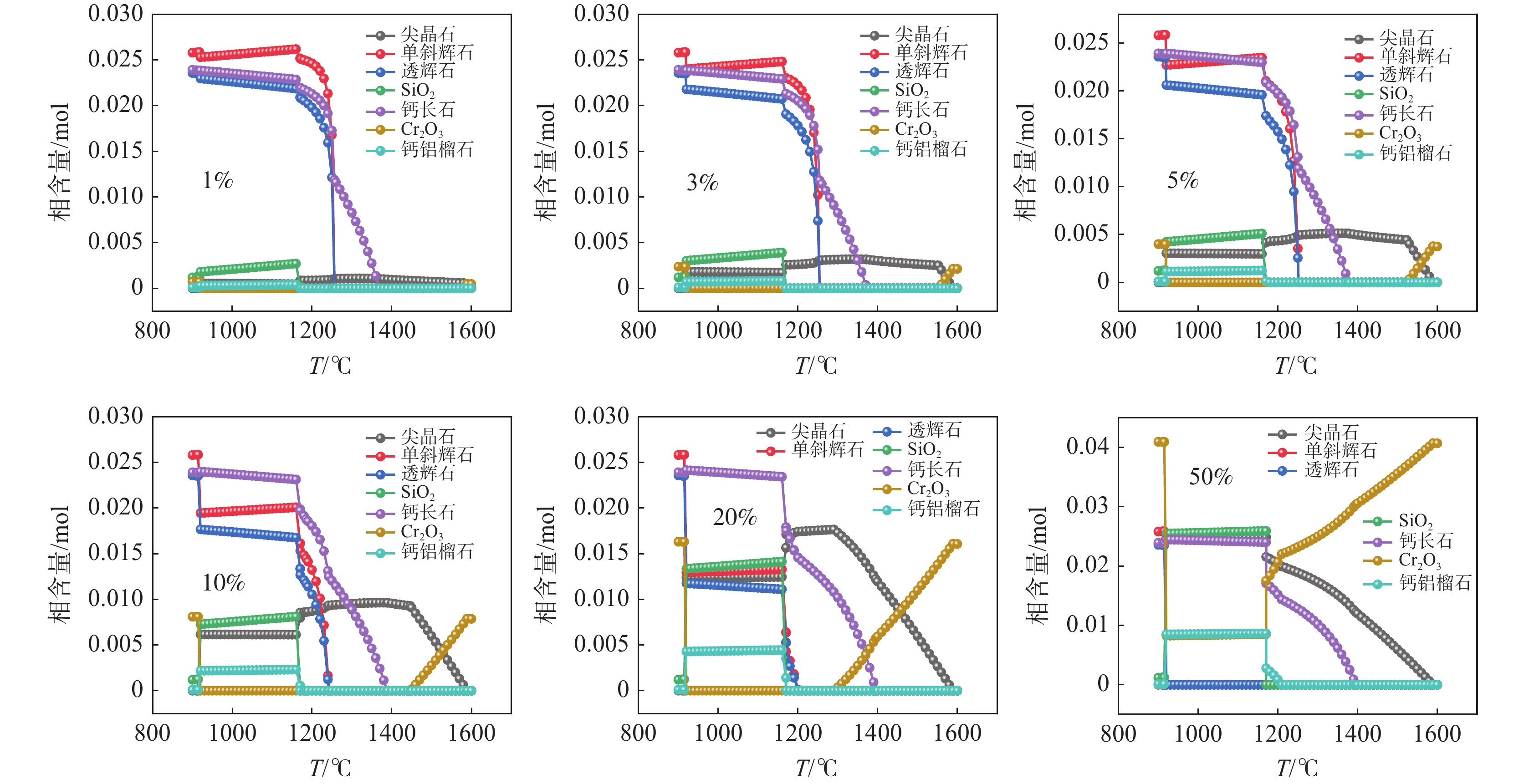 Chromium-containing stainless steel slag will lead to the leaching of chromium and environment problems. Glass-ceramics possess excellent chromium fixation and physical properties. In order to explore the occurrence law of chromium in anorthite-diopside system, the phase equilibrium of anorthite-diopside glass ceramics was calculated by using thermodynamic software FactSage 7.2, and the sample were prepared by using chromium-containing stainless steel slag. The effects of flux and chromium content on the crystallization and physical properties of the system glass ceramics were studied. The samples were prepared by one-step method with simultaneous nucleation and crystallization. The results show that in the simulation calculation, chromium is first enriched in the spinel phase, and the excess chromium appears in the system in the form of Cr2O3. In the corresponding experimental exploration, when the chromium content reaches 5%, the chromium-containing phase in the system is still only spinel phase, which makes the material have better chromium fixation properties. The flux endows glass-ceramics with higher hardness. Chromium is detected in anorthite-diopside system in toxic leaching experiment. The experiment provides a theoretical basis for the preparation of glass-ceramics from chromium-containing solid waste.
