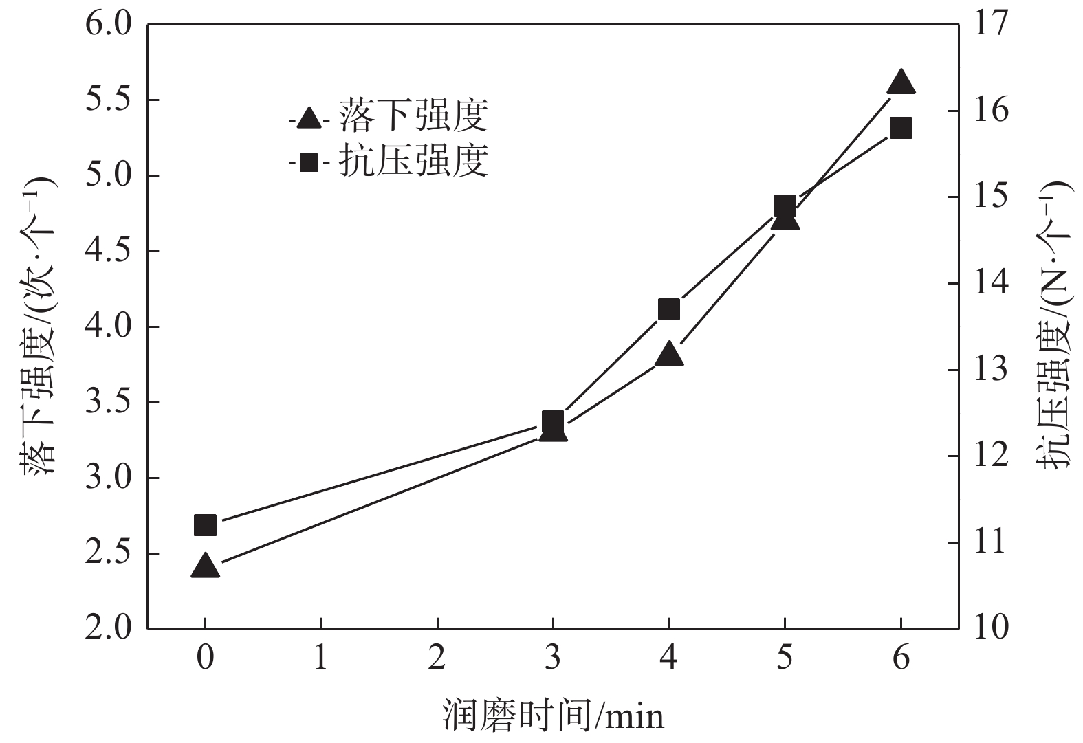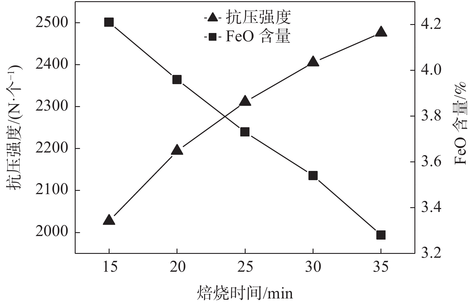 The low compressive strength (average 1 600 N/P) and large strength fluctuation (926 N/P min, 2287 N/P max) of V-Ti pellets greatly affect the stability and smooth operation of blast furnace after being smelted in blast furnace. The technical research and application of improving the compressive strength of full V-Ti pellets have been carried out. After utilizing wet grinding equipment, the proportion of pelletizing mixture less than 0.074 mm is increased from 66.64% to 71.69%. And the surface of mineral particles becomes rough. Besides, the cohesiveness and activity increases as result of installing wet grinding equipment. By increasing the temperature of second preheating stage to about 900 ℃ and reducing the grate speed to prolong the preheating time, at the same time increasing the roasting temperature from 1 150 ℃ to more than 1 200 ℃ and reducing the rotary kiln speed to prolong the roasting time, the diameter of inner zone of pellet can be reduced to less than 3 mm, and the compressive strength is increased to 1 989 N/P and its fluctuation become narrow.