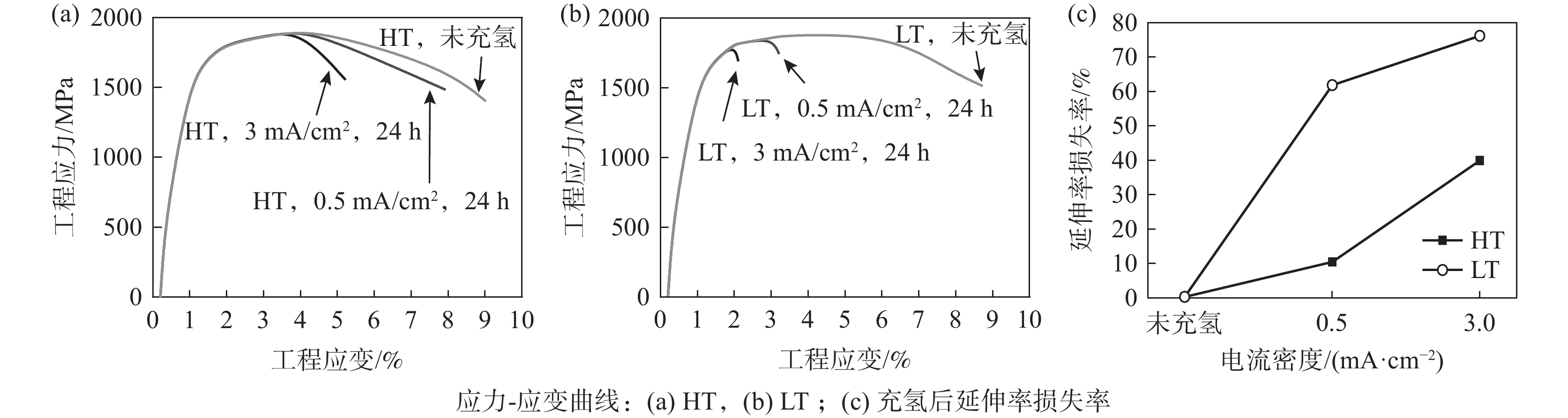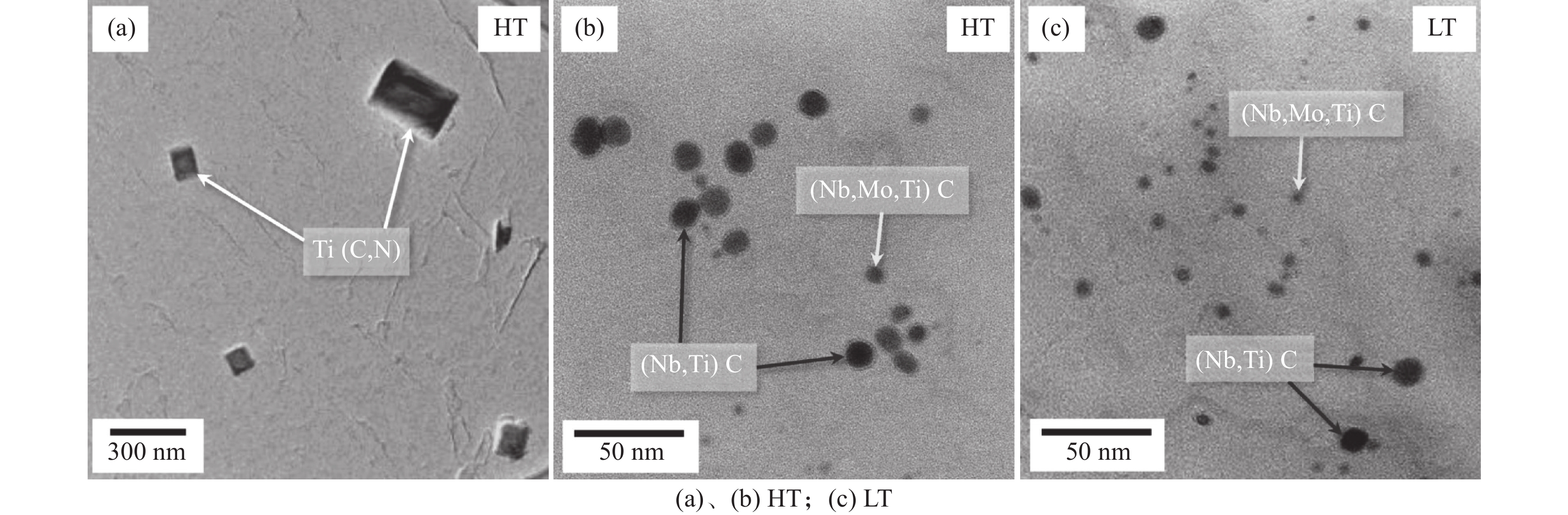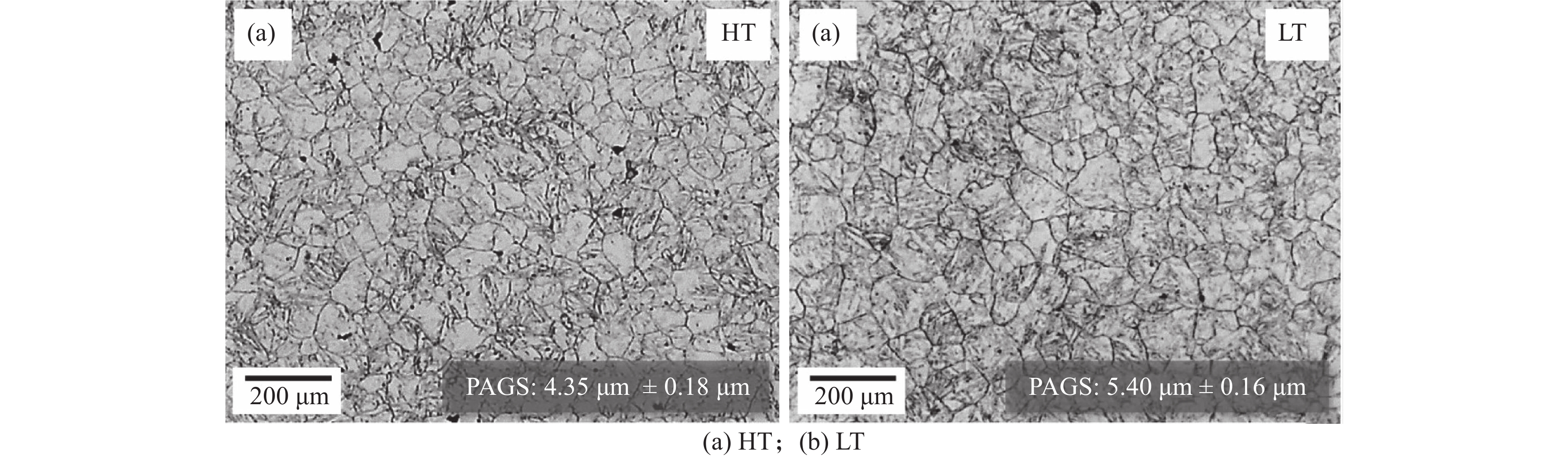 The hydrogen embrittlement resistance of two kinds of Nb-Mo hot forming steels with different Ti contents for automobile was studied by slow strain rate tensile test along with hydrogen charging and hydrogen desorption test in this paper. The results show that with increasing titanium content from 0.015% to 0.03%, the original austenite grain size of Nb-Mo hot forming steel decreases from 5.40 μm to 4.35 μm. Besides, the number of grain boundaries increased, and newly precipitated TiC particles are coarse, the size of (Nb, Ti) C, (Nb, Mo, Ti) C particles increases remarkably. The increase of Ti content leads to the precipitation of coarse Ti(C, N) in Nb-Mo hot forming steel, which promotes the occurrence of hydrogen embrittlement fracture. However, the activation energy of hydrogen desorption corresponding to the high temperature peak of hydrogen desorption is increased from 83.4 kJ/mol to 105.9 kJ/mol due to the coarse carbide particles. The energy of capturing irreversible hydrogen atom is increased, which can effectively reduce the amount of diffusible hydrogen atom in the steel. The increasing number of austenite grain boundaries can enable the hydrogen atom distribution more uniform, and finally improves the hydrogen embrittlement resistance of Nb-Mo hot forming steel.