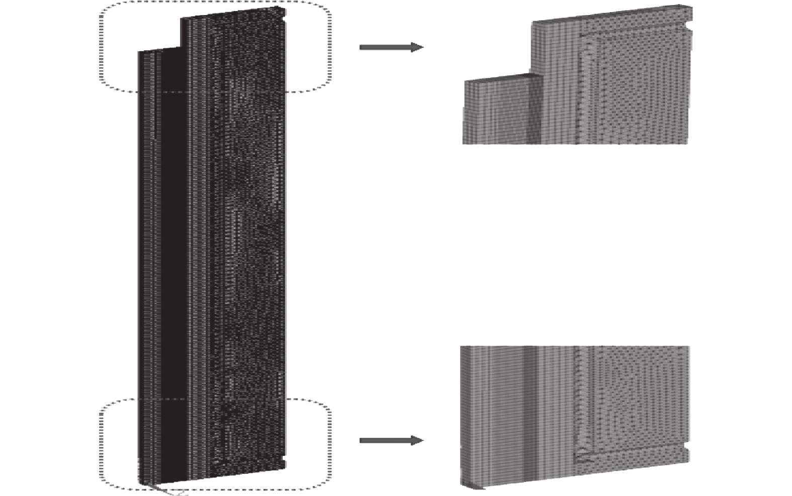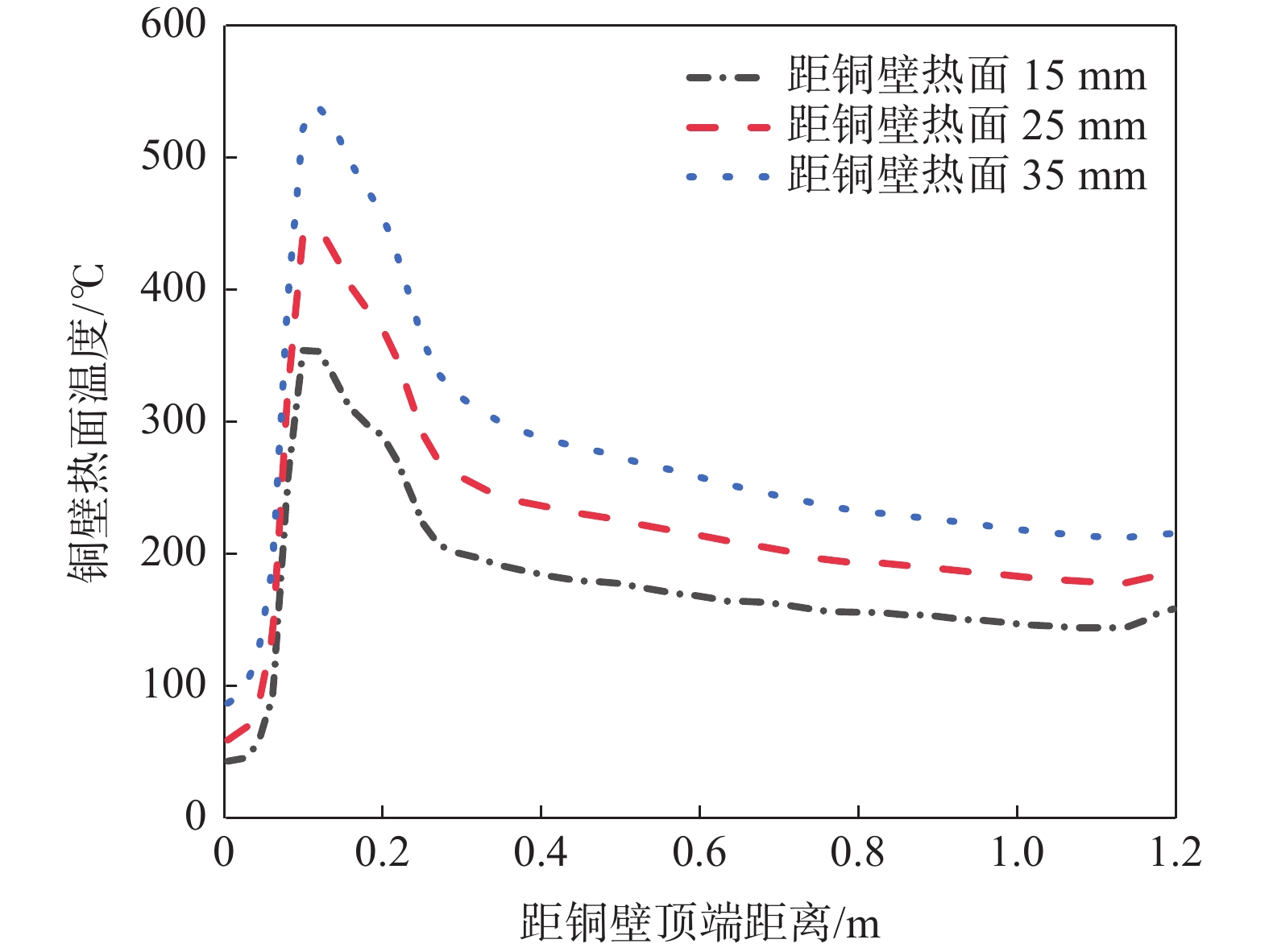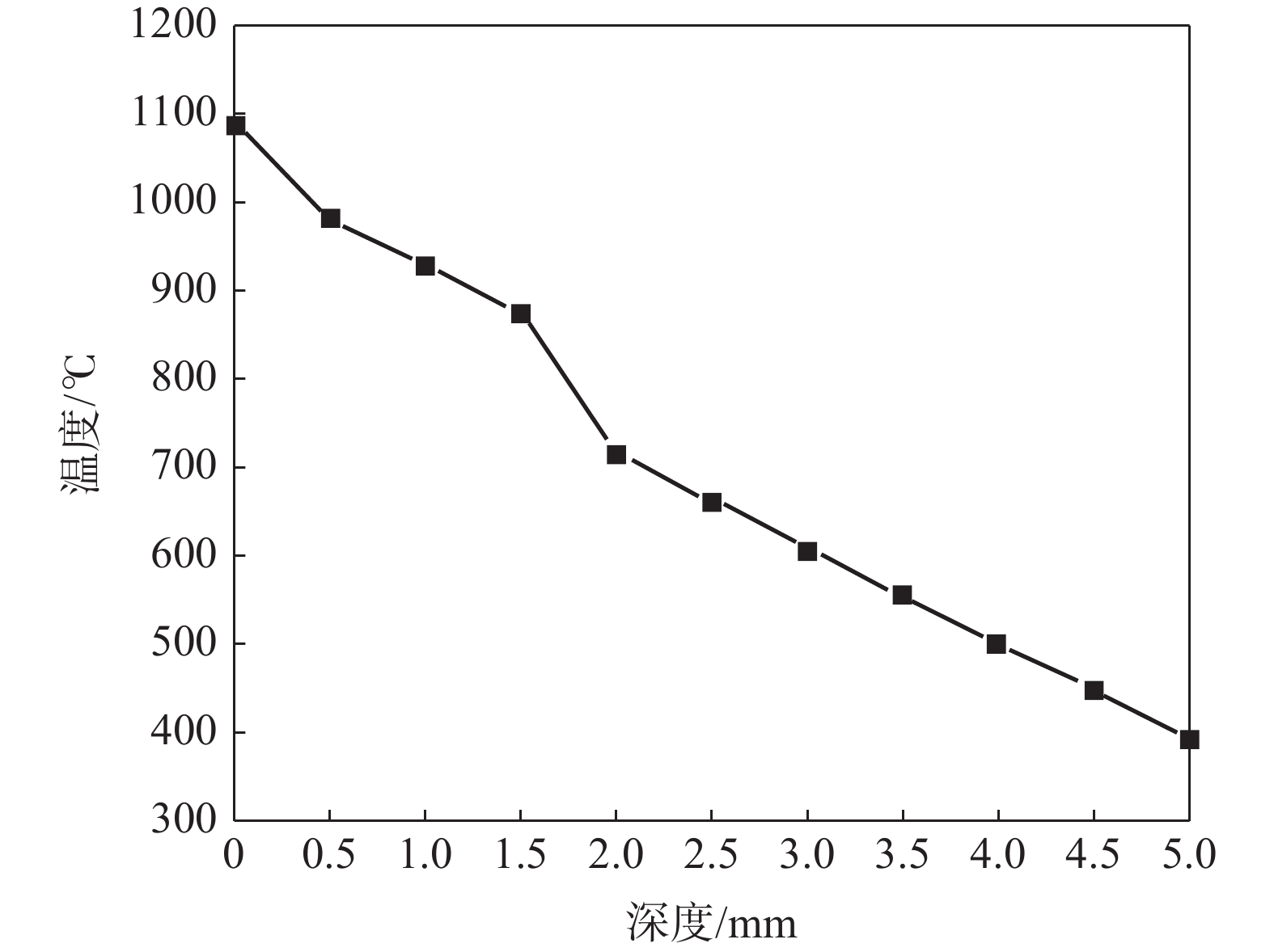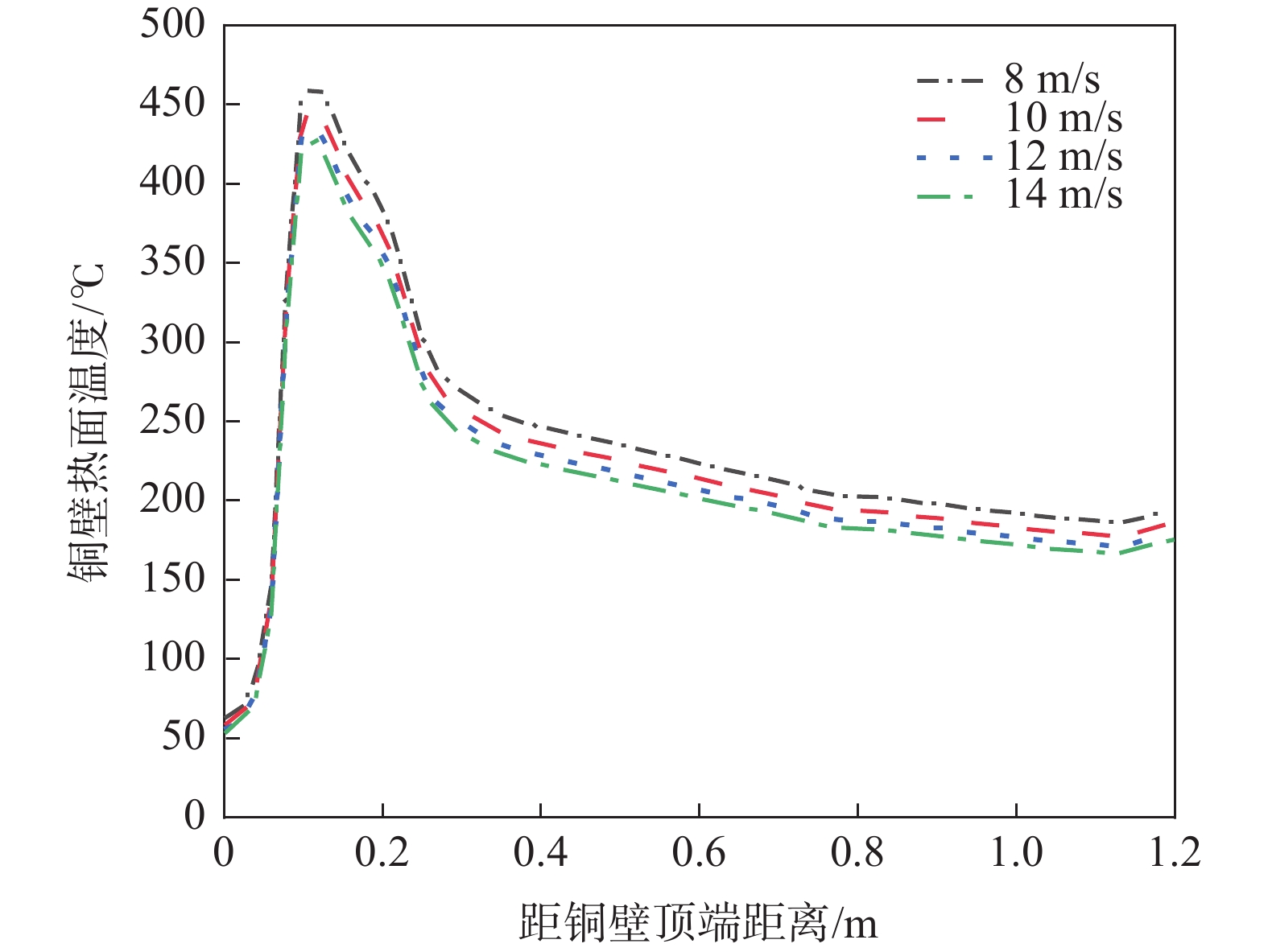 To reveal heat transfer mechanism of the slab-copper wall-cooling water system in the high-speed continuous casting mold, a three-dimensional fluid-solid-thermal coupling numerical model of slab-copper wall-cooling water in a FTSC mold was established. The influence of mold cooling process on temperature distribution of the mold copper wall and cooling water under the condition of high drawing speed had been analyzed. The results show that the peak temperature on hot surface of the copper wall with reverse water supply is 15 ℃ lower than that of the forward water supply, and the peak cooling water temperature is lowered by 14 ℃. Increasing cooling water speed can effectively reduce temperatures on copper wall and of the cooling water. Under the conditions of the cooling water does not boil , increasing the water supply pressure does not affect the mold temperature field and the cooling water inlet temperature has little effect on the temperature of the copper wall and the cooling water near the meniscus. In the low heat flow area at the lower part of the mold, the temperature change of the cooling water is more obviously affected by the inlet water temperature. The distance between the cooling water channel and the hot surface of the copper wall has a significant effect on the copper wall temperature. The cooling water temperature in the water channel at a distance of 15 mm and 25 mm from hot surface of copper wall remains same, while it significantly reduces at the distance of 35 mm away from the hot surface.