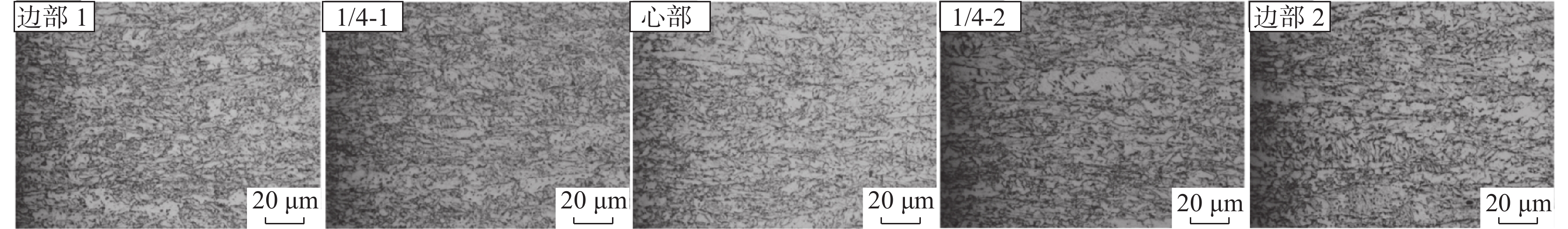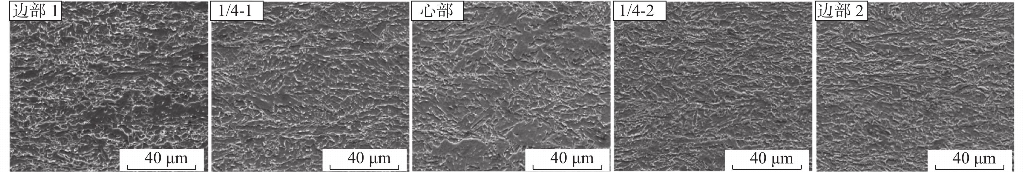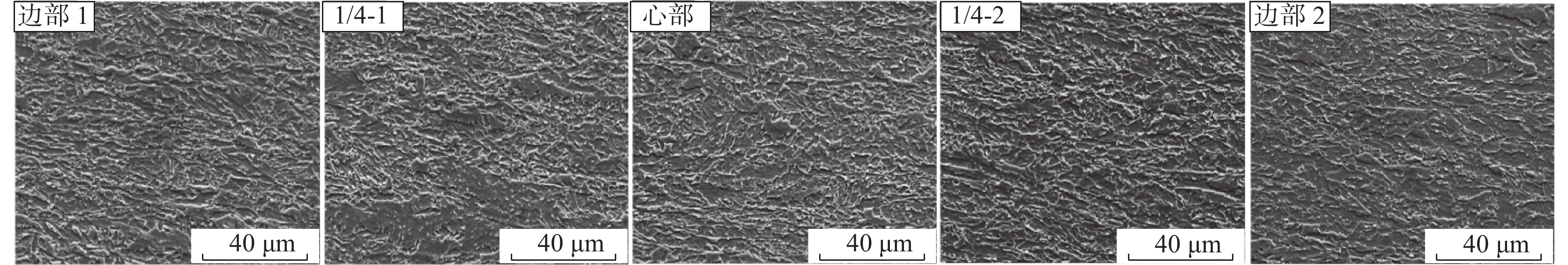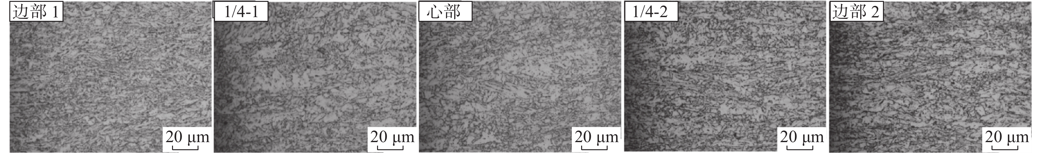 The effects of different final cooling temperatures on the microstructure and drop weight properties of 21.4 mm thick X80 linepipe steel strip were studied, and the effect of different microstructure on crack propagation path was discussed. When the final cooling temperature is 480 ℃, the microstructure of the resulted steel strip is composed of granular bainite + fine quasi-polygonal ferrite. When the final cooling temperature is increased to 510 ℃, large-size polygonal ferrite appears in the core of strip sample. As the final cooling temperature further increases, the volume fraction of large-size polygonal ferrite increases. When the final cooling temperature is increased from 480 ℃ to 550 ℃, the microrstructure across cross section transforms from fully acicular ferrite to acicular ferrite in the edge + large-size polygonal ferrite in the core. Since the large-size polygonal ferrite in the core cannot restrain crack propagation effectively, the drop weight shear area of tested steel decreases from 100% to 72% with cooling temperature increasing from 480 ℃ to 550 ℃.