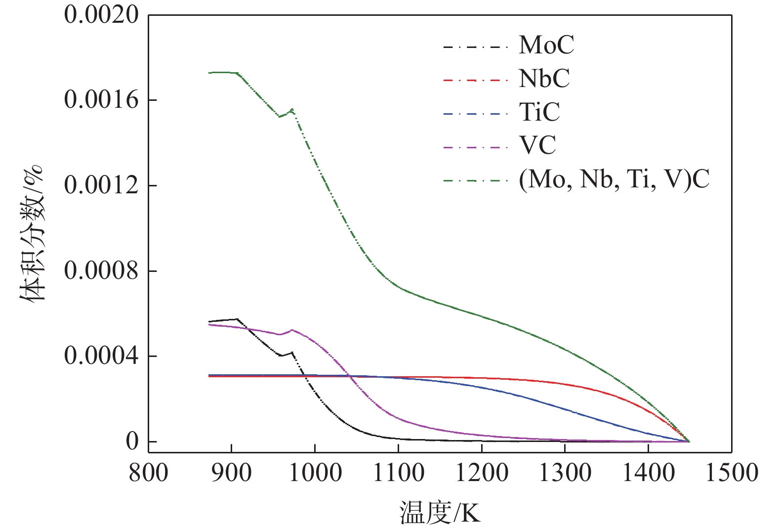 Precipitation kinetics of composite carbides of Nb-Ti-V-Mo microalloyed steel