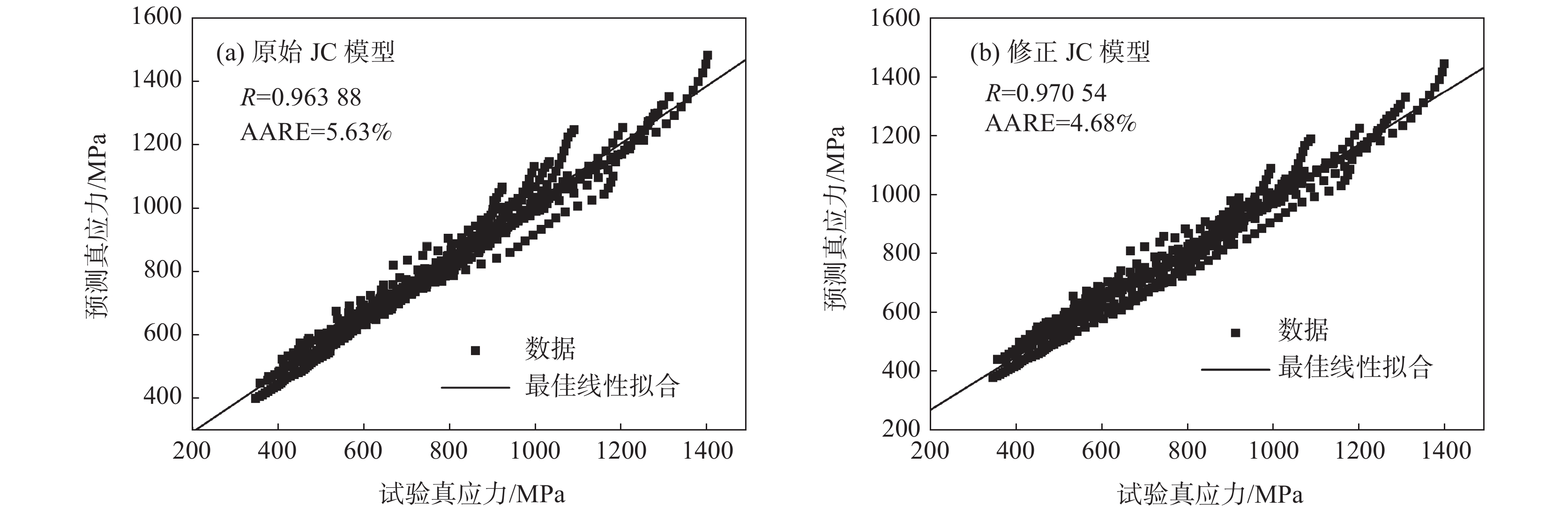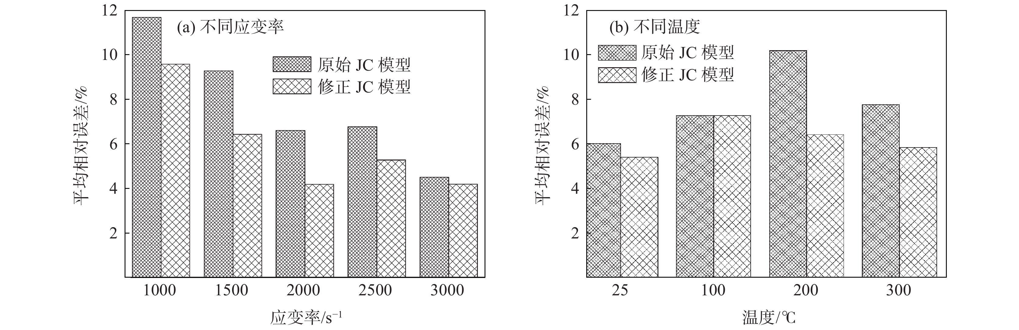 In order to explore the flow behavior of 06Cr19Ni10 austenitic stainless steel under large strain and high strain rate forming, impact tests had been carried out under different temperature and strain rate with the help of high temperature split hopkinson pressure bar dynamic experimental device. Impact test results show that the material has plasticization, strain rate strengthening and temperature softening phenomena, and the Johnson-Cook (JC) constitutive model has been established. Taking into account the strain rate strengthening effect the JC constitutive model was modified and both the model prediction values before and after the correction showed good agreement with experimental value. The correlation coefficients (R) before and after the model correction were 0.963 88 and 0.970 54, respectively, and the average relative error (AARE) before and after the correction were 5.63 %, 4.68 %, respectively. This indicated that the revised model achieved better prediction accuracy than origin model. The revised model could be used to predict the relationship among stress, strain, strain rate and temperature of 06Cr19Ni10 austenitic stainless steel more accurately.