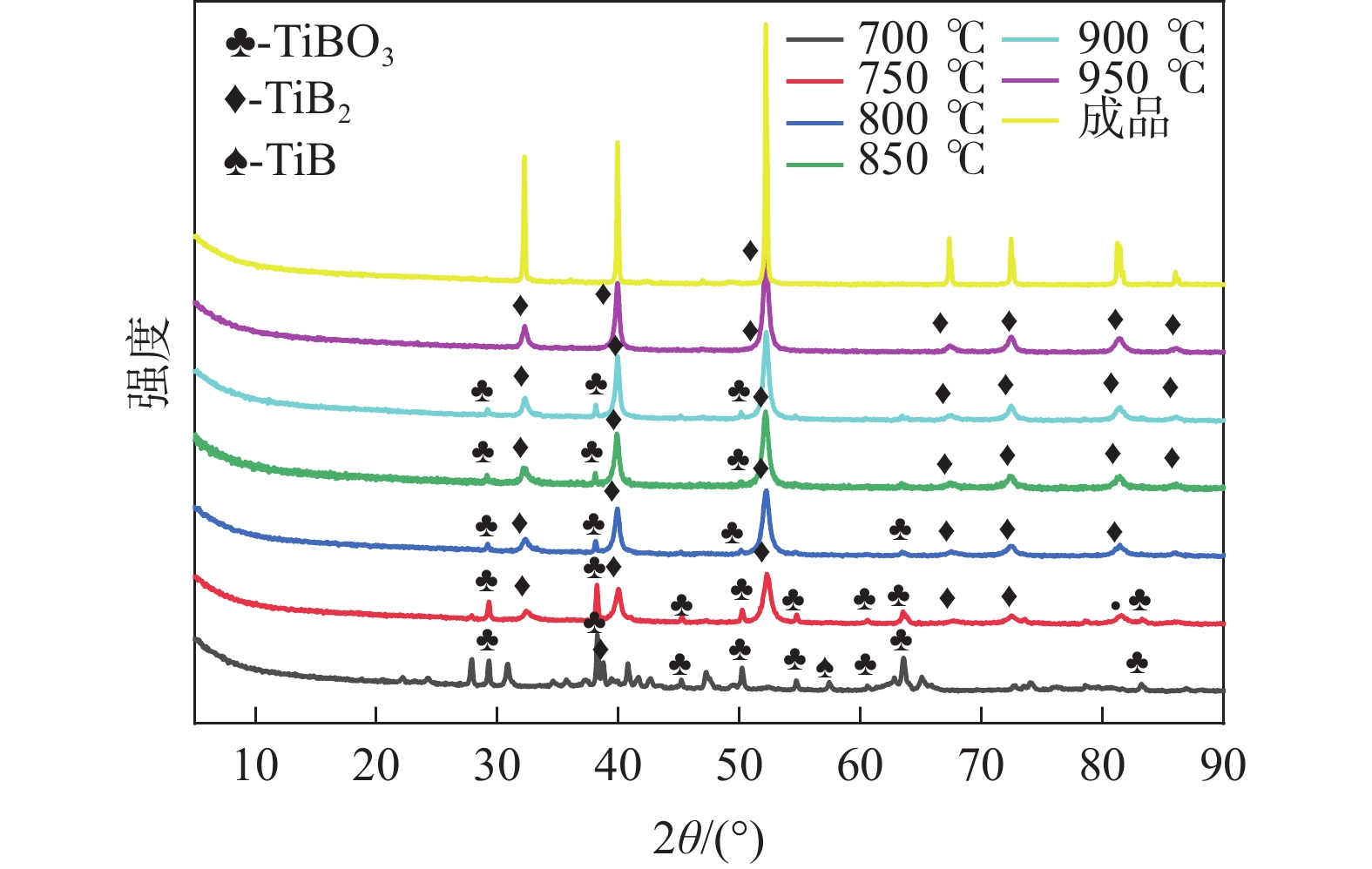 Based on research background and market competitive advantage of the enterprise production, a method of preparing high-quality ultrafine TiB2 powder with short process by melting method was proposed in this paper. This method is high yield, short production cycle and no environmental pollution, by which advanced ultrafine TiB2 powder with certain industrial extensibility was prepared using cheap titanium source, boron(B) source and nonhazardous reducing agent with short process and low cost. The effects of the selection of titanium and B sources, the proportion of molten salt, the synthesis temperature of high-quality powder, Ti/B molar ratio and holding time on the synthesis of TiB2 powder were studied. The phase composition and microstructure of the powder were characterized by XRD and SEM. The results show that when the molar ratio of NaCl/KCl mixed salt is 1∶1 and the molar ratio of TiO2/B is 3∶10, TiB2 begins to form when the reactant is kept at 700 ℃ for 2 h. With the increase of temperature, the purity of the target product in the product gradually improves. The pure target product can be obtained only when the holding temperature reaches 950 ℃ without other by-products. The morphology of powder is cubic, sharp edges and corners. The particle size is about 150 nm. If the holding time is changed, the pure target product can be obtained at 900 ℃ with 5 h of holding time.