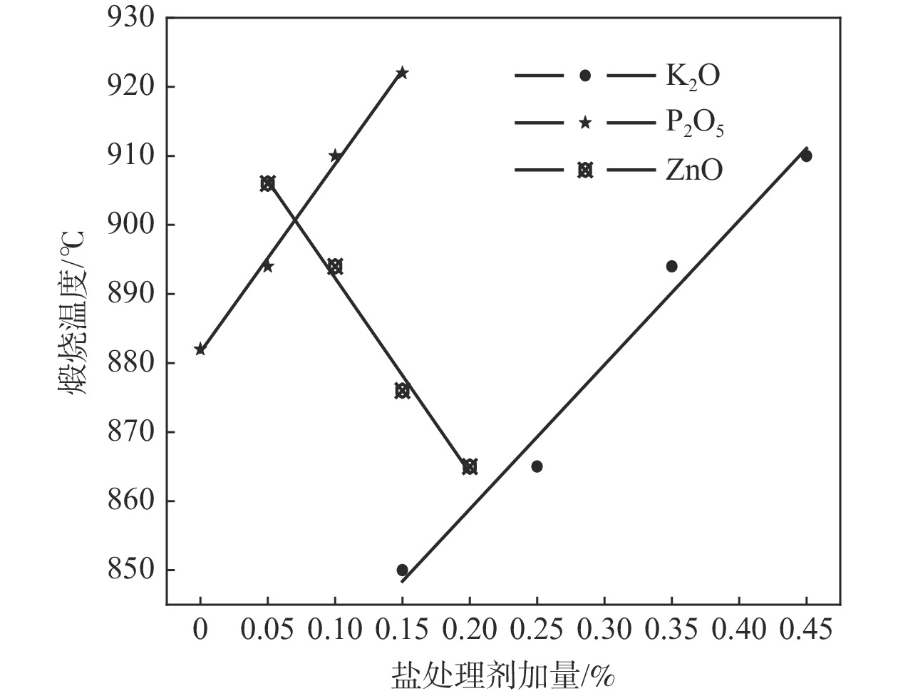 Using metatitanic acid as a raw material, adding different proportions of salt treatment agents to metatitanic acid, and adjusting the calcination temperature to prepare TiO2 with a rutile content of 98% to 99%. The influence of K2O, P2O5, ZnO addition on the calcination temperature and the properties of TiO2 pigments were investigated. Then the morphology and particle size distribution of the TiO2 were analyzed by SEM. The results show that the calcination temperature and the ZnO addition are linearly negatively correlated, while the K2O and P2O5 additions are linearly positively correlated. With the increase of the amount of ZnO, the calcination temperature required for rutile to be qualified is correspondingly reduced. With the increase of the amount of K2O and P2O5, the calcination temperature for rutile to be qualified increases accordingly. With the increase of K2O, both TCS and SCX showed a trend of first increase and then decrease; with the increase of P2O5, TCS showed a downward trend, and SCX showed an overall upward trend; with the increase of ZnO, TCS showed a trend of first increase and then decrease. When rutile is qualified, the average particle size of titanium dioxide shows an increasing trend with the increase of K2O content in the zinc-based salt treatment formula,, and the coefficient of variation first decreases and then increases. With the increase of P2O5 and ZnO content, the average particle size of the titanium dioxide shows a downward trend, and the coefficient of variation first decreases and then increases. The optimal dosage range for K2O is between 0.34% and 0.38%, P2O5 0.03% to 0.05% and ZnO 0.10% to 0.13%.