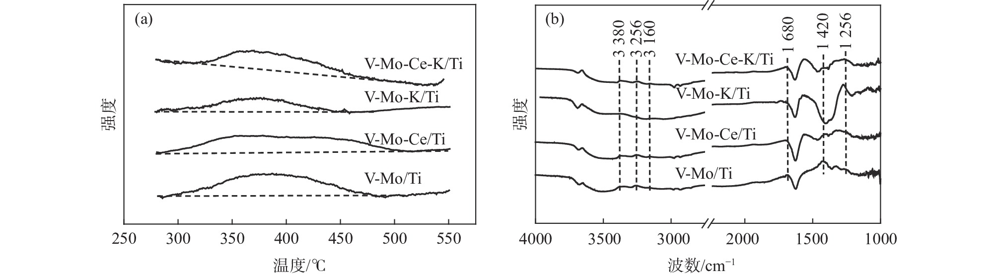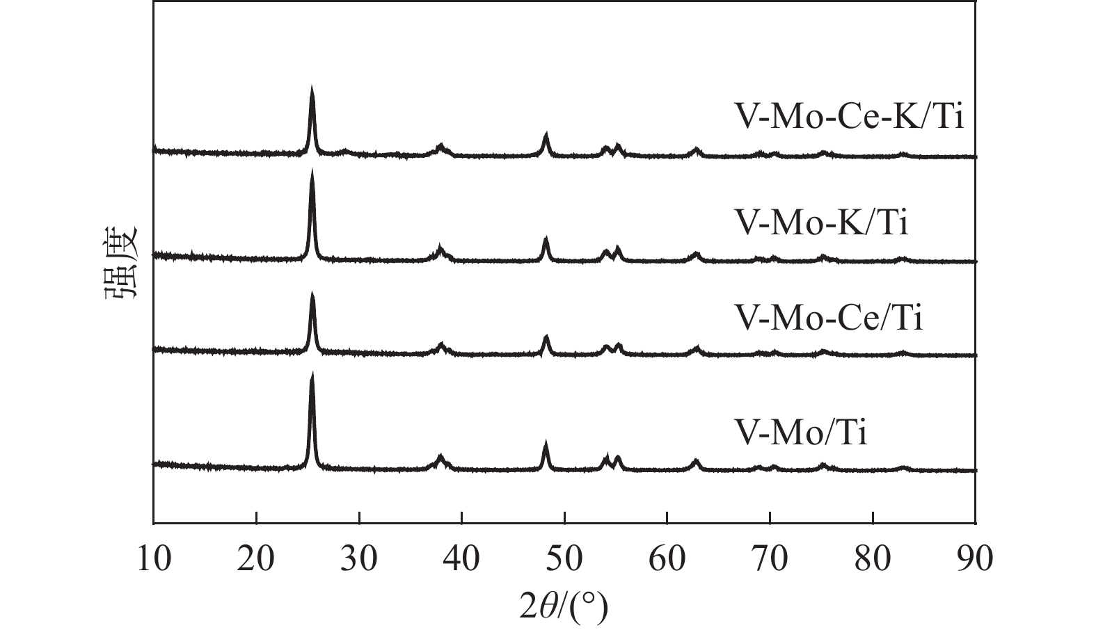 Industrial V-Mo/Ti catalyst for denitrification was modified by Ce in order to enhance its resistance to K. XRD, SEM, N2-adsorption/desorption, H2-TPR, XPS, NH3-TPD, and NH3-DRIFTS analyses were used to characterize the physiochemical properties of the different catalysts. Subsequently, the influence of Ce on the catalytic performance and K resistance of V-Mo/Ti catalyst was studied by a fix-bed micro-reactor. The results show that the presence of Ce can enhance the catalytic activity of V-Mo/Ti catalyst, and effectively reduce the negative impact of K on the BET surface area, reducibility, Oα/(Oα+Oβ) ratio, and acidity of V-Mo/Ti catalyst. The catalytic activity of V-Mo-Ce-K/Ti catalyst is higher than that of the V-Mo-K/Ti catalyst. In other words, Ce enhances the K resistance of V-Mo/Ti catalyst.