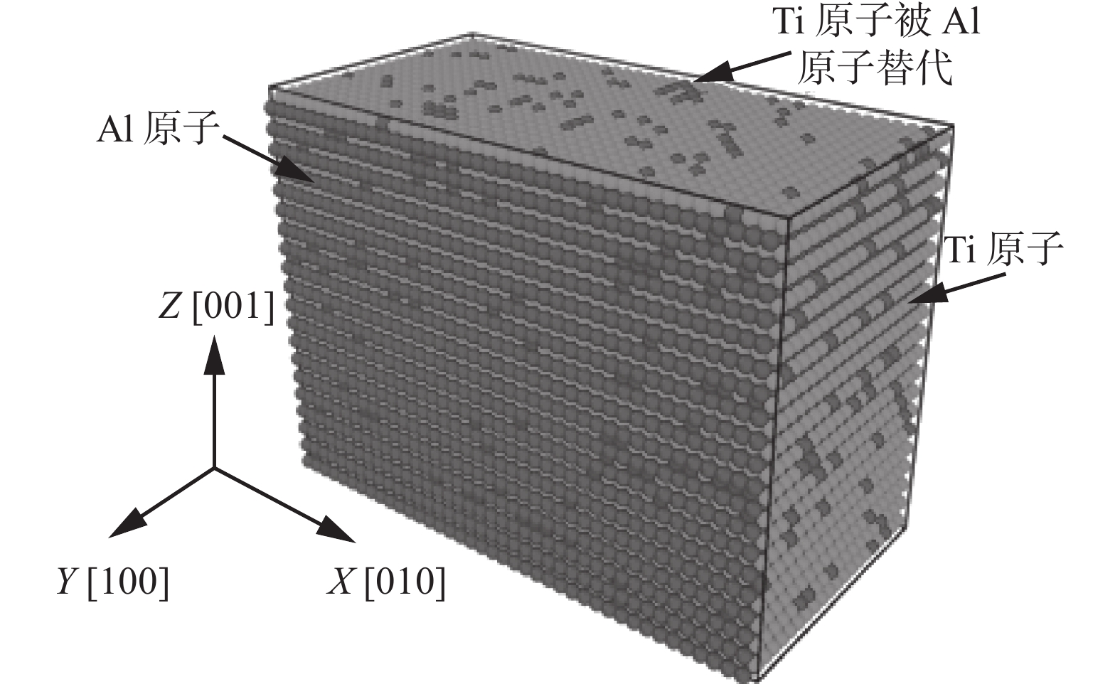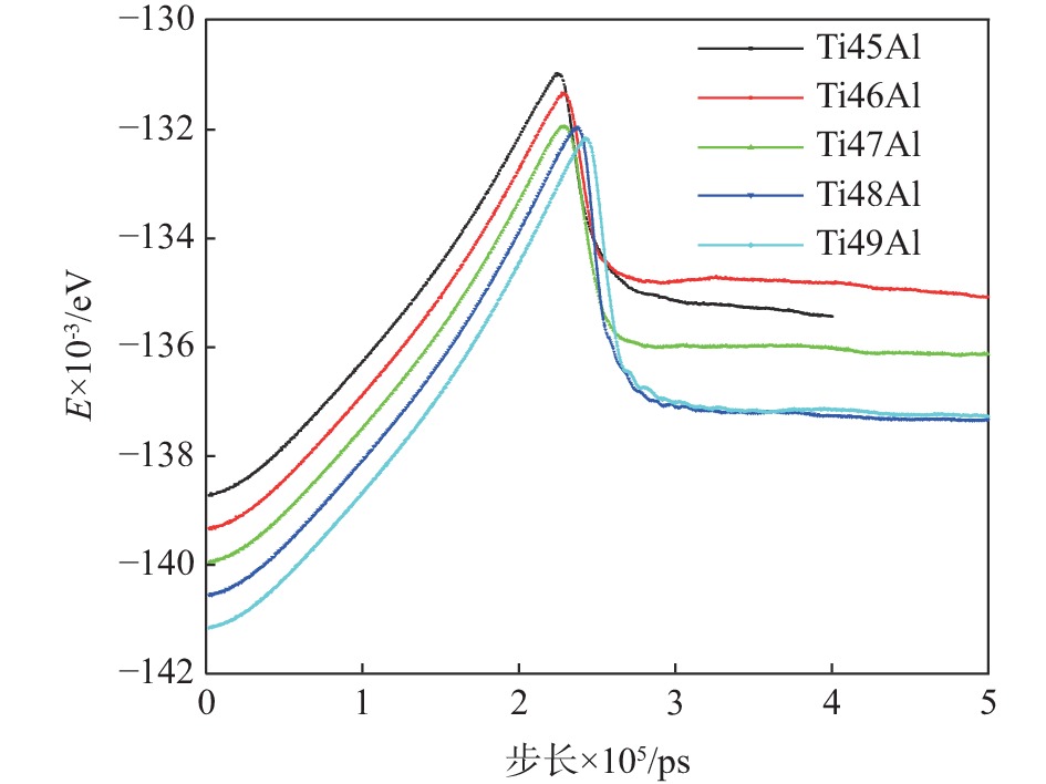 The crack growth mechanism and mechanical properties of single crystal γ-TiAl alloy with 45%~49% Al under uniaxial tension at 300 K had been investigated be means of molecular dynamics. The crack development of γ-TiAl alloy with 45% Al content during tensile process and the stress-strain curve and the total energy variation curve with time for γ-TiAl alloy with 45%~49% Al content were analyzed.The results show that Al content affects the properties of the γ-TiAl alloy, and the Lomer Cottrell dislocation produced during the tensile process of γ-TiAl alloy containing 45% Al content has a great influence on the mechanism of crack propagation. Stacking fault, dislocation and holegeneration,dislocation reaction and movement, and decreasing Al content can all contribute to the increasing yield strength of γ-TiAl alloy. The yield stress and elastic modulus of γ-TiAl alloy increase with the decrease of Al content in the range of 45%~49%.