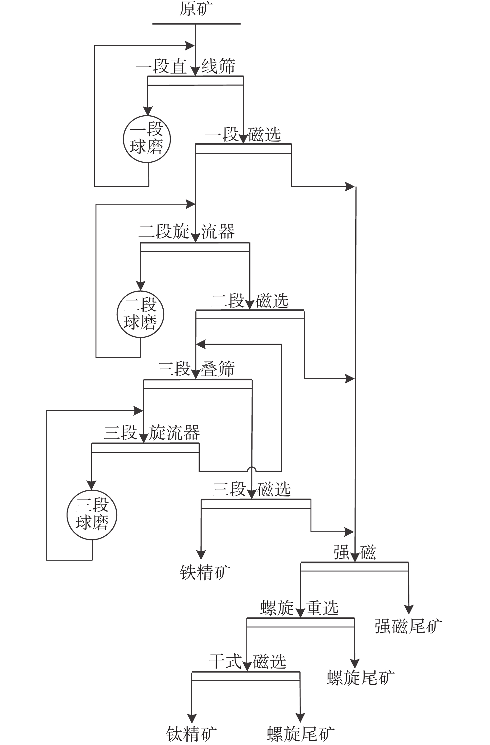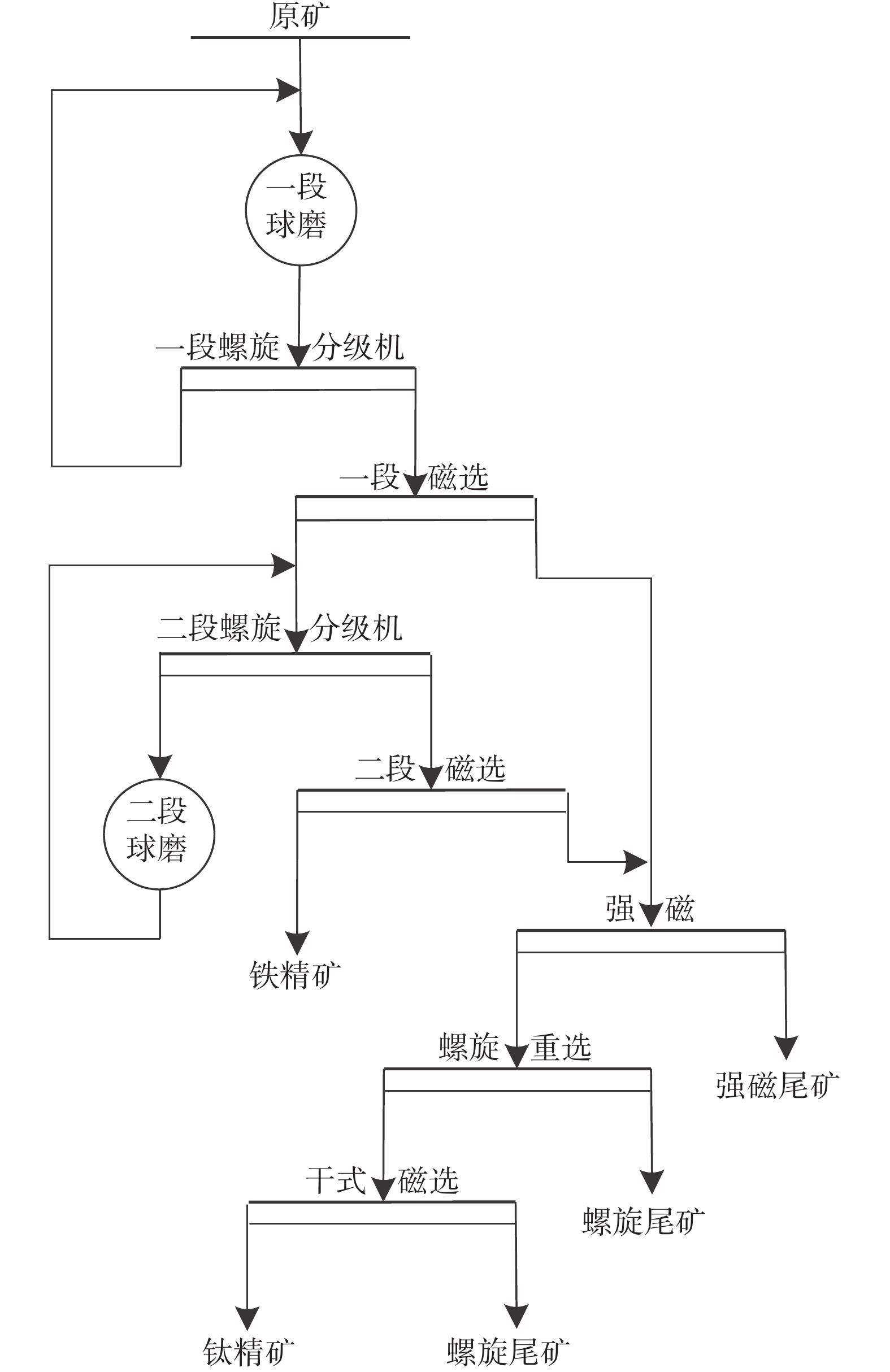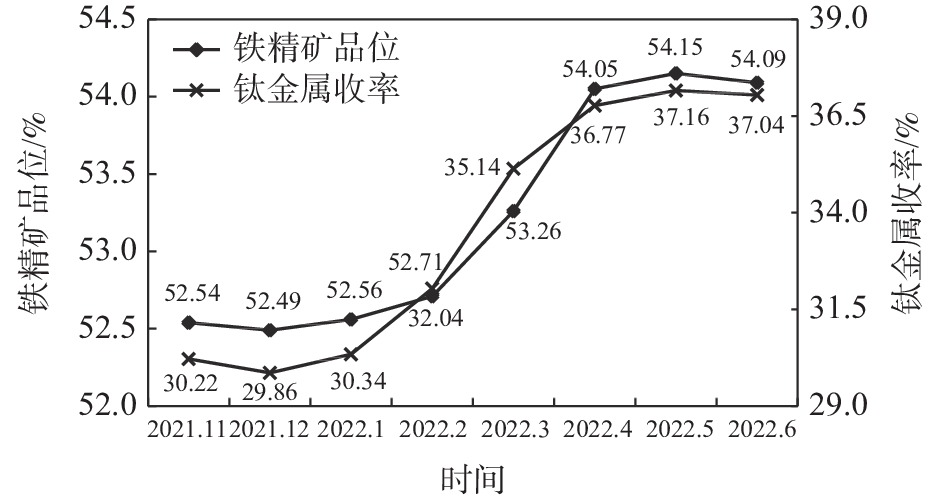 According to the production status of Panzhihua Fengyuan Mining Co., Ltd. using the low-grade vanadium titanomagnetite for beneficiation from Panzhihua mining area, this paper put forward an optimization scheme of grinding and classification process. Under the condition of improving the fineness of iron concentrate, the overgrinding of ilmenite was reduced, which was more suitable for the subsequent ilmenite gravity separation process, and the recovery rate of ilmenite was also improved. The production practice shows that by optimizing the grinding and classification process, "two-stage grinding" was changed to "three-stage grinding", the raw ore "grinding before classification" was changed to "classification before grinding" and the spiral classifier was eliminated. Finally, the fineness of iron concentrate (?0.074 mm) was increased by 12.34 percentage points, the grade of iron concentrate was increased by 1.57 percentage points, the yield of ?0.0385 mm particle size in magnetic separation tailings was reduced by 20.31 percentage points, the separation particle size of ilmenite was greatly improved, and the recovery rate of ilmenite was increased by 6.85 percentage points.