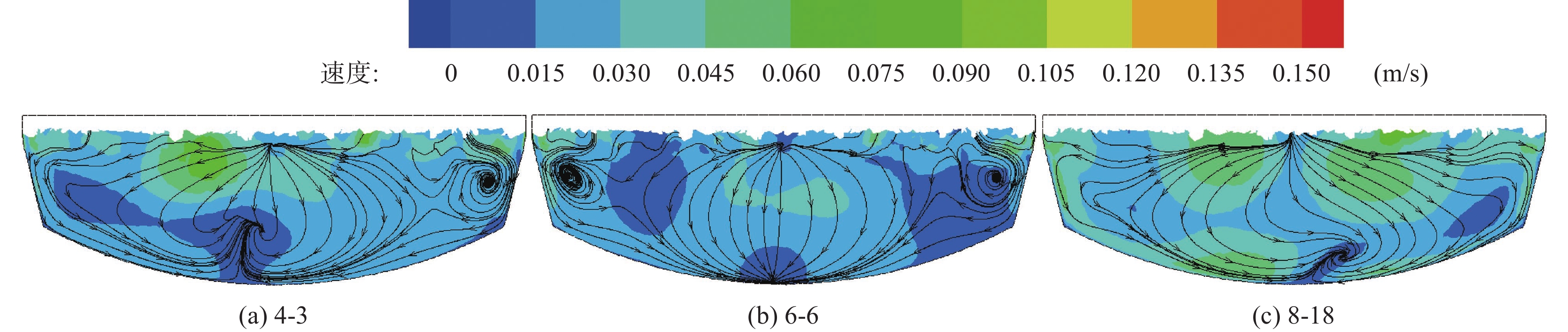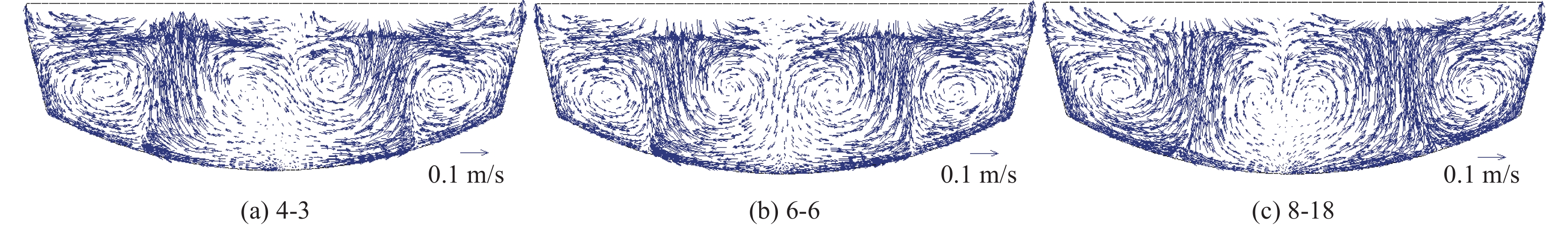 Physical experiment in a model with a geometric similarity ratio of 1:10 for a 120 t top-bottom combined blown converter based on the similarity theory was conducted in laboratory. The effect of bottom gas flowrate, number and arrangement of bottom tuyeres on the bath mixing was studied. A mathematical model of gas-liquid two-phase flow in the converter at single bottom blowing was established in the simulation. The effect of bottom tuyere configurations on velocity field in molten bath was studied. The results showed that the average mixing time with the optimized configurations of 4, 6 and 8 bottom tuyeres at bottom gas flow rate of 0.534 m3/h and 1.074 m3/h is 28.50, 28.25 s and 27.50 s in the case of single bottom blowing. In the case of combined blowing, the mixing time in the molten bath decreases with increase in bottom gas flow rates with the optimized configuration of 8 bottom tuyeres at top gas flow rate of 122 m3/h under different top lance heights. The velocity fields in the bath with the optimized configurations of 4, 6 and 8 bottom tuyeres were investigated in the mathematical simulation. It is found that less vortex centers of flow fields on horizontal sections and large asymmetry of vortex centers of flow fields on vertical sections can decrease “dead zone” volumes, which can improve the stirring ability of bottom gas and reduce mixing time in molten bath. The “dead zone” volumes in molten bath from the optimized configurations of 4, 6 and 8 bottom tuyeres studied here are 15.44%, 23.56% and 10.30%, respectively.
