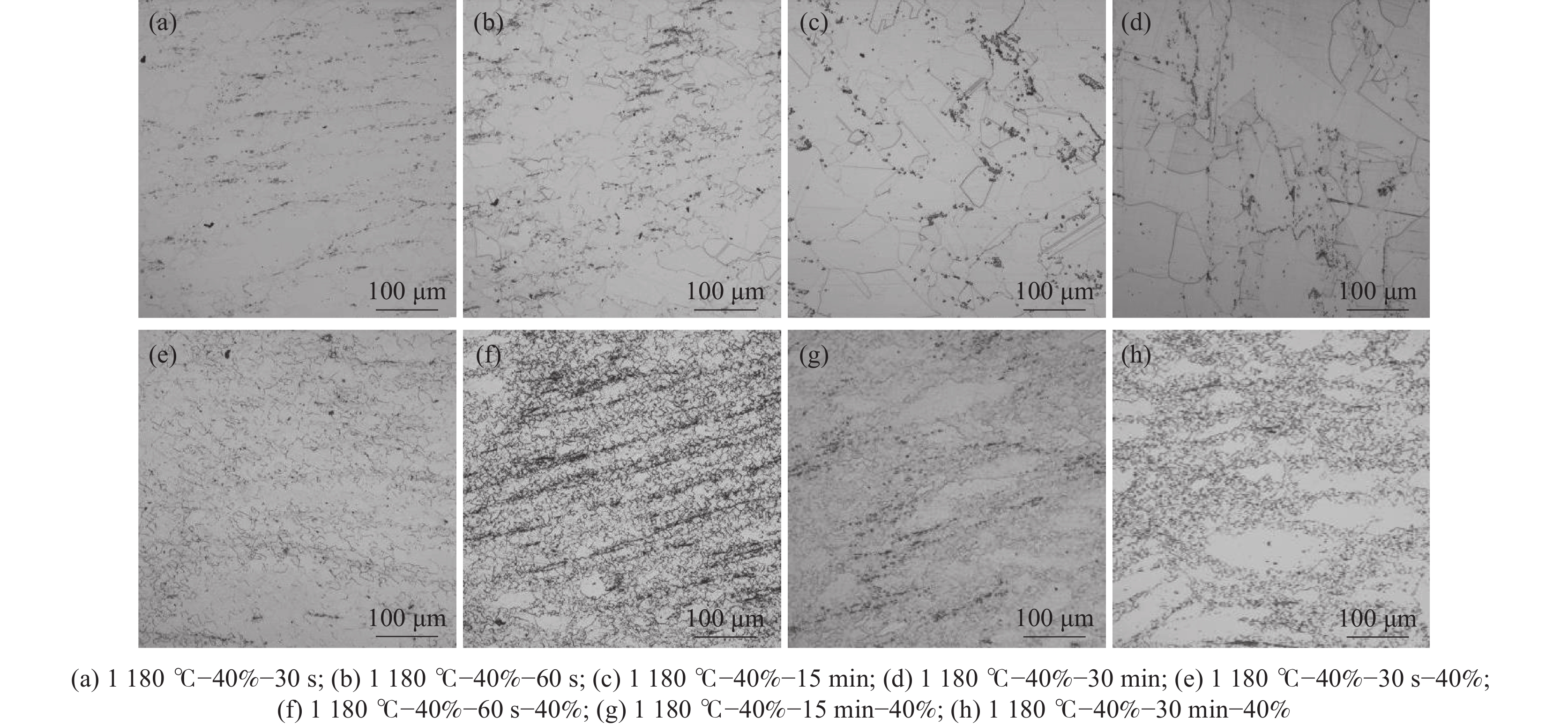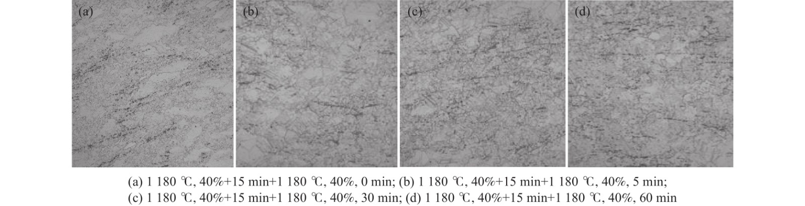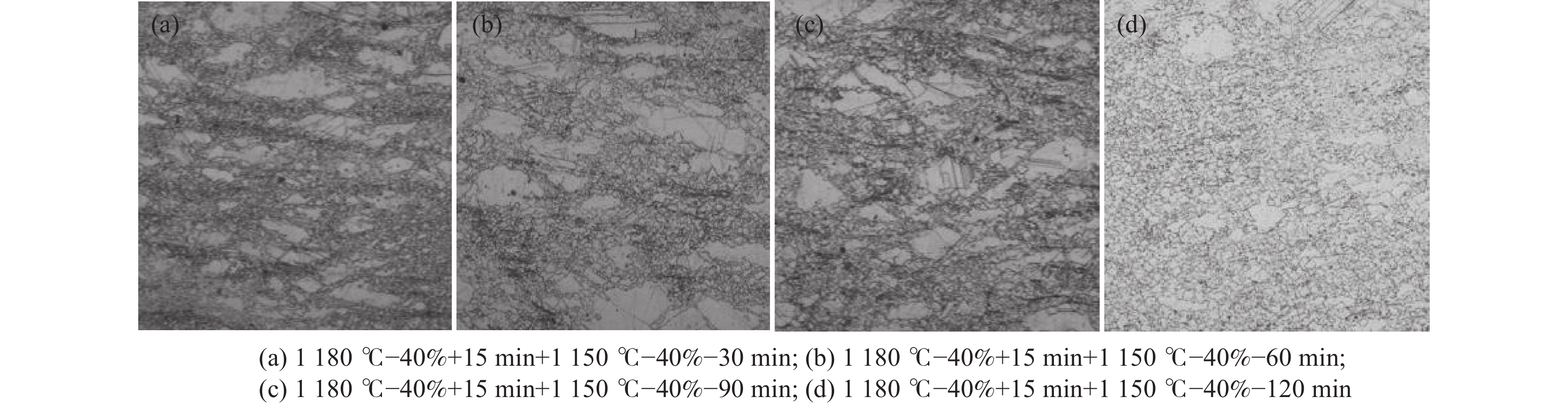 In this paper, the transformation law of microstructure evolution during multi-pass deformation and heat preservation was investigated by a Gleeble-3800 thermal simulation testing machine. A hot working diagram was established at deformation rate 0.01?10 s?1, deformation amount 50%, and deformation temperature 980?1230 ℃. The effects of holding time after single-pass deformation on the microstructure of double-pass deformation, holding time after double-pass deformation and holding temperature on the microstructure evolution, and deformation and holding time after double-pass cooling on the microstructure were discussed. The results show that the boundary conditions of the high power dissipation zone in the hot working diagram are 1050?1175 ℃, 0.01?0.1 s?1, and 1200?1225 ℃, 0.01?1 s?1, respectively. The boundary conditions of the low power dissipation zone are 975?1150 ℃, 0.01?10 s?1, and 1150?1225 ℃, 0.1?10 s?1, respectively. Too long holding time after the first deformation is not conducive to the second dynamic recrystallization. The recrystallization phenomenon occurred after the double-pass deformation, and the grain size did not grow obviously with the increasing holding time. In addition, with the second deformation temperature decrease, the proportion of recrystallization in the specimen decreases, and the lower the holding temperature, the less likely static recrystallization occurs.