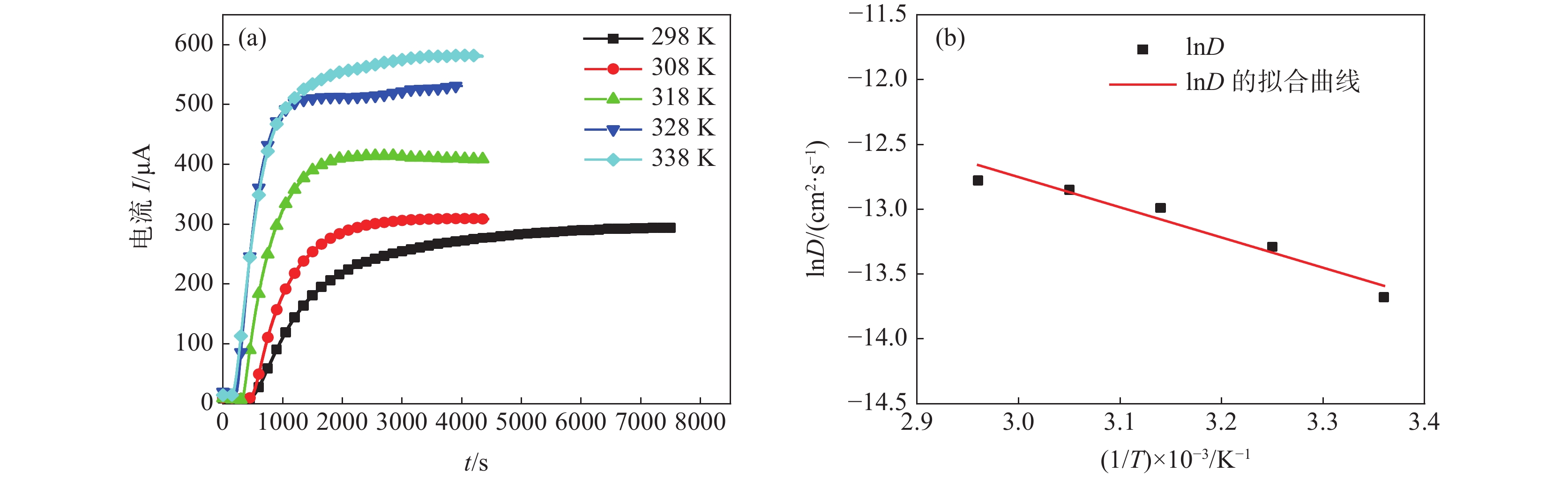 Hydrogen can cause hydrogen embrittlement of steel, resulting in a decrease in the material's mechanical properties. The harmful effect of hydrogen atoms on steel is caused by diffusion. Therefore, understanding the diffusion behavior of hydrogen atoms in steel is significant in preventing hydrogen bubbling and embrittlement. In this paper, electrochemical hydrogen permeation technology is used, a constant cathode current is applied, and the hydrogen permeation parameters of U78CrV steel are studied by changing the sample plating time and test temperature, respectively. The influence of different plating times and test temperatures on the hydrogen diffusion coefficient of U78CrV steel is analyzed. The research results show that too short and too long electroplating time will reduce the anodic polarization current and affect the ionization of hydrogen atoms to form hydrogen ions. When the electroplating time is 360 seconds, the nickel layer formed has the best effect. The increase in the test temperature will increase the hydrogen permeability and diffusion coefficient. The activation energy of hydrogen diffusion in U78CrV steel is 19371 J/mol.