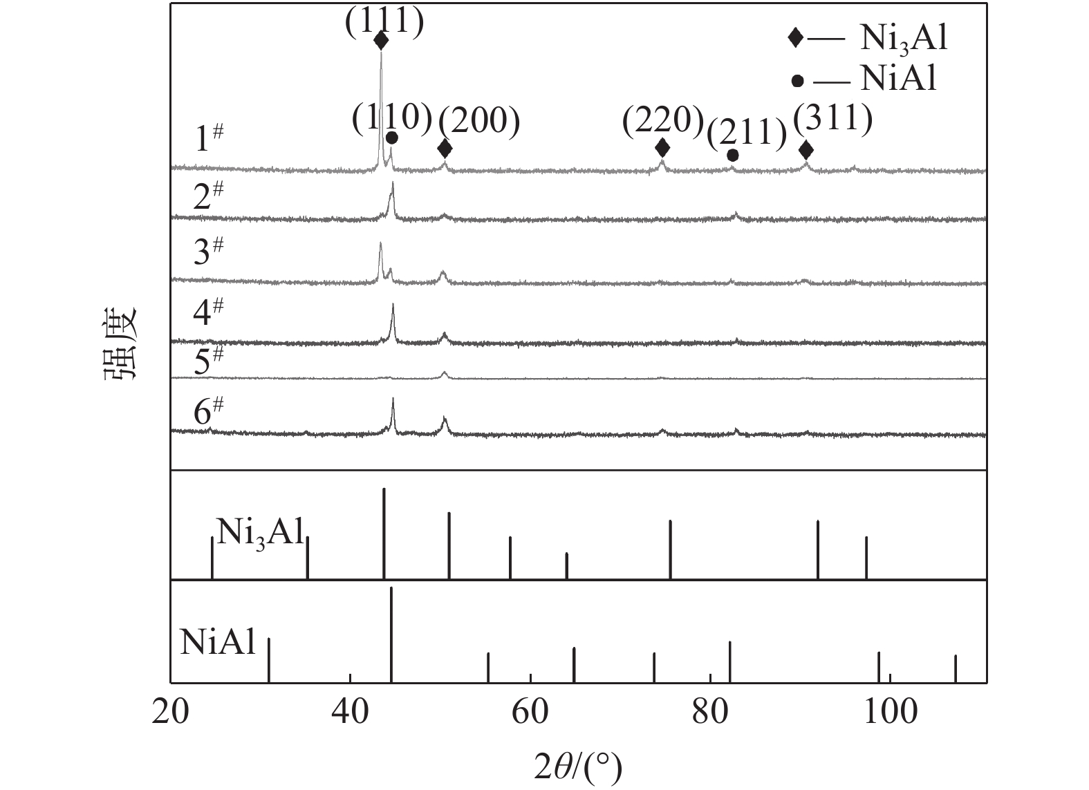 The room temperature brittleness of Ni3Al intermetallic compounds significantly limits its application. Accordingly, in this paper, the composition and structure of Ni3Al intermetallic compounds are analyzed, and the composition is designed by the 'cluster plus connected atom' model. Six alloys were designed by replacing some Ni on the cluster shell with Co and Fe and replacing some connecting atom Al with Ti. Simultaneously the microstructure and mechanical properties of these alloys were characterized. The results show that the microstructures of all six alloys are composed of the Ni3Al phase (γ′ phase), NiAl phase (BCC), and a small amount of eutectic precipitated third phase, and the formation of the Ni3Al phase is confirmed by TEM analysis. The alloy designed in this paper has improved room temperature strength, hardness, and plasticity compared to the Ni3Al intermetallic compound. The reason is that the formation of the Ni3Al phase as the matrix improves the strength and hardness. When a small amount of BCC phase precipitates in the Ni3Al matrix, it helps further to improve the strength and hardness of the alloy. In comparison, the high concentration of BCC decreased the strength and hardness and increased the plasticity.