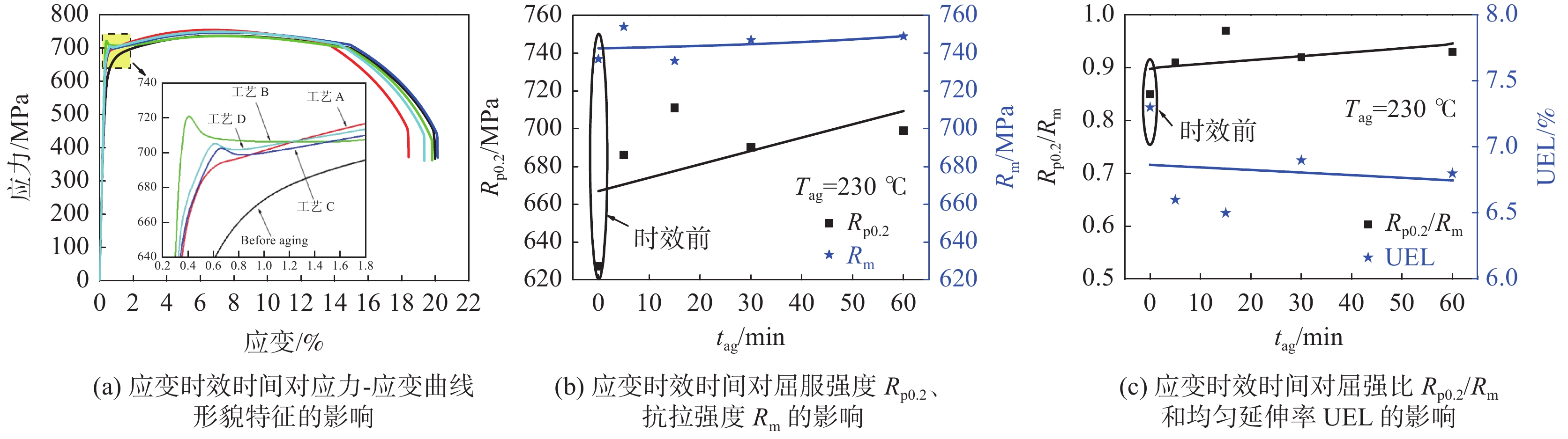 X90 pipeline steel pipe is a new type of high-strength and high-toughness pipe. With the increase in strength, the revealing and controlling of strain aging behavior of X90 pipeline steel has become the focus of research. The microstructure characteristics, fracture morphology, strain-aging sensitivity, tensile properties, impact toughness in low temperature, and strain aging sensitivity of X90 high-strength pipeline steel before and after strain aging treatment were investigated by OM, SEM, TEM, strain-aging sensitivity test, tensile test and Charpy impact experiments. The results indicate that the strain aging has no significant effect on the microstructure of X90 high-strength pipeline steel. The microstructure of X90 high-strength pipeline steel before and after aging is a complex structure of acicular/bulk ferrite, lath/granular bainite and M/A component. However, strain aging has a significant effect on the tensile properties, tensile curve morphology and low temperature impact toughness of X90 high-strength pipeline steel. When the aging temperature is 230 ℃ (the fusion temperature of polyethylene layer), the yield strength, tensile strength, yield ratio and strain-aging sensitivity coefficient of X90 steel gradually increase with the prolongation of aging time. At the same time, the uniform elongation and low temperature impact absorption energy of X90 steel gradually decrease with the prolongation of aging time. In addition, the X90 pipeline steel gradually loses continuous yielding and strengthening characteristics, and the tensile curve changes from the round-house-type before aging to the Lüders-type yield curve after aging with obvious peaks and yield platform. 15min is the inflection point of aging time for the transformation of the stress-strain curve of X90 steel. In order to reduce the adverse effect of strain aging on X90 high-strength pipeline steel, comprehensive regulation should be carried out from three aspects: reducing strain, reducing anti-corrosion preheating temperature and shortening high temperature residence time of anti-corrosion preheating. It is recommended to innovate and revise the pipe production and preparation process, such as shortening the high temperature preheating residence time or reducing the preheating temperature, and adopting the flexible leveling method to replace the rigid roll leveling method, and the multi-step incremental forming to replace the one-step spiral forming method. It is recommended to innovate the production and preparation process of pipes. For example, in the pipe forming process, the flexible leveling method could be used to replace the rigid roll leveling method, and the multi-step progressive molding method could be used to replace the one-step spiral molding method to effectively control the prestrain. Another example, in the pipe anticorrosion process, the residence time of high temperature preheating should be shortened or the preheating temperature should be reduced (when the preheating temperature ≥ 230 ℃, the high temperature residence time should be ≤ 5 min; if the preheating temperature < 230 ℃, the high temperature residence time should be < 15 min).