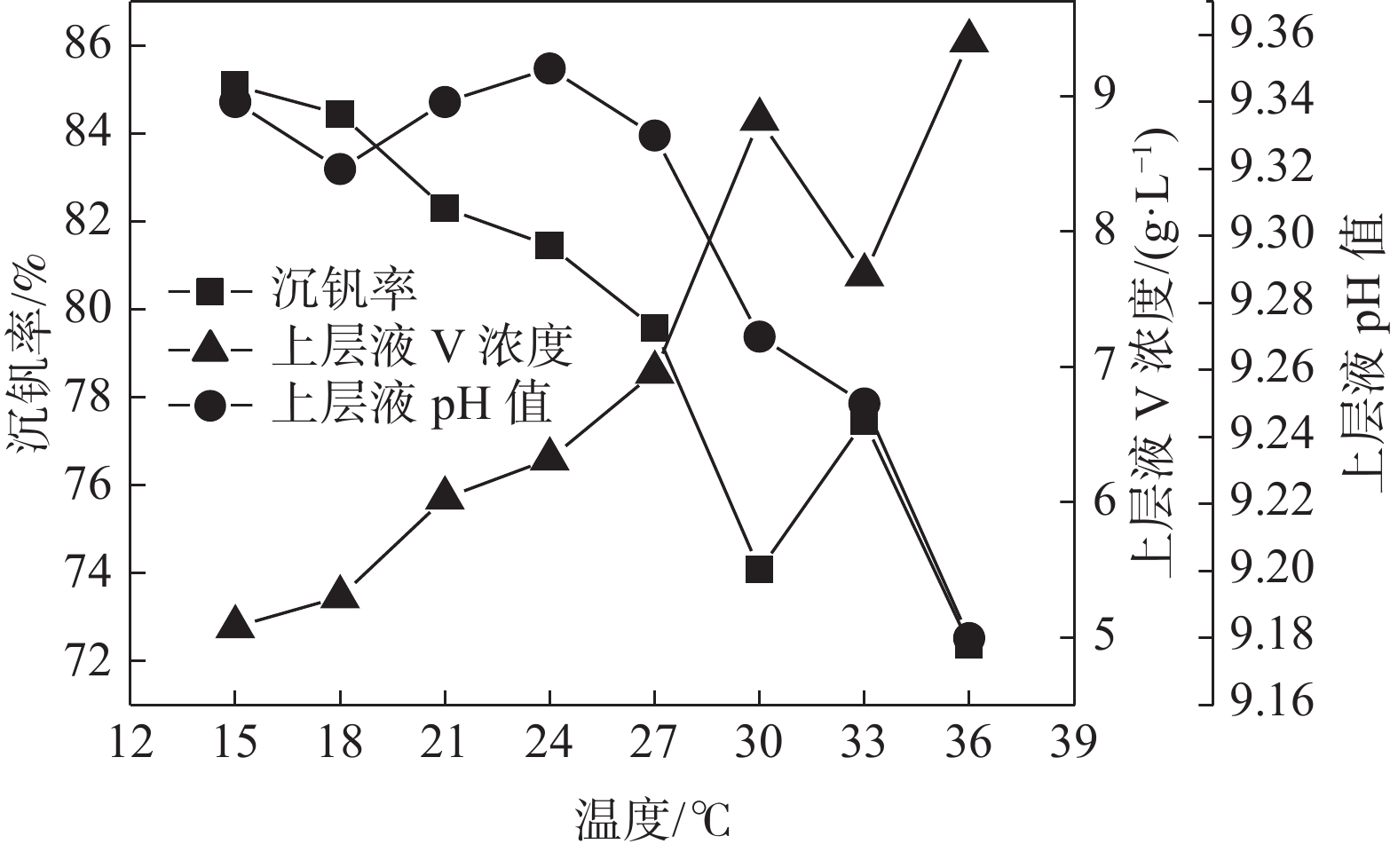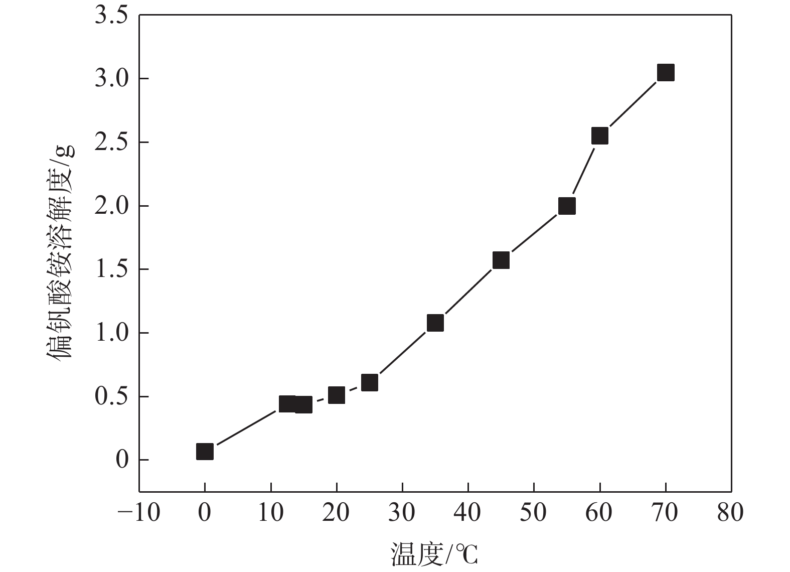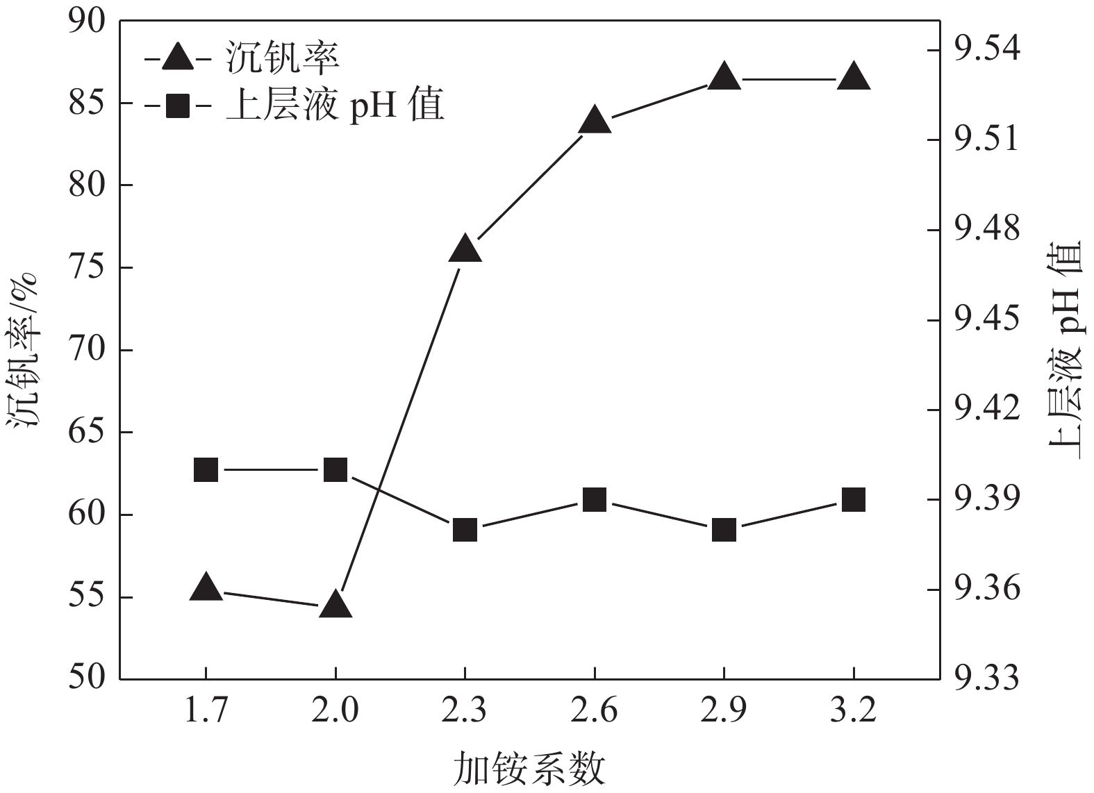 For the NaVO3-H2O solution system obtained by extracting vanadium from vanadium slag by sodium method, the effects of precipitation pH value, precipitation temperature, crystallization time, ammonium addition coefficient on the crystallization of ammonium metavanadate were investigated using ammonium bicarbonate and ammonium carbonate as ammonium salt. The results show that the crystallization rate of ammonium metavanadate can be improved by increasing the pH value of the solution (9.1–9.5) in a certain range. Under the conditions of temperature 15–27 ℃, crystallization time >3 h and ammonium addition coefficient no less than 2.9, the crystallization rate of ammonium metavanadate is higher than 85%, and the purity of vanadium pentoxide obtained by calcination ammonium metavanadate is higher than 99.3%, meeting the requirements of YB/T 5304—2017 quality standard.