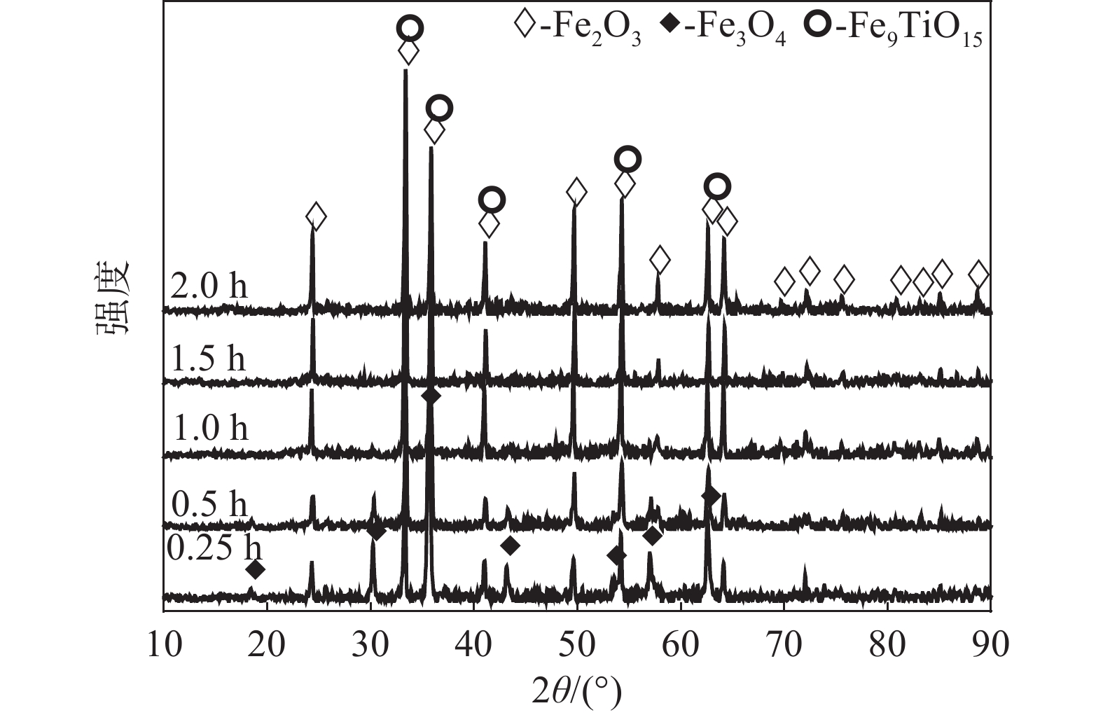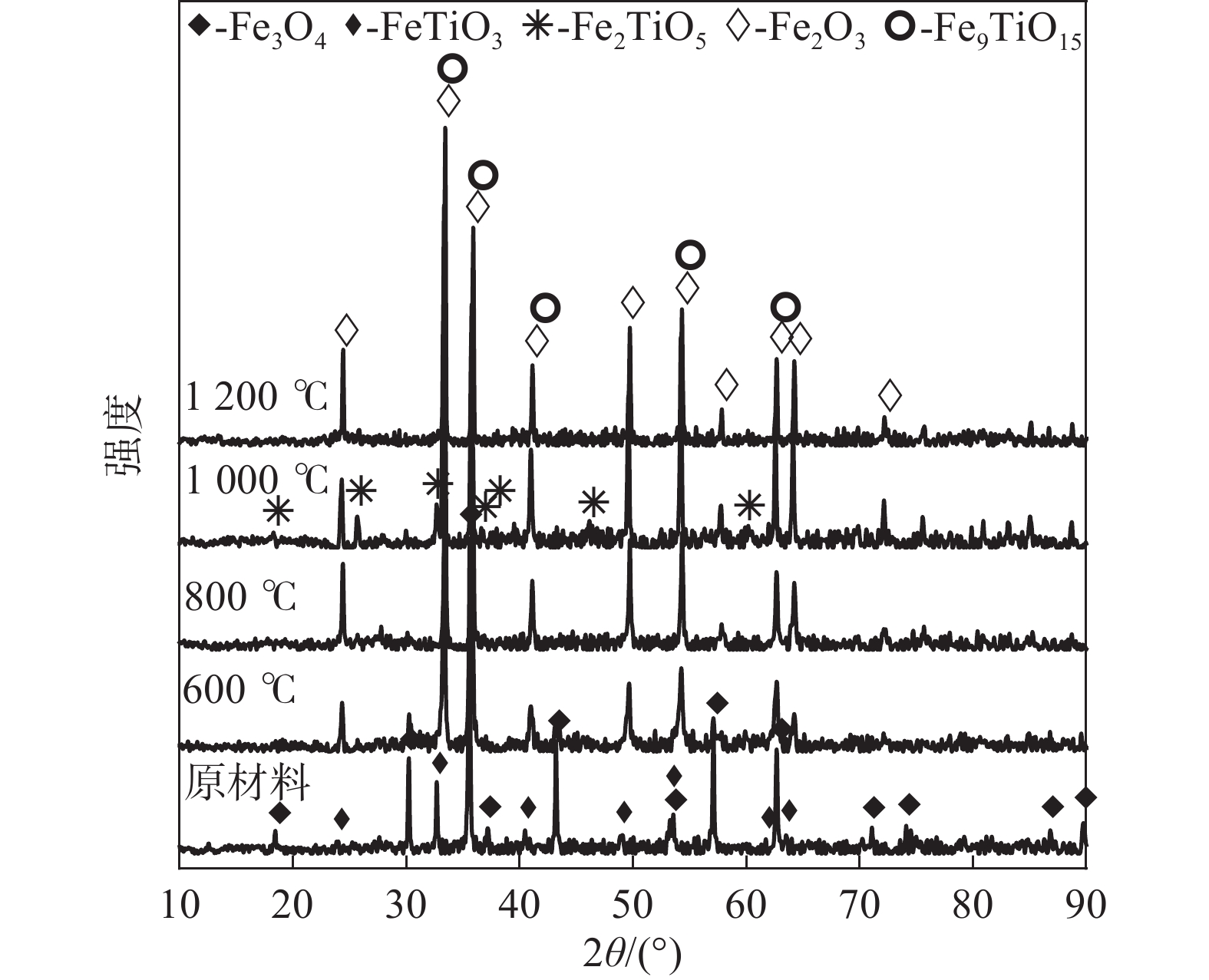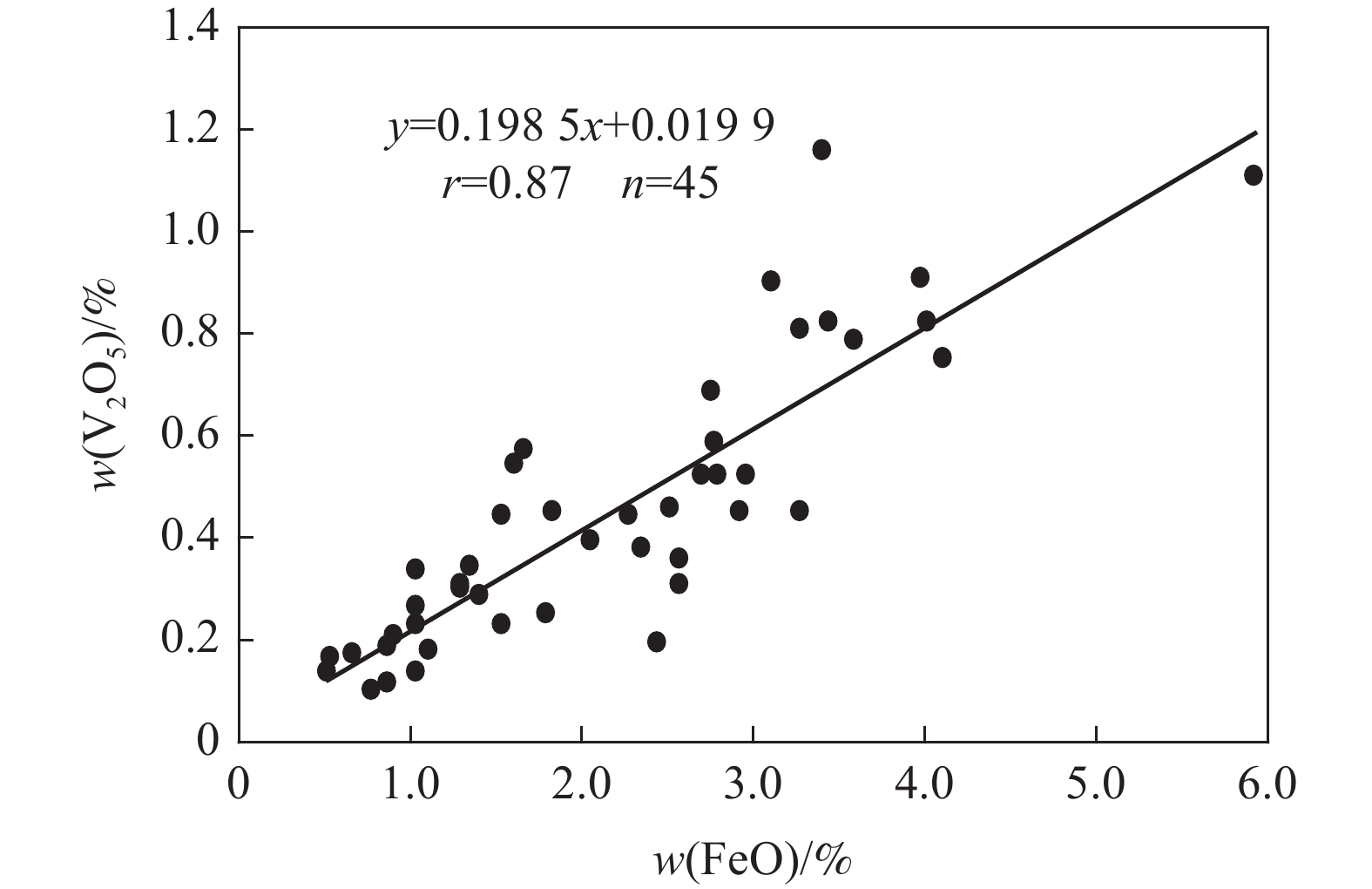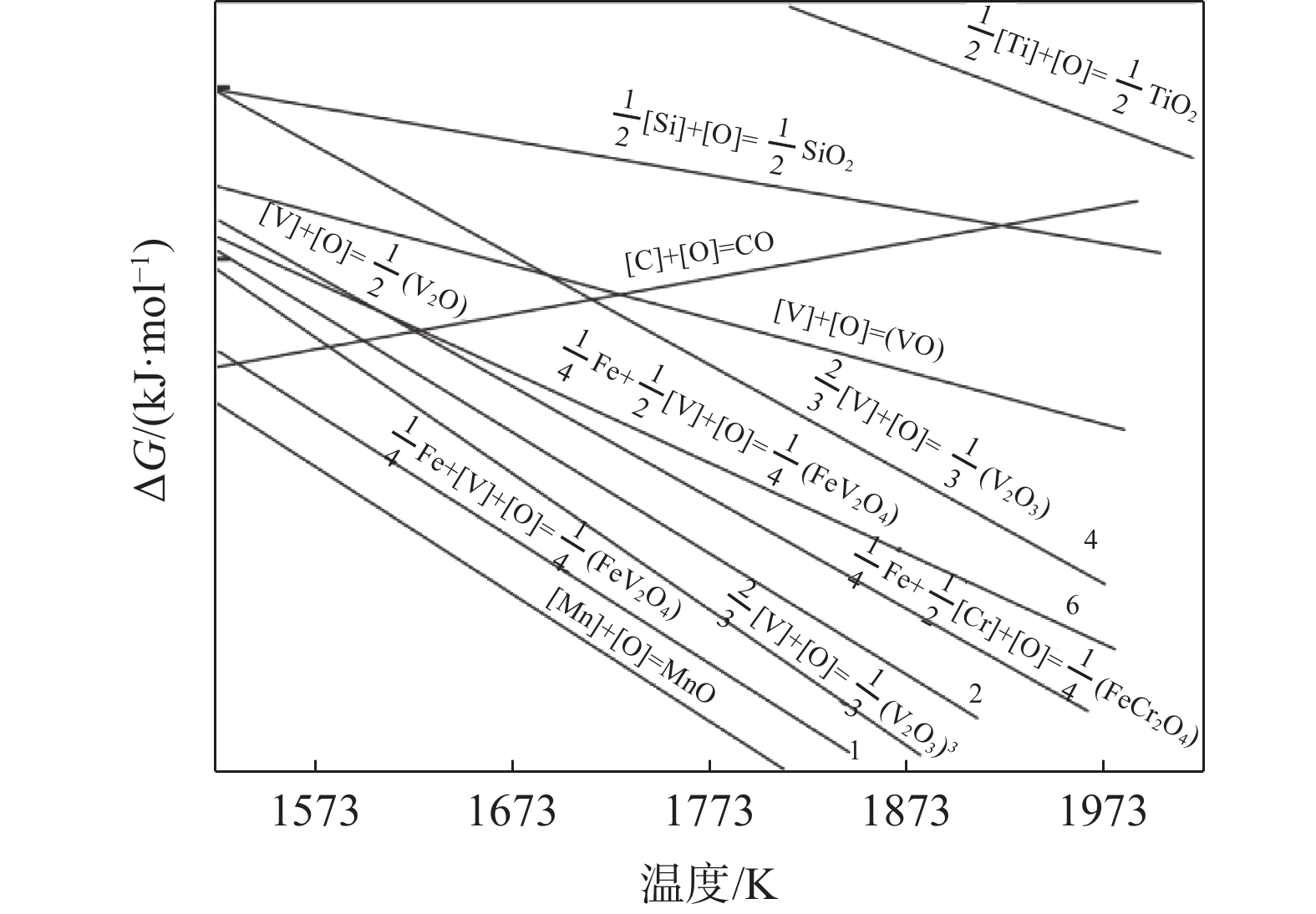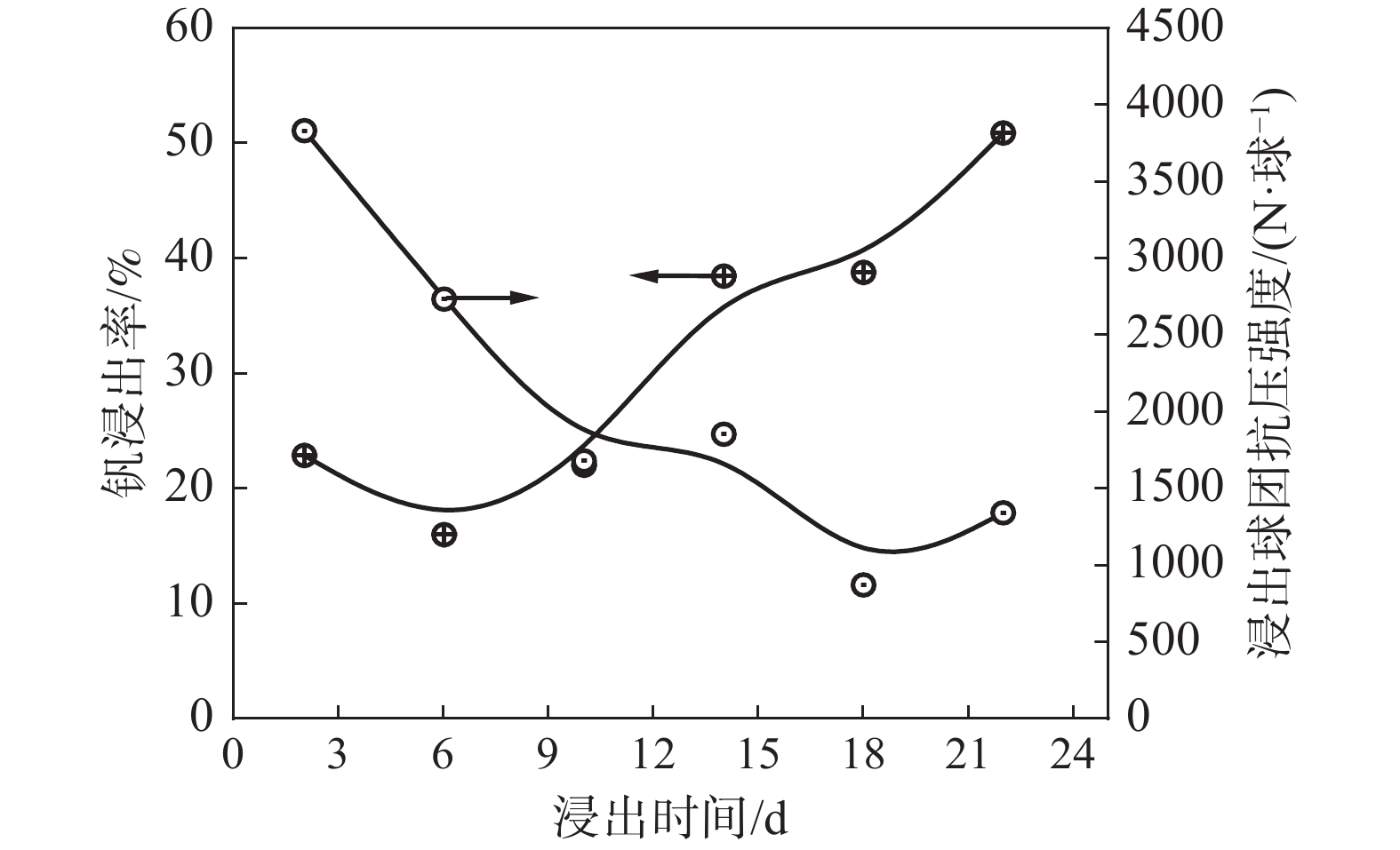 The relationship between crushing strength of pellets and leaching behaviors of vanadium in oxidation roasting-HCl leaching process from high-chromium vanadium-bearing titanomagnetite concentrates were investigated in this work. The results of the thermodynamic analysis of oxidizing roasting process show that the order of reaction of main compounds is: FeTiO3>Fe3O4>Fe2SiO4>FeV2O4>FeCr2O4. The phase analysis results of oxidation roasting process show that the oxidation reaction of the ilmenite is easier to magnetite, and the main phases of oxidation pellets are Fe2O3 and Fe9TiO15. Experimental results indicate that the oxidation temperature and HCl concentration are the key factors affecting the leaching efficiency of vanadium and the crushing strength of leached pellets in the oxidation process and leaching process respectively. There is an obvious negative correlation between the leaching efficiency of vanadium and the crushing strength of leached pellets. The crushing strength of leached pellets can be effectively increased by return roasting process. The crushing strength of pellets after return roasting is greater than 3 000 N/pellet under the condition of roasting temperature of 1 200 ℃ for 90 min, which can be used as raw materials for blast furnace ironmaking.