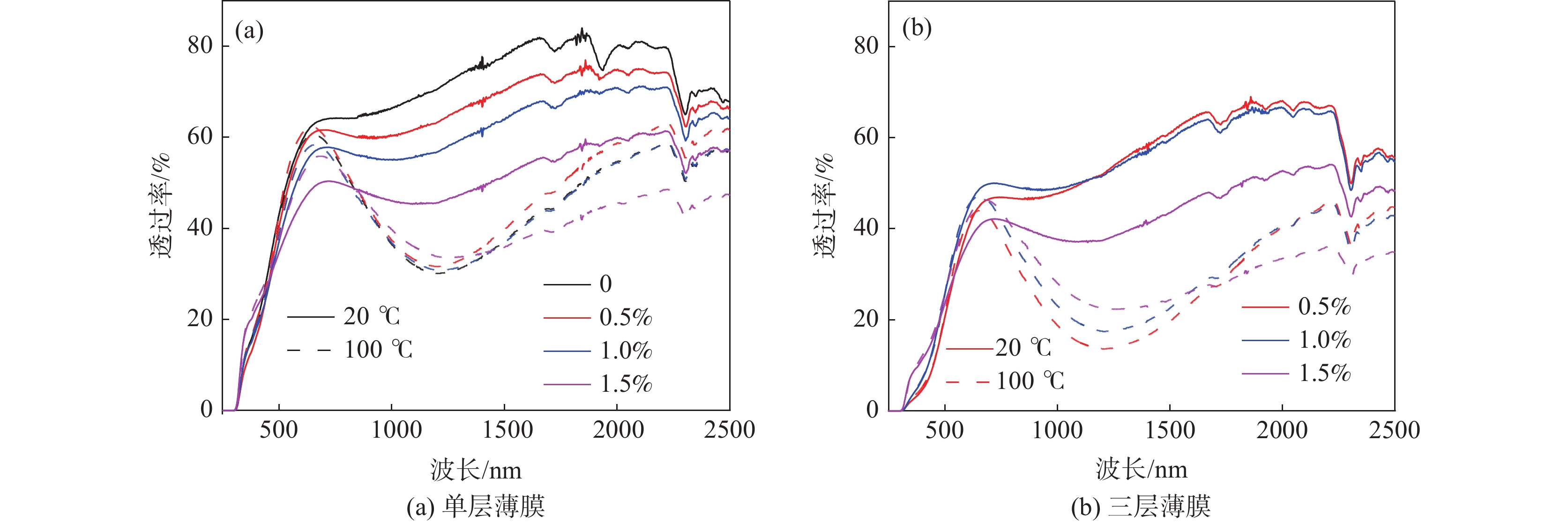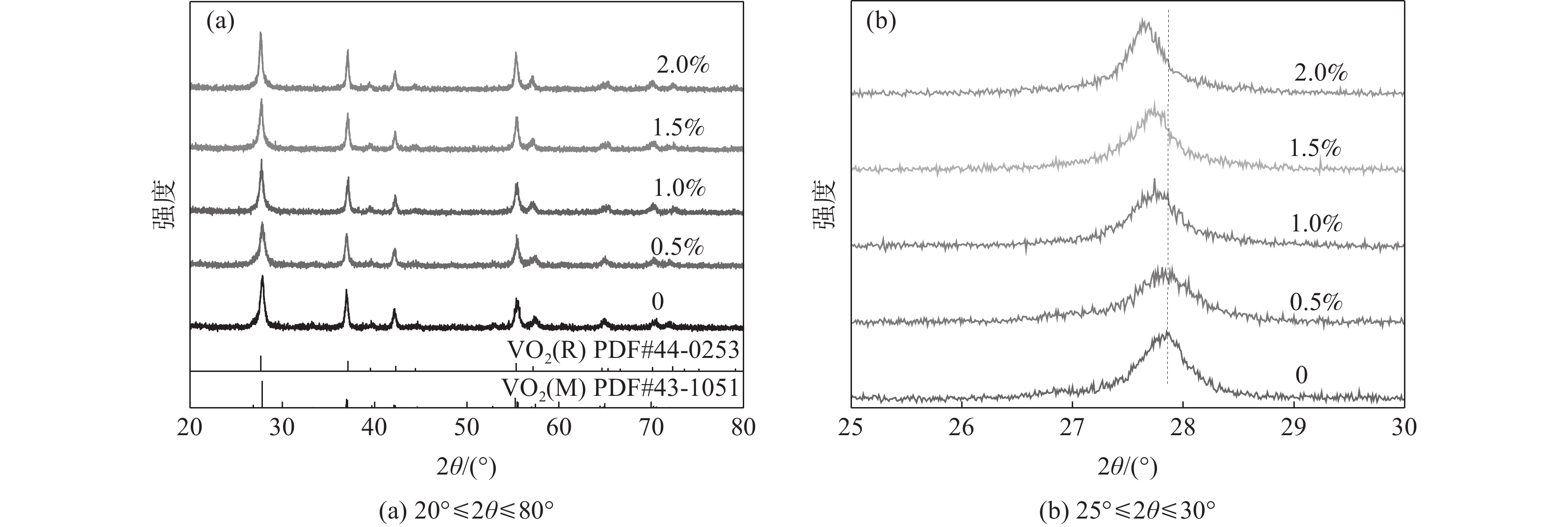 In this paper, using ammonium metavanadate as the vanadium source, hydrazine monohydrate as the reducing agent and ammonium metatungstate as the dopant, the VO2 powder doped with W from 0.0 to 2.0 at% was prepared by one-step hydrothermal method at 280 ℃, and was added to polyurethane to prepare VO2/PU composite films. XRD, TEM, XPS and DSC were used to analyze the phase composition, morphology, element valence state and phase transformation performance of the synthesized samples. The transmittance of the films was measured by UV-Vis-NIR spectrometer. The results show that with W doping increasing from 0.0 to 2.0 at%, the phase transition temperature of vanadium dioxide decreases from 61.8 ℃ to 15 ℃. The composite film based on 1 at% W-doped vanadium dioxide powder shows a good solar modulating ability (ΔTsol = 11.7%), which meets the practical application requirements of intelligent windows.