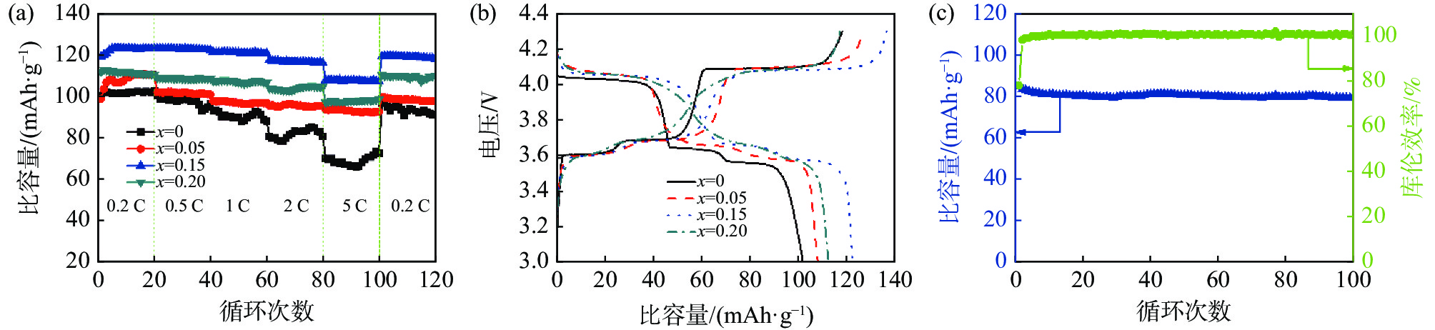 In this paper, Sc3+ doped Li3V2(PO4)3/C cathode material was successfully prepared by carbothermal reduction method. The effects of Sc3+ doping amount on the structure, morphology and lithium storage properties of Li3V2(PO4)3 were systematically investigated. Although Sc3+ doping does not change the lattice type of Li3V2(PO4)3, it makes the lattice of Li3V2(PO4)3 expand and the unit cell volume increase, which is beneficial to electron transport and Li+ diffusion. In addition, Sc3+ doping makes irregular polygonal Li3V2(PO4)3 particles spheroidized and reduces the particle size. More importantly, the appropriate doping amount of Sc3+ can significantly enhance the electronic conductivity and Li+ diffusion coefficient of Li3V2(PO4)3 cathode material. Benefiting from the appropriate Sc3+ doping amount, carbon coating and porous structure, Li3V1.85Sc0.15(PO4)3/C samples possess superior lithium storage properties. The initial discharge specific capacity is 84.8 mAh/g at 10 C rate, and the capacity retention rate is as high as 93.5 % after 100 cycles.