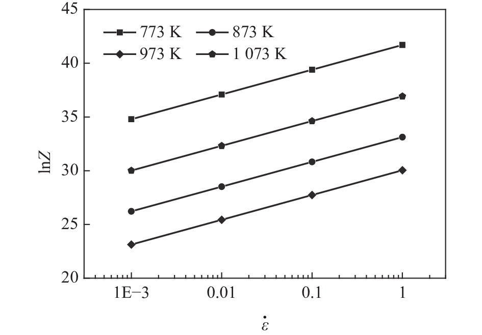 In order to study warm deformation behavior of the biomedical Ni-Ti alloy, compression tests were performed on a Gleeble-3800 thermal simulator. The true stress-true strain curves were obtained. The constitutive relationship and microstructures evolution during the deformation were analyzed. The processing map was established and optimum parameters for warm deformation were determined. The results show that dynamic recovery and recrystallization are the main softening mechanism during compression. Dynamic recovery occurs when 30≤lnZ≤42 and recrystallization occurs when 23≤lnZ≤26. According to the microstructural analysis and processing map, the alloy shows better workability and fine recrystallized microstructures at low strain rates and high deformation temperatures. And the optimum deformation parameters of the alloy were determined as follows: domain 1 occurs in the temperature range of 935-1 045 K and the strain rate range of 0.001-0.004 s?1, and domain 2 occurs in the deformation temperature range of 1 045-1 073 K and strain rate range of 0.003-0.03 s?1.