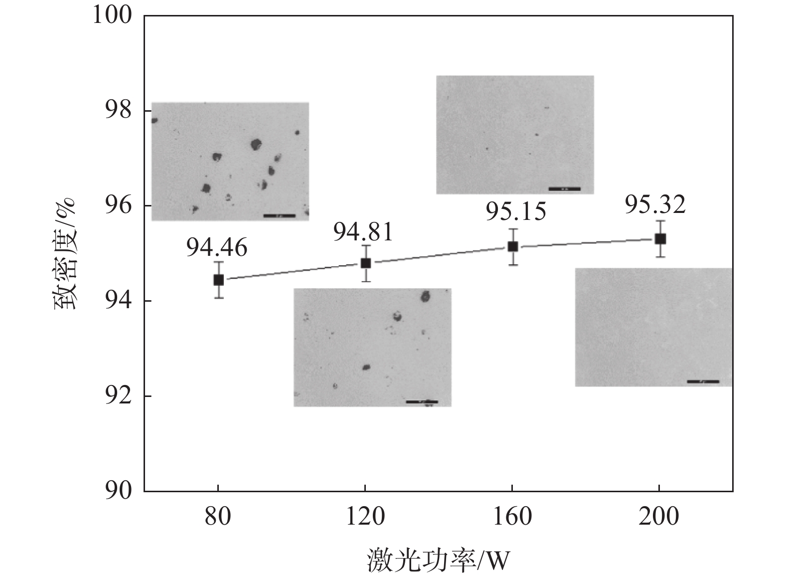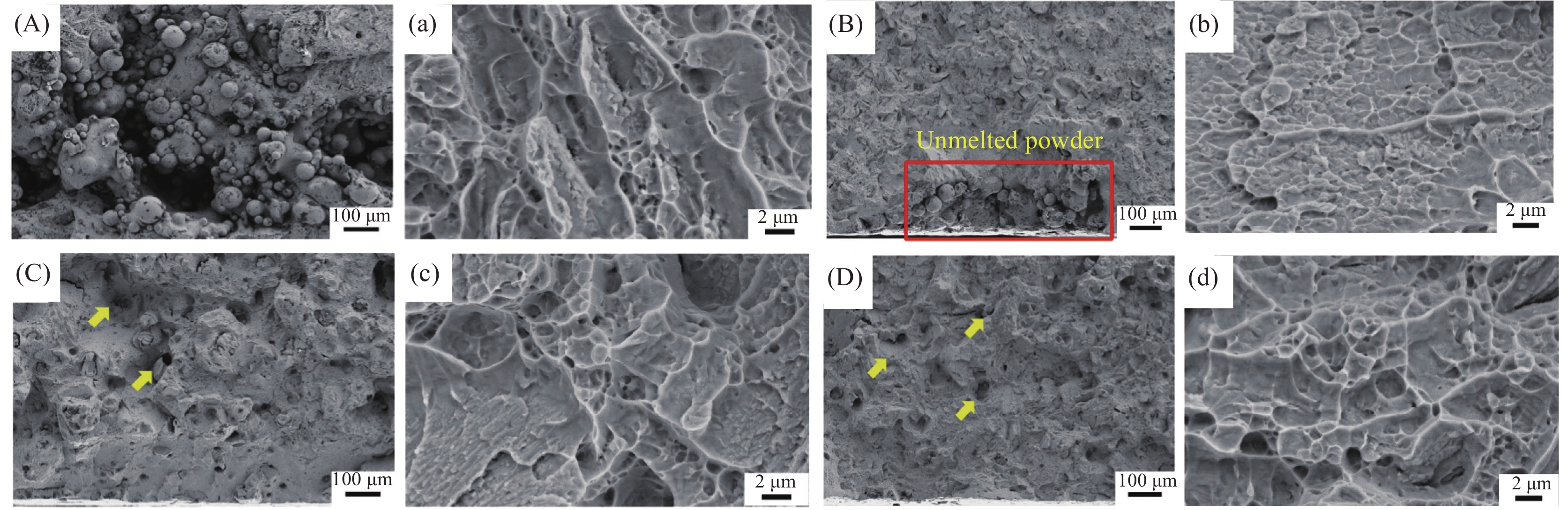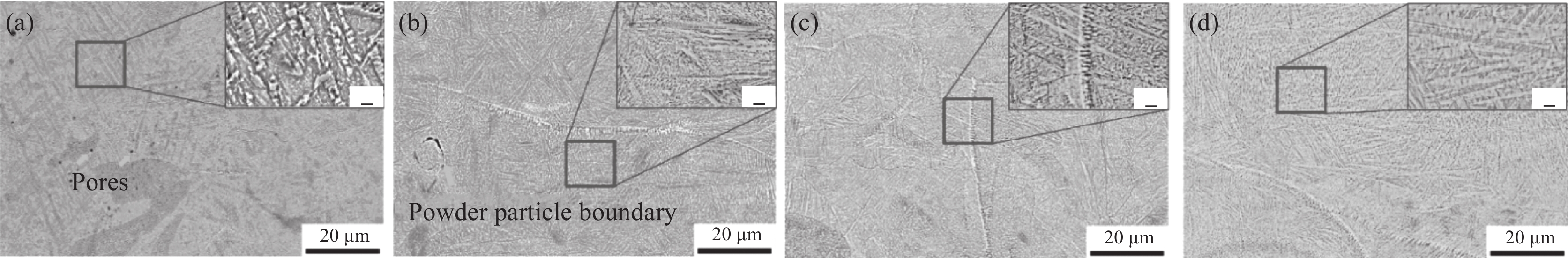 The Ti-25Ta alloy powder was successfully prepared by radio frequency plasma spheroidization, and the Ti-25Ta alloy spherical powder was subsequently formed by selective laser melting. The effect of laser power on the surface morphology, density, microstructure and mechanical properties was studied. The results show that the D50 of the Ti-25Ta alloy powder after spheroidization is 43.8 μm, which is slightly larger than that of the raw material. The interior of the raw material powder exhibits dendrite structure, while the interior of the powder after spheroidization shows a cellular structure. The flowability, bulk density and tap density of the powder are greatly improved. As the laser power increases, the α′ martensite refinement is obvious. At a higher laser power of 200 W, the density reaches a maximum of 95.32% vs. solid, and the microhardness (HV0.3) is 378.2. The tensile testing shows that with the increase in laser power, the fracture mechanism of the material changes from brittle fracture to brittle-ductile fracture.