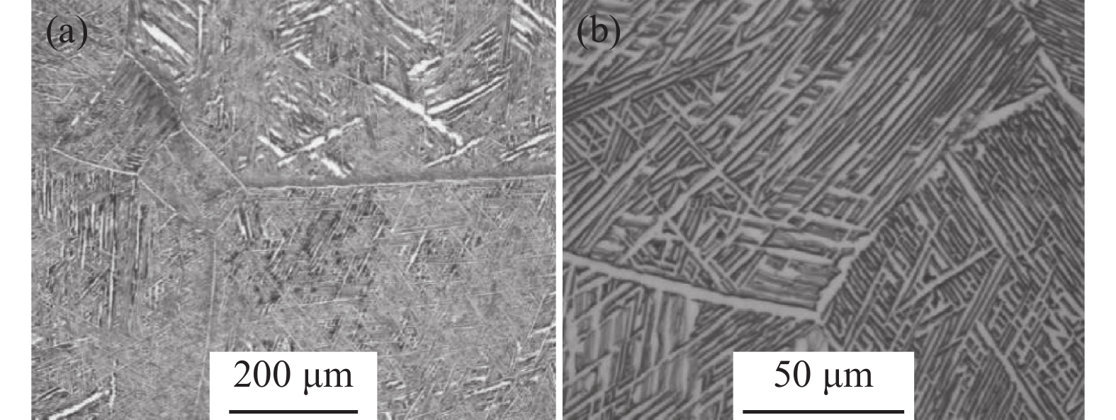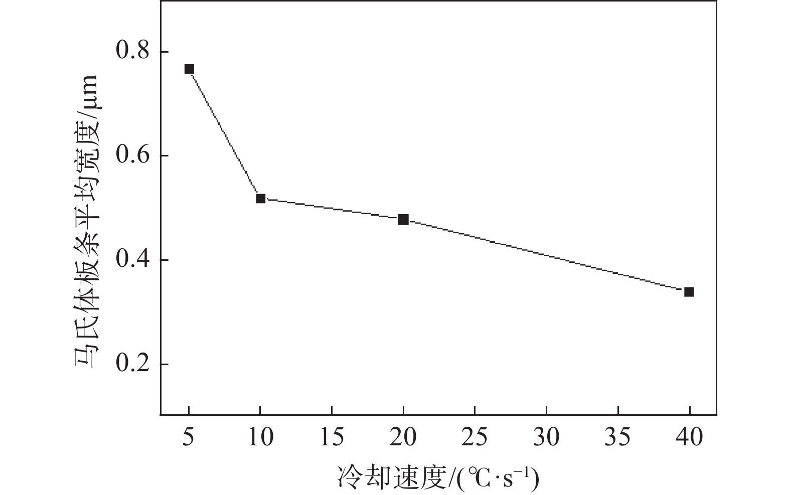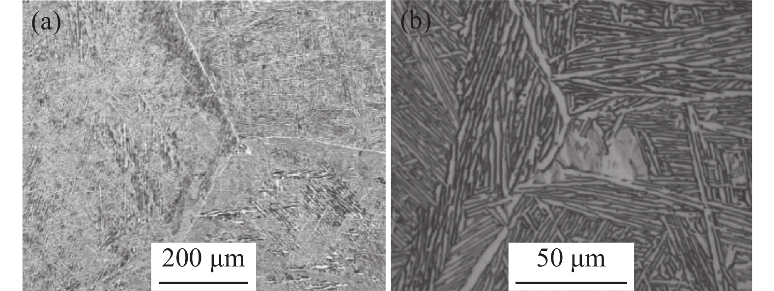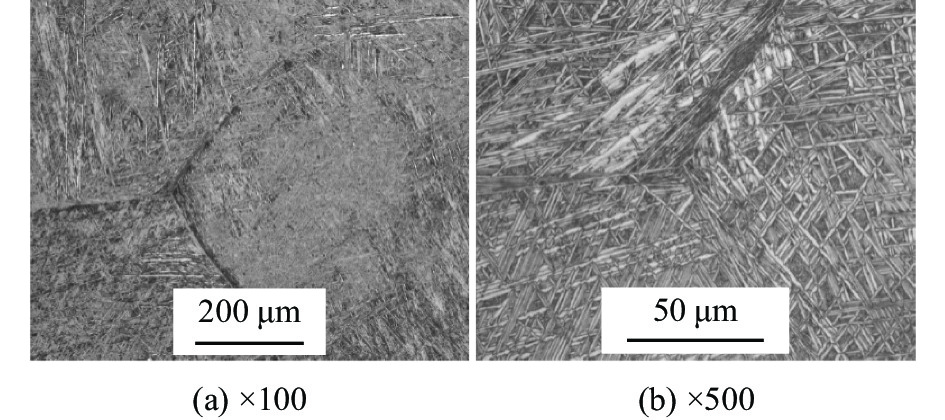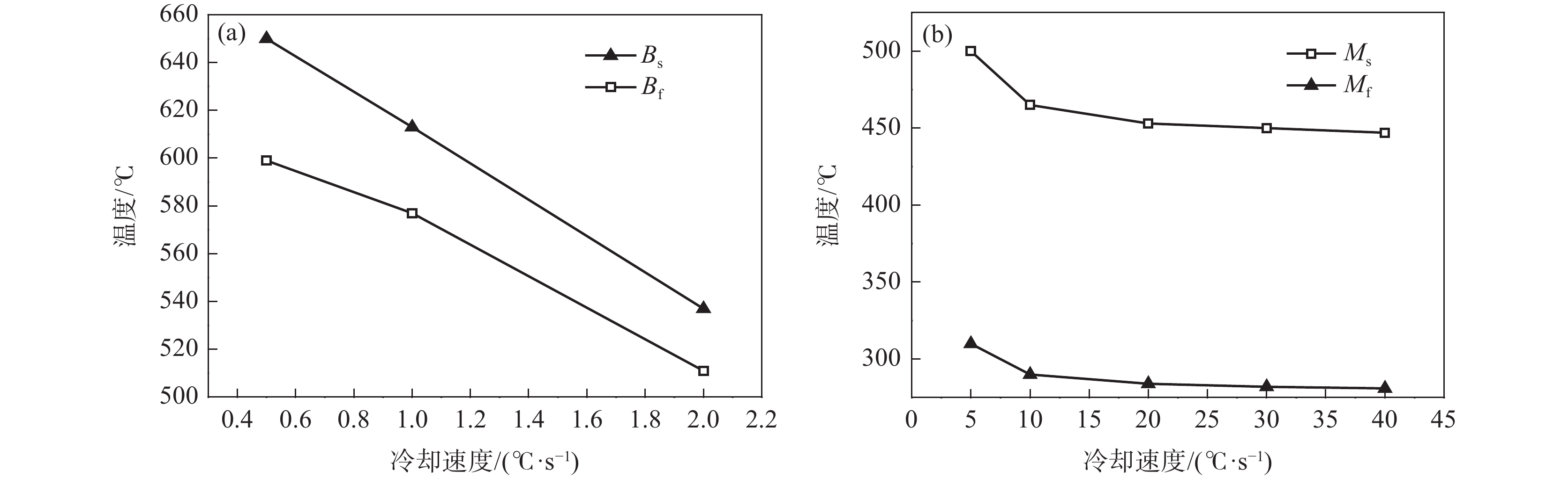 Transformation behavior of Cr-Mo-Ni-B ultra-high strength steel for construction machinery under continuous cooling condition was studied by means of MMS-200 thermomechanical simulator. The effect of cooling rate (0.5~40 ℃/s) on its transformation temperature and microstructure was analyzed by thermal dilatometry curves, optical microscopy (OM) and scanning electron microscopy (SEM). The results show that transformation temperatures of Bs, Bf, Ms and Mf decrease and phase transformation at medium and low temperature is promoted with the increase of cooling rate. As the cooling rate is below 2 ℃/s, pearlite and bainite transformations occur. Mixture microstructure of granular bainite and lath martensite is observed when cooling rate is in range of 2 ℃/s and 5 ℃/s. As the cooling rate is above 5 ℃/s, granular bainite disappears and fully martensitic microstructure is obtained. In the formation temperature range of medium and low temperature transformation microstructure, the morphology, size and quantity of M/A islands as well as width of martensite lath are influenced significantly by cooling rate. With the increase of cooling rate, the morphology of M/A islands is modified from blocky shape into granular shape, their size decreases and the volume amount increases. The average width of the martensite lath decreases as a result of increasing the cooling rate.