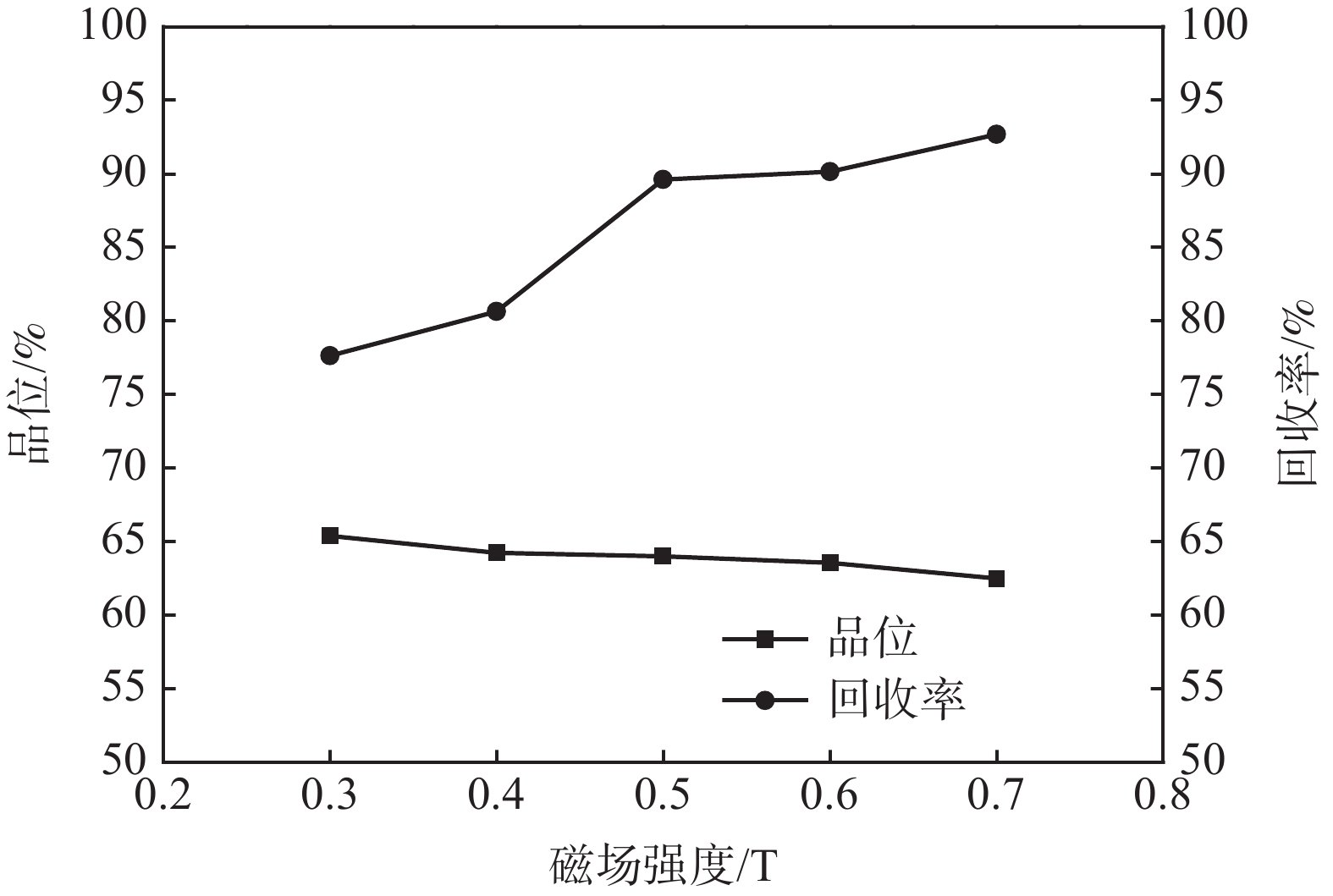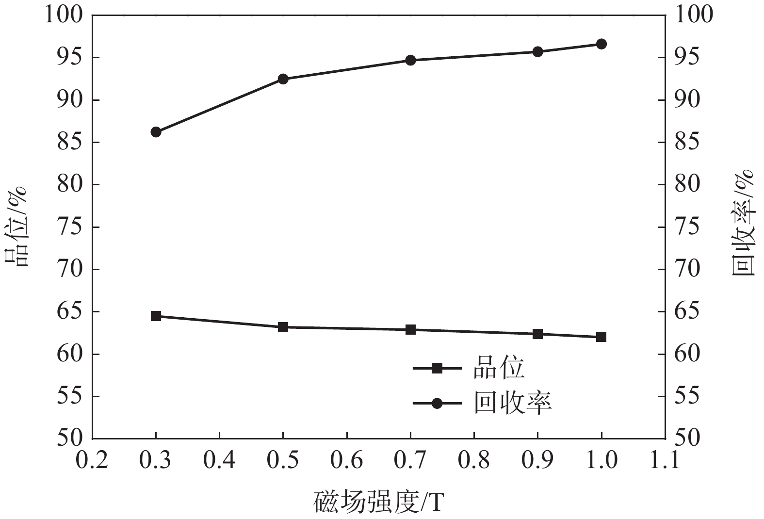 Australia is rich in high-quality iron ore resources with high raw ore grade and low content of harmful elements, which can be directly smelted without beneficiation after mining. However, high-quality iron ore resources are not renewable. The development and utilization of lower grade iron ore resources is of great significance for the sustainable mining. An iron ore from Australia has a Fe grade of 57.93%. The mainly iron-containing minerals contain hematite, limonite, and a small amount of pyrolusite. The gangue minerals are mainly kaolinite and silica, followed by feldspar, biotate, calcite, white titanium, and rutile. The complex embedded relationship among the valuable mineral, the fine disseminated grain size of hematite as well as limonite inclusion were contained in kaolinite, silica which is not conducive to the magnetic separation of the iron ore. In this paper, a flow chart of magnetic separation-flotation was adopted to obtain iron ore concentrate with Fe grade of 68.57% as well as Fe recovery of 76.45%.