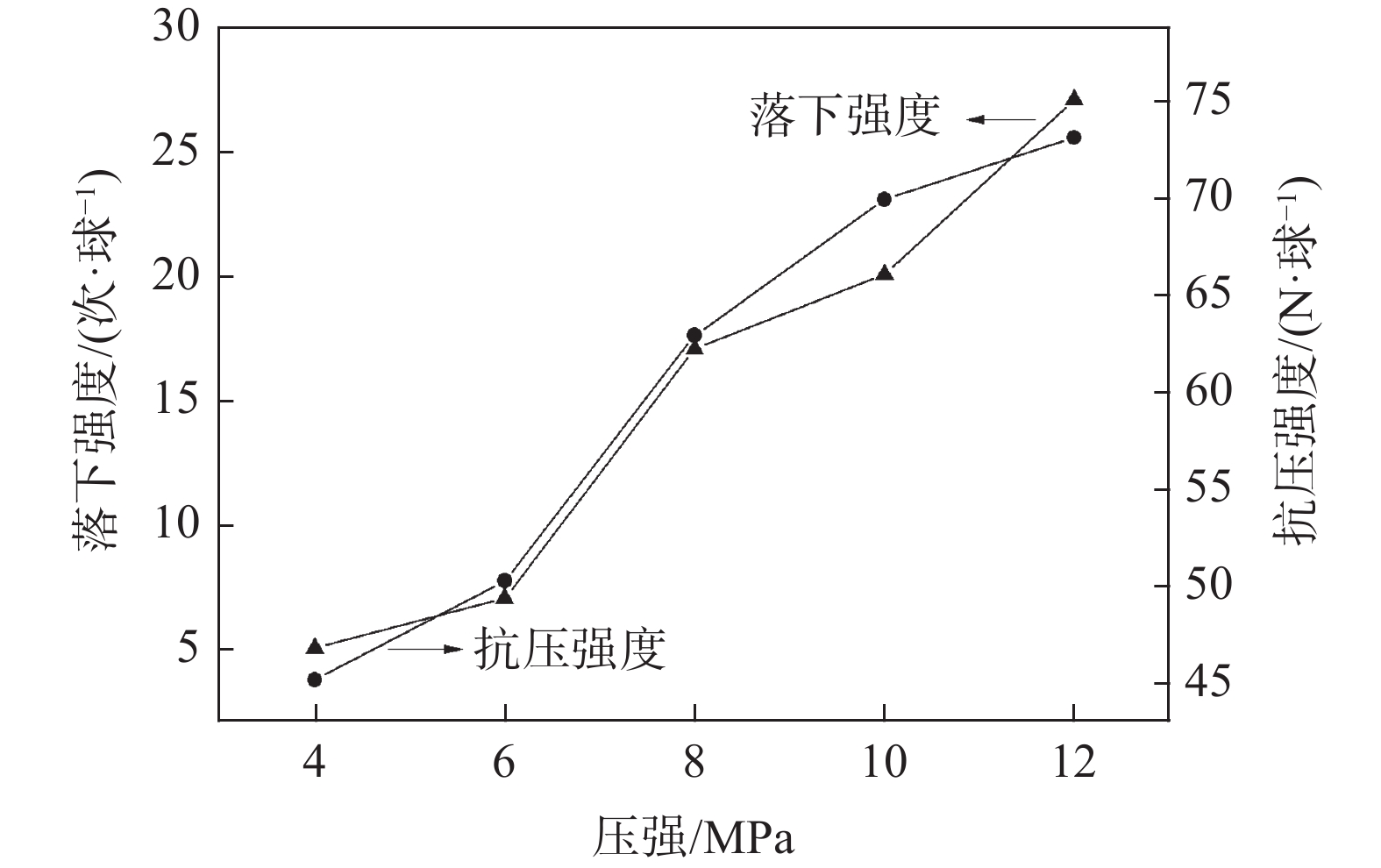 In order to separate and recover iron resources of Panzhihua pyrite residue, using Panzhihua pyrite residue as raw material, pulverized coal as carbon source, and polyvinyl alcohol (PVA) as binding agent, the influences of the content of polyvinyl alcohol, the water content, the pressure and the particle size composition on the mechanical strength properties of pyrite residue carbon pellets were studied in this paper by orthogonal experiments and single factor optimization experiments. The research results show that the pressure has the greatest influence on the strength properties of pyrite residue carbon pellets, followed by the content of polyvinyl alcohol and water content, and finally the particle size composition. The appropriate process for forming pyrite residue carbon pellets was obtained including the content of polyvinyl alcohol of 0.4%, the water content of 9%, the pressure of 10 MPa, and below 88 μm particle size of 70%. Under these conditions, the compressive strength of pellets was 185.4 N/pellet and the falling strength was 42.5 times/pellet, which meet the requirements of mechanical strength in pellets industrial production. The research results will provide reference for the reduction, separation and recovery of iron resources from pyrite residue, and also lay a certain foundation for the improvement of the comprehensive utilization rate of Panzhihua vanadium titano-magnetite resources.