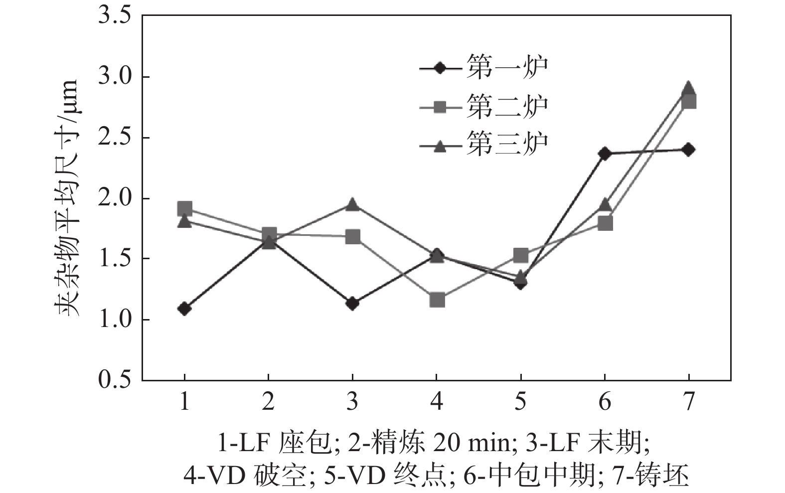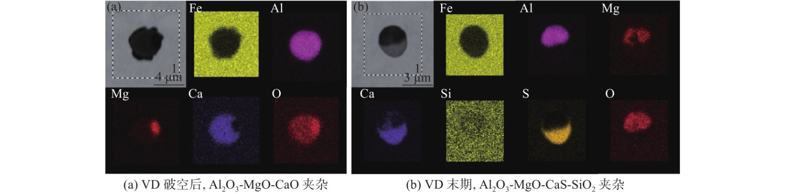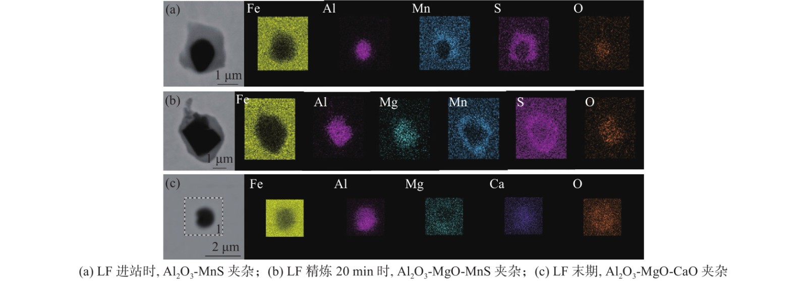 In order to effectively improve the cleanliness of gear steel and product quality, it is necessary to clarify the evolution behavior of non-metallic inclusions in the smelting process of gear steel. This paper takes 20MnCr5 gear steel as the research object. Through sampling and analysis of the whole LF-VD-CC gear steel production process, a scanning electron microscope is used to systematically analyze the characteristics of inclusion composition, morphology, size, and quantity at different stages of the smelting process. When LF enters the station, the primary inclusions are Al2O3-MnS composite inclusions, among which many MnS inclusions are distributed. After 20 minutes of refining, Al2O3-MgO-MnS composite and Al2O3 inclusions were observed. At the end of LF, the product is unchanged. After VD breaking, the primary inclusions observed are MnS inclusions, which are nearly spherical and consist of MnS inclusions with Al2O3 as the core. There are many magnesia-aluminum spinels, some of which have a small amount of CaO, and some have a small amount of MnS. However, the main component is the magnesia-aluminum spinel.