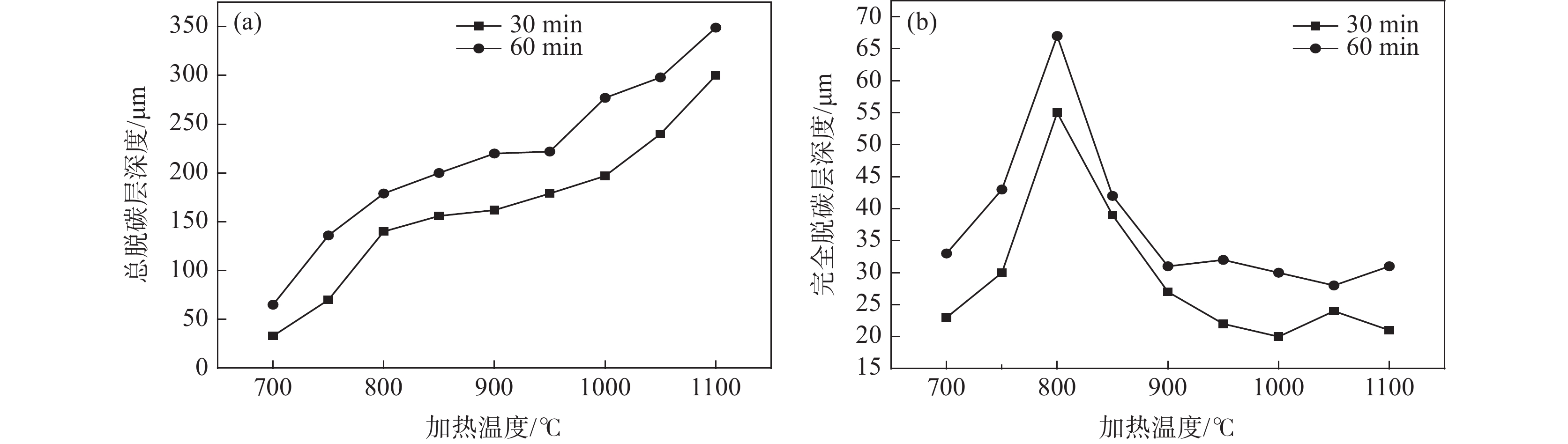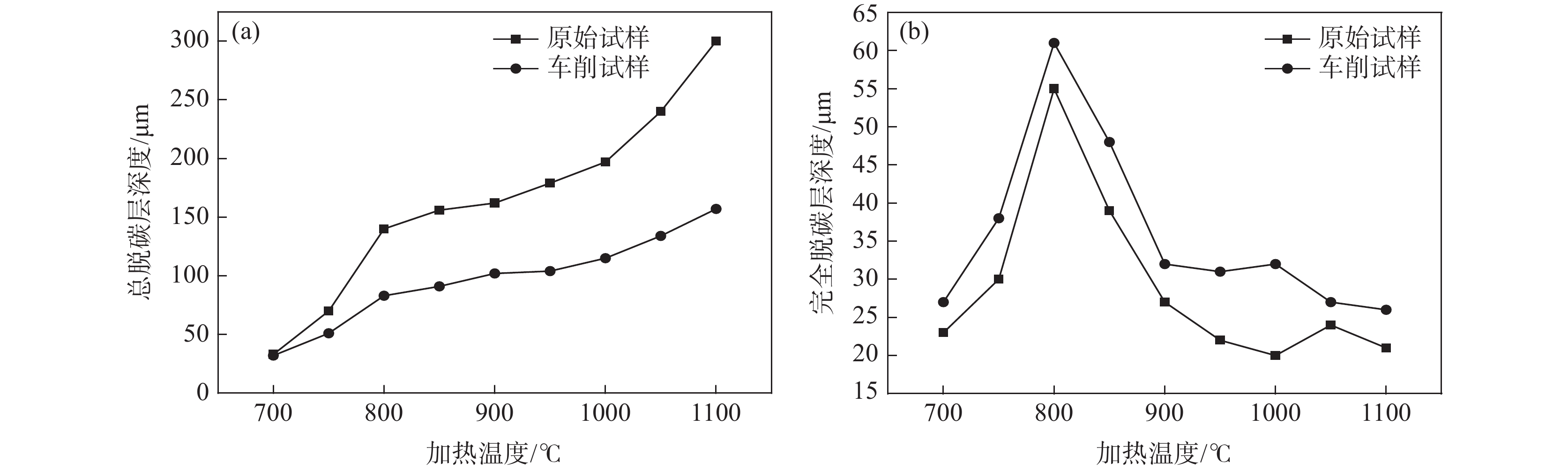 The effects of heating temperature, heating time, and surface treatment on the depth of decarburized layer and microstructure of cold heading 40CrMoV steel were studied, and the evolution mechanism of surface decarburization with temperature was analyzed. The results show that when the cold heading 40CrMoV steel is heated at 700-1100 ℃, the total decarburized layer depth increases gradually with the increase in temperature. 750-850 ℃ is the sensitive temperature range for forming a complete decarburized layer, and it reaches its peak value at 800 ℃. With the extension of holding time, the depth of the decarburized layer is further deepened. Additionally, after surface turning treatment, the total decarburized layer is reduced by 50%, and the complete decarburized layer deteriorates. As a summary, the control of surface decarburization of cold heading 40CrMoV steel in industrial production is proposed.