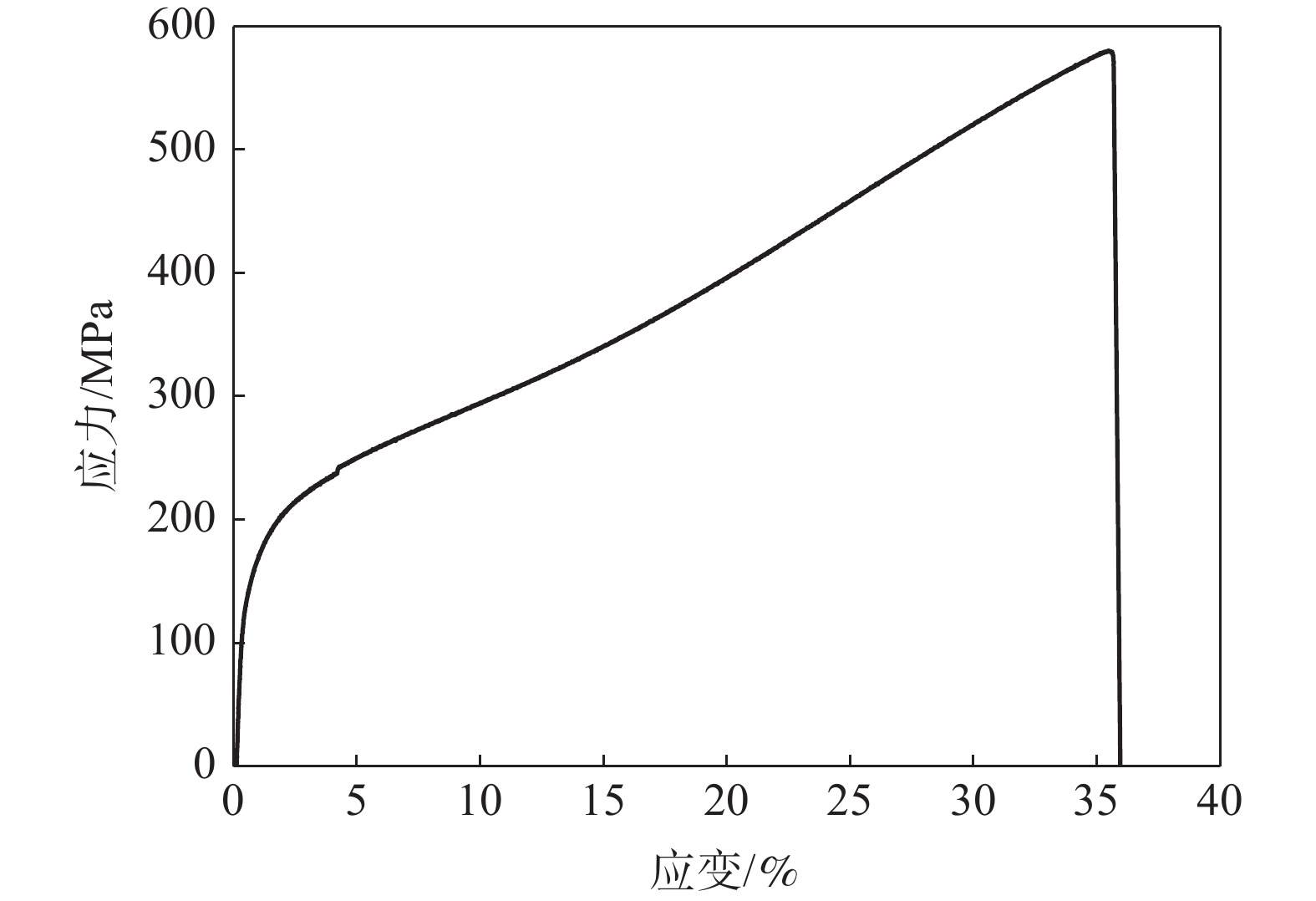 The effect of solution and aging treatment on the microstructure of Ti60 alloy was investigated by optical microscope and scanning electron microscope. Combined with the tensile tests at room temperature and 600 ℃, it is found out the 1/2 height area of forged billet is relatively uniform and suitable for the study of solution aging treatment and subsequent mechanical properties of Ti60 alloy. After solution and aging treatment at 1 035 ℃/2 h/WQ+700 ℃/5 h/AC, the tensile strength of Ti60 alloy at room temperature is 1193 MPa and the elongation is 6.7%. While tested at 600 ℃, the tensile strength is 751 MPa and the elongation is 20.3%. When crack source originates from the center of the sample, and the fracture is uneven, which shows a typical dimple fracture. When the crack source locates on the edge, it diverges explosively and the fracture has obvious tearing edges and smooth surface, which exhibits a typical brittle fracture mode. After long duration heat exposure at 600 ℃, oxidation occurs on the alloy surface, which reduces the thermal stability and plasticity of Ti60 alloy. The long duration stable service performance of Ti60 alloy was investigated at 600 ℃. The tensile strength at room temperature of as-forged Ti60 alloy was 1 064 MPa, and the elongation rate was 9.4%.After solution aging, the tensile strength and elongation of obtained alloy are 1 224 MPa and 4.7%, respectively.