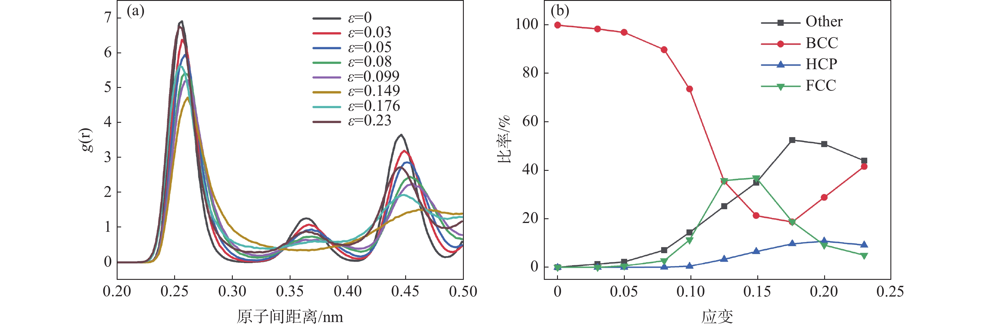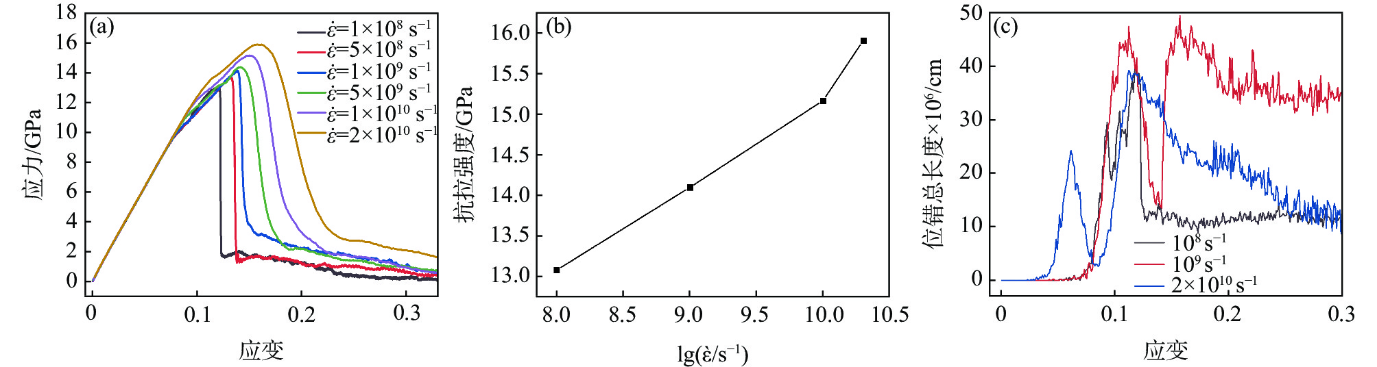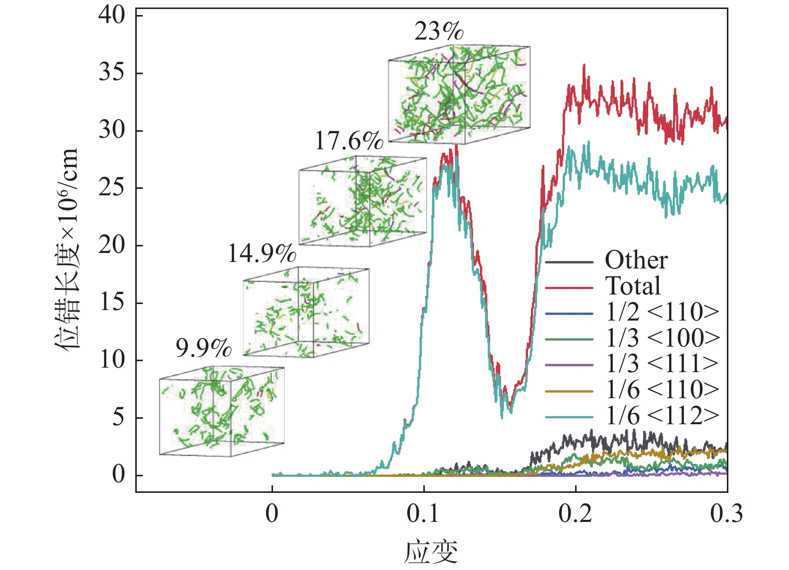 In this paper, the molecular dynamics method studied the microstructural evolution, deformation mechanism, and mechanical properties of AlxCoCrFeNi high entropy alloy (HEAs) under uniaxial tension. The effects of Al content, high temperature, and high strain rate on the mechanical properties of AlxCoCrFeNi at 0.1 to 1.0 molar ratio were investigated. The results show that when the molar ratio of Al is 0.1 to 1.0, the yield strain and stress at room temperature (300 K) decrease with the Al content and temperature increase. With the increase of Al content, HEAS will begin to yield at a minor strain and enter the yield stage earlier, which makes HEAS easier to deform and reduce the mechanical properties. At 300 ? 1500 K, with the increase in temperature, the dislocations gradually decrease, the interaction between different dislocations is weakened, and the fixed dislocations cannot be formed, which hinders the movement of materials and leads to the decline of material strength. AlxCoCrFeNi yield strain and yield stress are positively correlated with the change of strain rate, and the yield stress is sensitive to high strain rate.