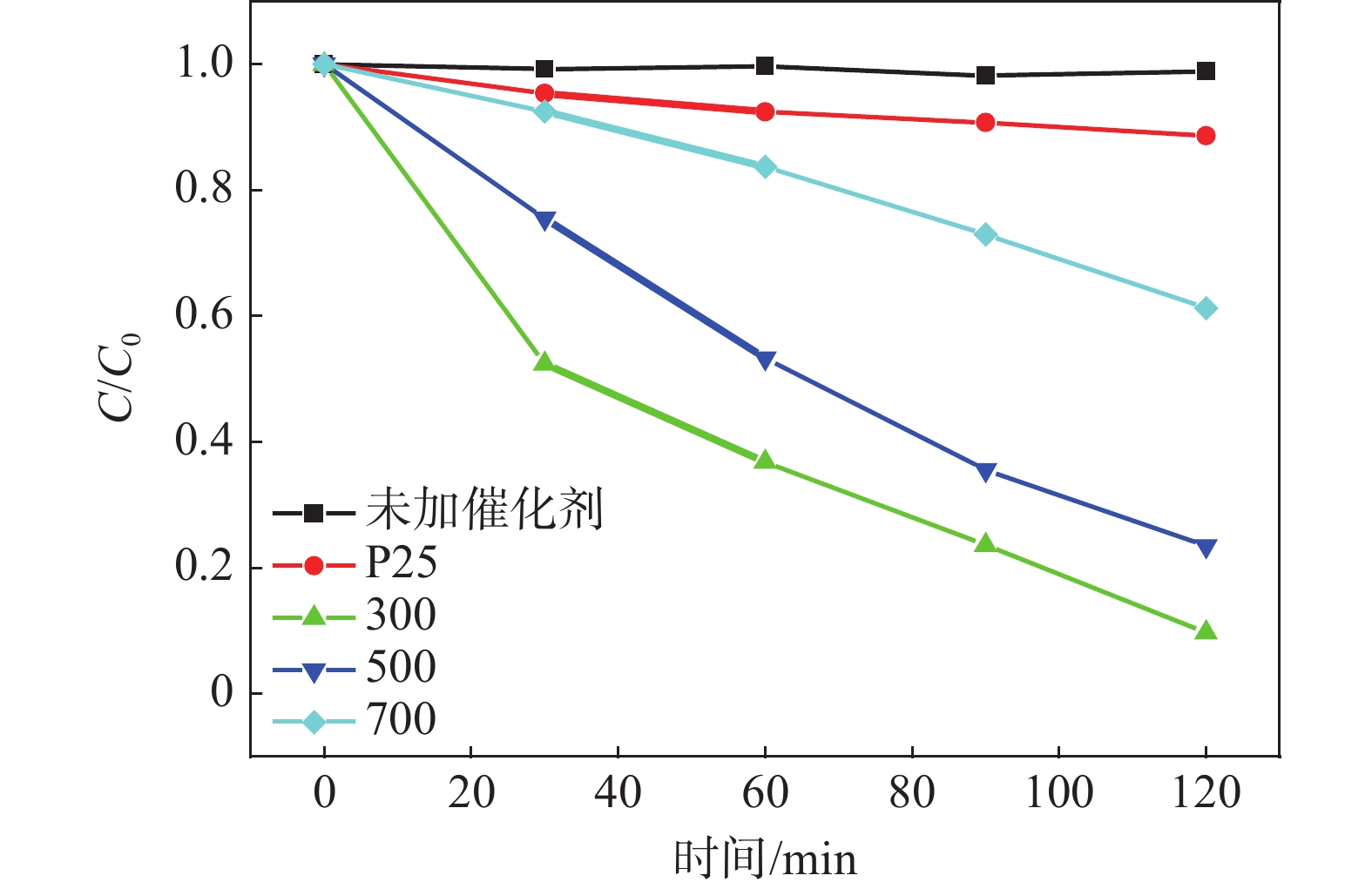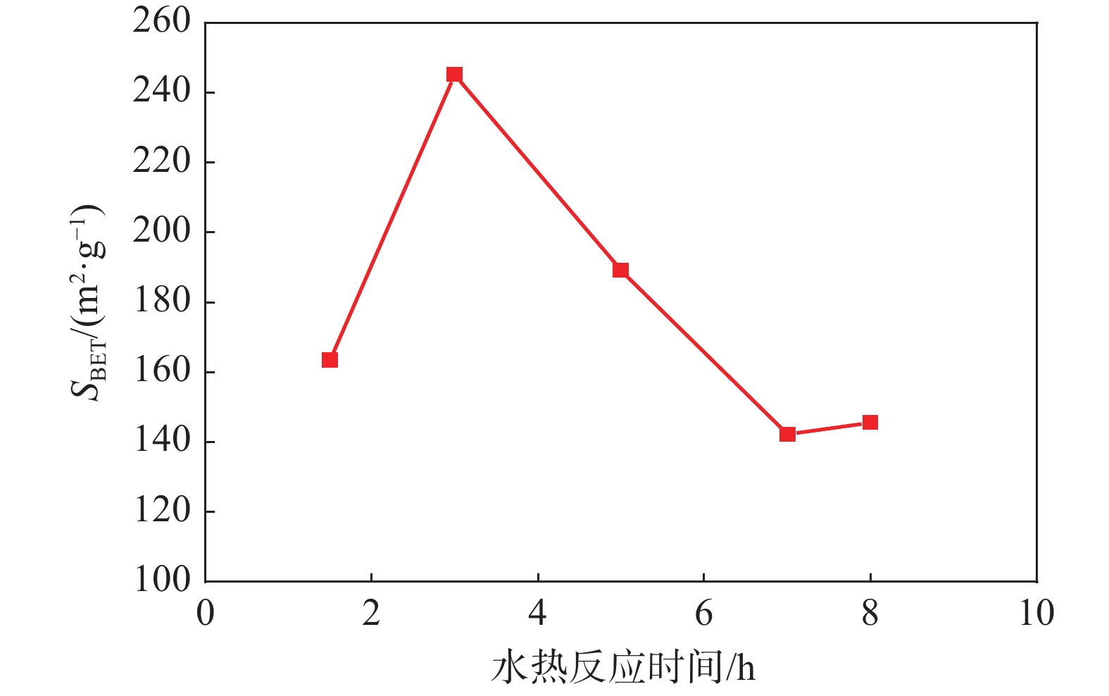 Titania with high surface area was prepared by hydrothermal method using industrial titanyl sulfate solution as raw material. The influence of hydrothermal reaction time and calcination temperature on the specific surface area of titania were investigated. The samples were characterized by BET, XRD, XPS, SEM, TEM, FT-IR, UV-Vis DRS and the visible photocatalytic activity was evaluated by the degradation of model compound Rhodamine B. The results show that the proper hydrothermal reaction time and low calcination temperature are beneficial to the preparation of titania with high specific surface area. The titania obtained by hydrothermal reaction for 3 h and calcination temperature at 300 ℃ has the highest specific surface area, up to 214.3 m2/g. And the visible light degradation activity of Rhodamine B is significantly better than that of commercial titanium dioxide P25, which is because the prepared titania has a higher specific surface area and better visible light absorption, its degradation rate reached 90.3% in 2 h.