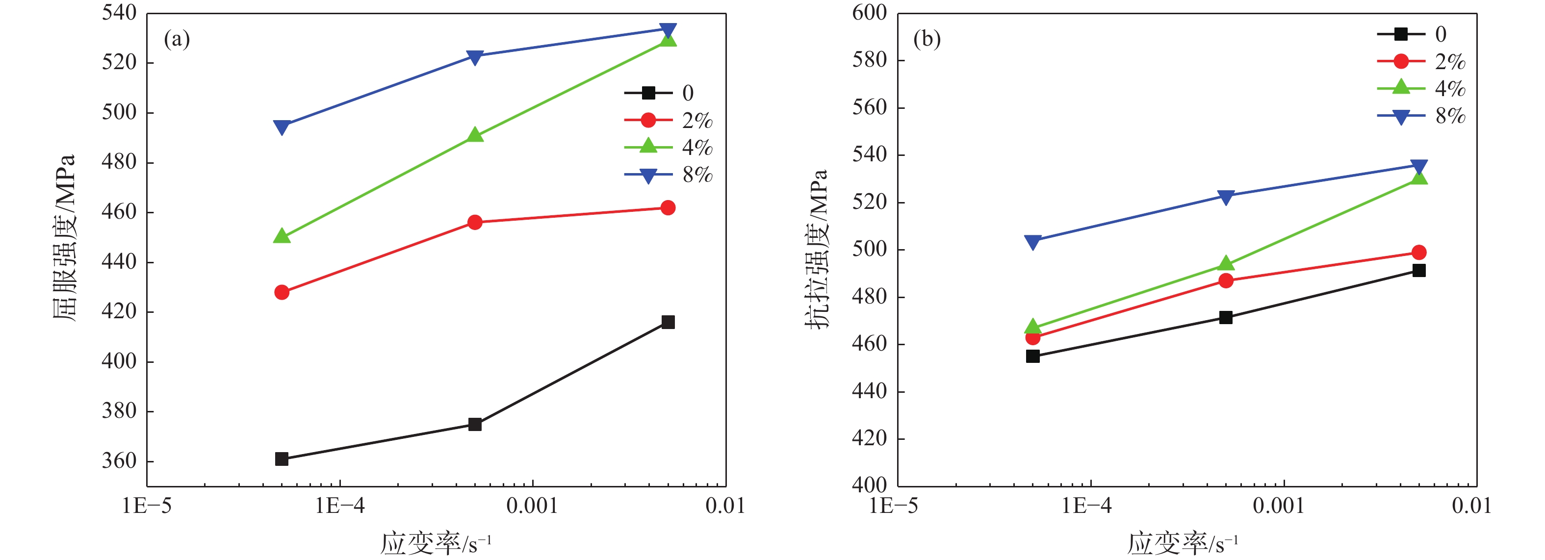 In this paper, room temperature tensile mechanical properties of commercially pure titanium TA2 welded joint after pre-straining were studied. The results show that stress-strain curves rises and yield strength and tensile strength increase with the degree of pre-strain. With considering effects of pre-strain and strain rate, the empirical expression for the strength of the material after pre-strain was developed. According to Hollomon constitutive equation, the variations of strain rate sensitivity index and strain hardening exponent were analyzed. Meanwhile, the tensile constitutive equation for the pre-strained samples was determined. The observation of fracture surface indicates that the reduction of fracture surface and the size of dimples decreases after pre-straining due to the decrease of elongation of the material.