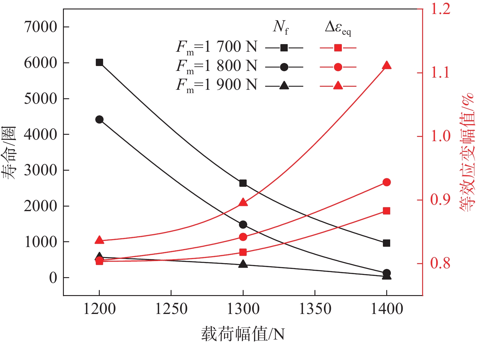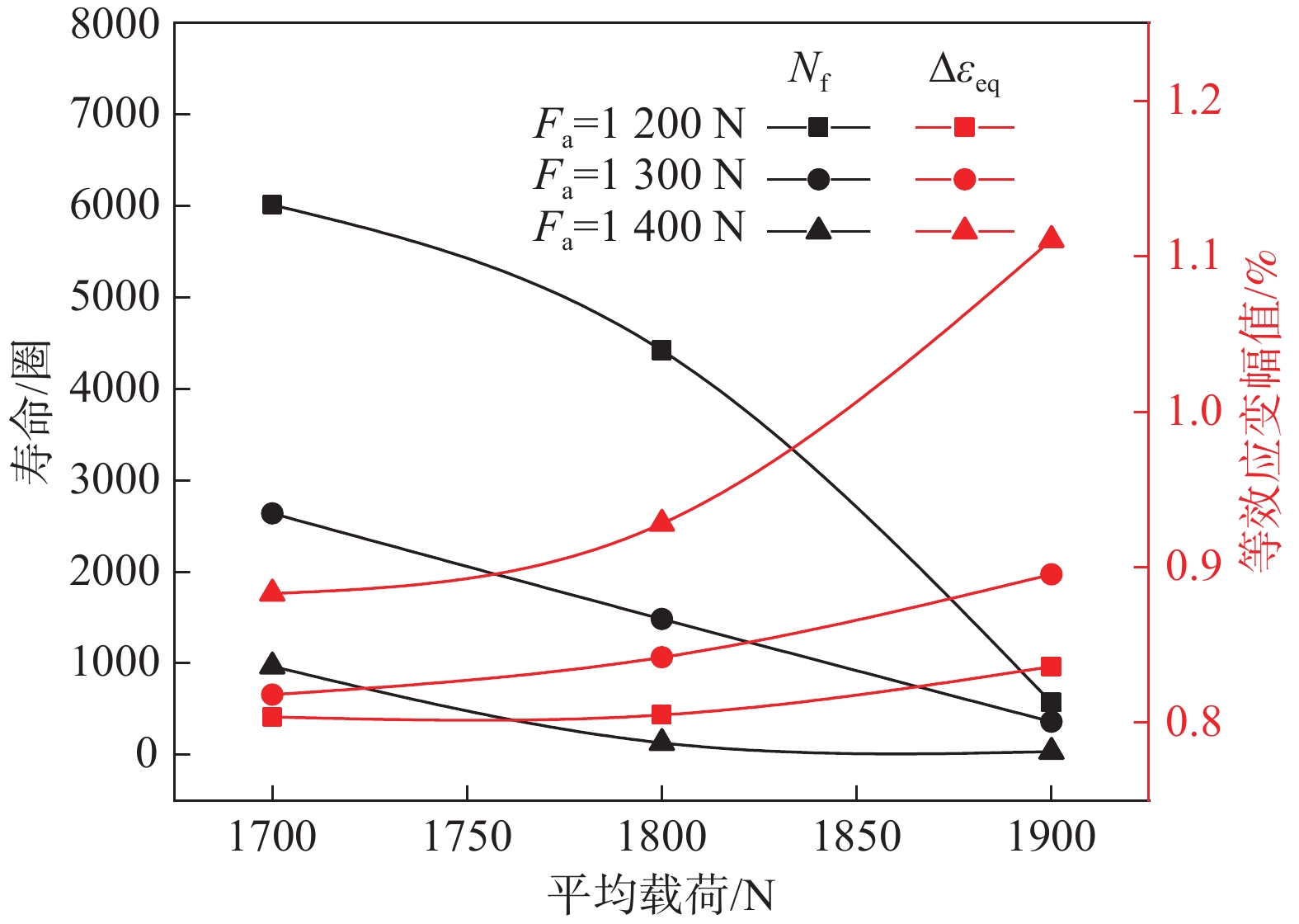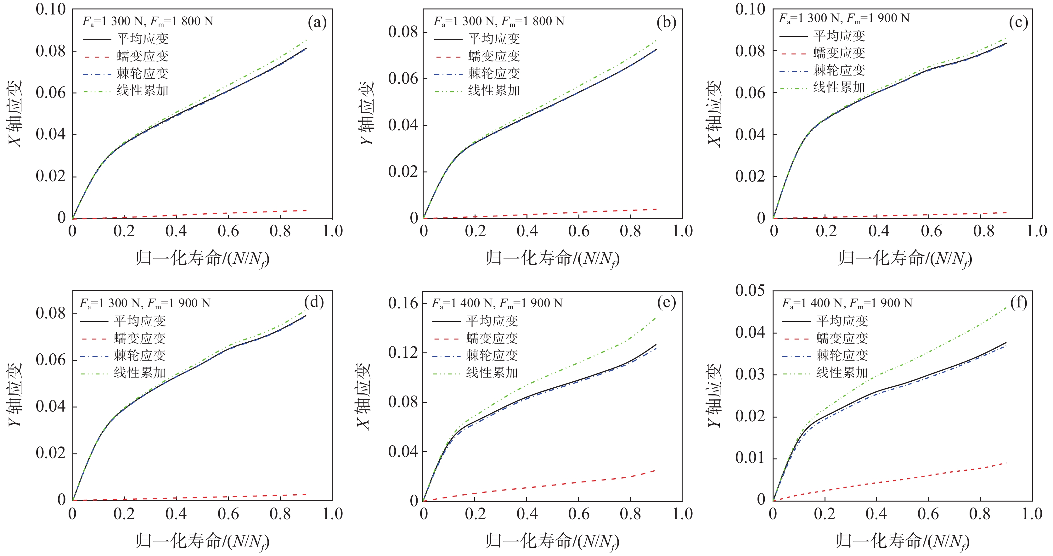 Based on biaxial dwell fatigue tests at room temperature, effects of different mean loads and load amplitudes on the biaxial dwell fatigue behavior of commercial pure titanium were studied. The results show that the mean strain and strain rate increase with the increase of mean load and load amplitude under the same dwell time. When the load amplitude remains constant, the creep strain increases with the increase of the mean load. However, when the mean load remains constant, the creep strain decreases with the increase of the load amplitude. By analyzing the interaction between biaxial ratcheting and creep strain, it is found that ratcheting strain and creep strain are always restricted by each other. Fracture surface analysis shows that with the increase of mean load and load amplitude, the fatigue strip characteristics disappear gradually, and the number of dimples and tearing ridges significantly increases, exhibiting ductile failure mode. Meanwhile, with the increase of mean load or load amplitude, equivalent strain amplitude is increased, leading to the decrease of fatigue life. Compared with the effect of mean load, fatigue life is more sensitive to the variation of load amplitude. Maximum principal strain, maximum shear strain, Mises equivalent strain, maximum principal stress and SWT models are used to perform biaxial dwell fatigue life prediction, among them SWT model has the highest prediction accuracy.