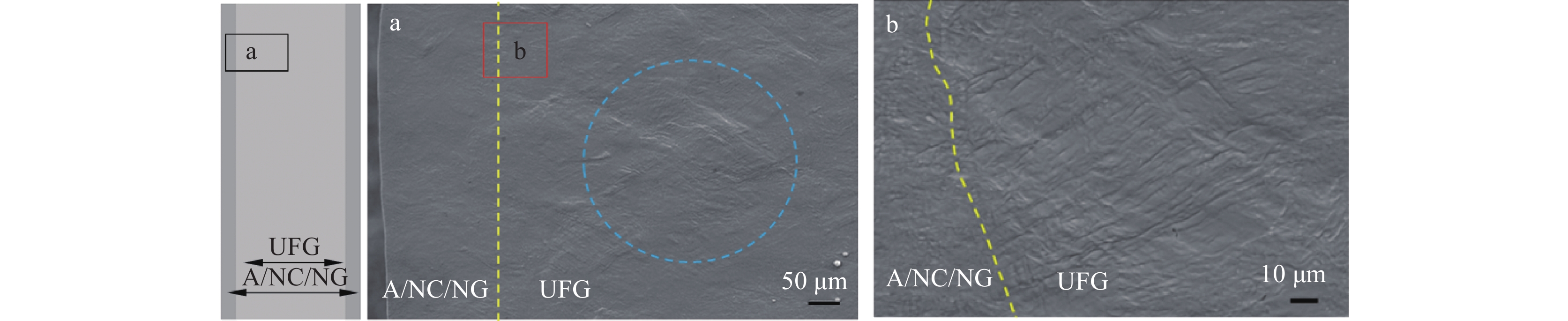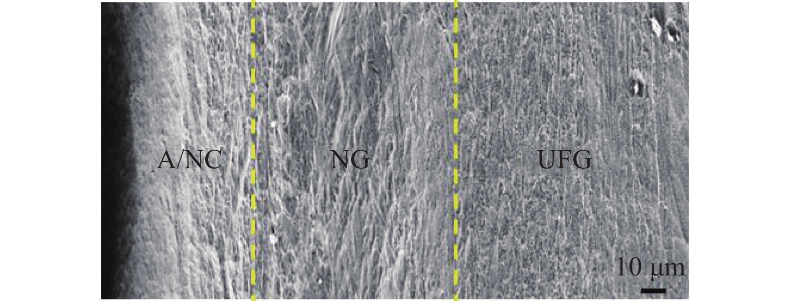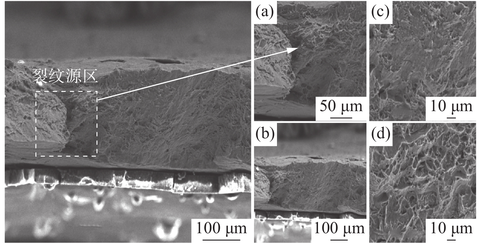 In view of the poor toughness and work hardening performance of ultra-fine grained (UFG) metals at room temperature, we designed and prepared the micro multilayer hierarchical structure (MHS) of metal materials using low-temperature rolling and surface mechanical attrition treatment (SMAT) processes, which improved the mechanical properties and work hardening ability of UFG Ti. The microstructure observation and mechanical properties testing, combined with fracture surface analysis, show that the multilayer gradient microstructure can improve the work hardening ability of ultrafine-grained metal, achieving a more moderate stress distribution and an improved resistance of the workpiece to failure cracks. A fracture mechanics model is proposed to explain the crack arrest effect of the MHS.