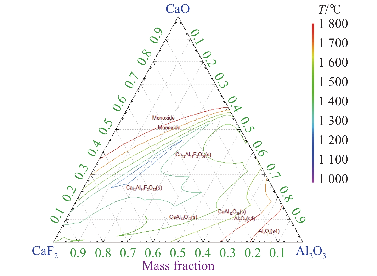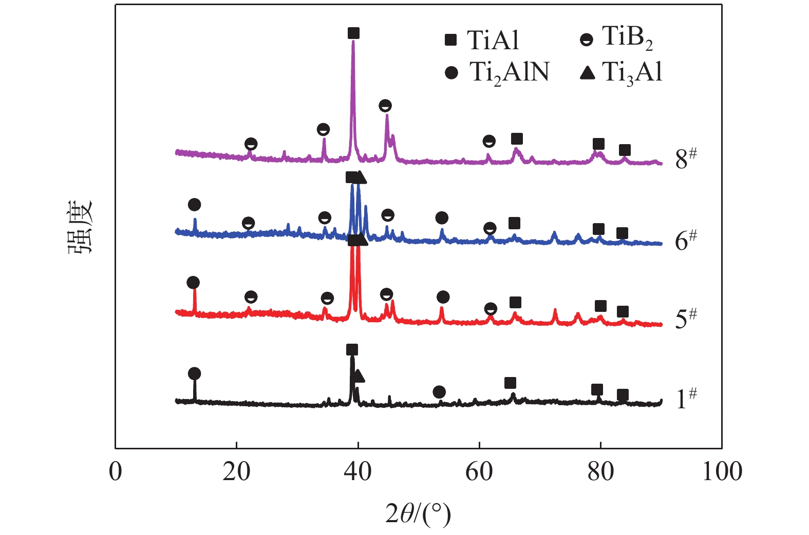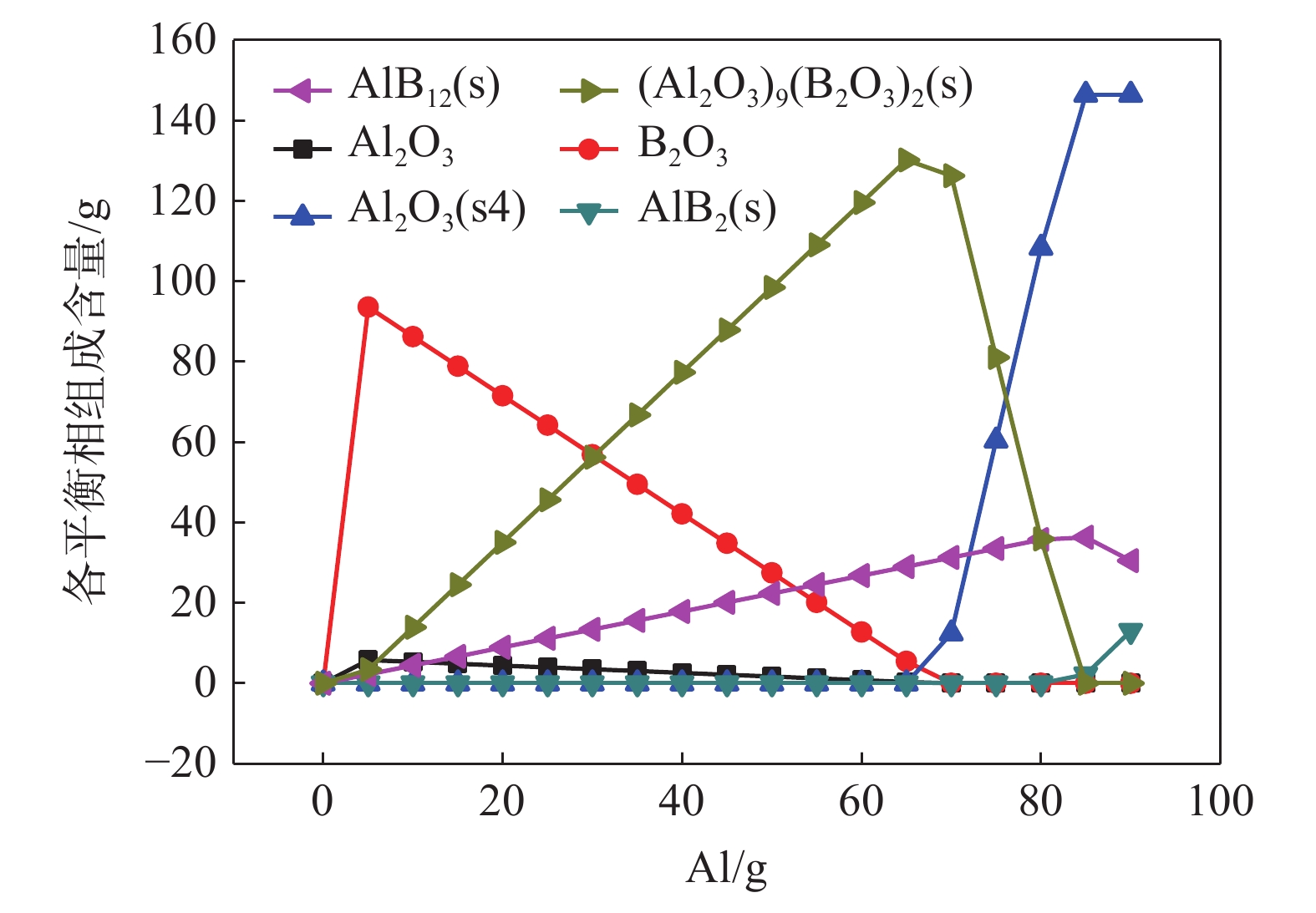 Al-Ti-B master alloy is commonly used as grain refining agent to endow aluminum with better organizational properties. In this paper, TiO2 and B2O3 are used as raw materials for the one-step synthesis of Al-Ti-B master alloy by aluminum thermal reduction. The results show that Al-Ti-B master alloy was successfully prepared under the conditions of Al2O3∶CaO∶CaF2=1∶1∶1, roasting temperature 1550 ℃, roasting time 30 min and Al/TiO2>0.9. The yield of Ti and B is higher than 80%. The Al and B contents of the alloy can be adjusted according to the amount of Al and B2O3 in the raw material. The phase of the alloy changes to TiAl and TiB2 with the increase of the amount of Al and B2O3.