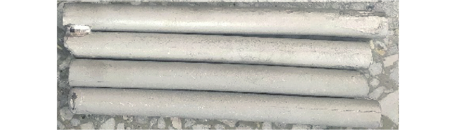 Using high-titanium heavy slag as aggregate to make high-titanium heavy slag tunnel shotcrete. Experiments show that when the content of fly ash and steel fiber is constant, within the range of water-binder ratio of 0.34 to 0.4, the suitable water-binder ratio of high titanium heavy slag tunnel shotcrete is 0.38. The addition of wave-shaped steel fibers can enhance the mechanical properties of the high-titanium heavy slag tunnel shotcrete and reduce the rebound rate of the high-titanium heavy slag tunnel shotcrete. High-titanium heavy slag tunnel sprayed concrete spray products are mainly C-S-H gel and ettringite. C-S-H gel and ettringite fill the gap between high-titanium heavy slag crushed stone and high-titanium heavy slag sand, and wrap steel fibers to form The denser whole improves the flexural strength and splitting strength of the high-titanium heavy slag tunnel shotcrete, and reduces the rebound rate of the high-titanium heavy slag tunnel shotcrete.