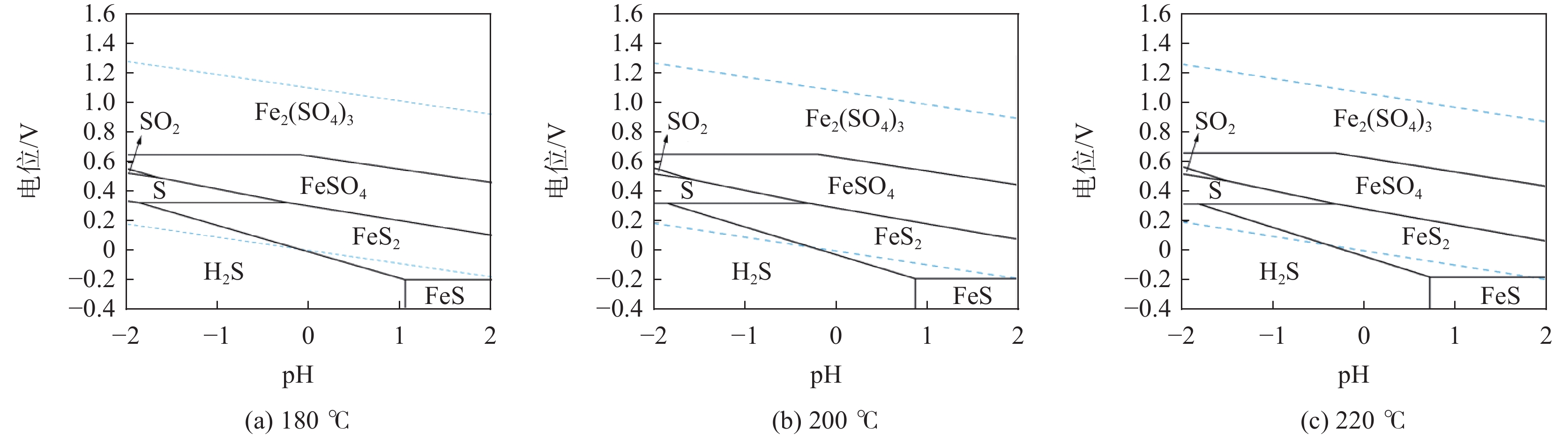 In order to prevent the continuous production of titanium dioxide from being blocked by sublimated sulfur in the process of titanium dioxide acidolysis by sulflate process, this paper starts from the structural composition analysis of titanium concentrate, combined with the main chemical reactions that may exist in the acidolysis process and the specific acidolysis process conditions in actual production by calculating the change of Gibbs free energy of related reactions. The potentio-pH diagram of the system under the condition of acid hydrolysis was drawn, and the mechanism of the occurrence of sublimated sulfur in the tail gas of acid hydrolysis was explored. The results show that the elemental sulfur in the tail gas of acidolysis mainly come from the pyrrhotite (FeS) in titanium concentrate. The pyrrhotite is oxidized in the complex environment of acid hydrolysis at high temperature (180~220 ℃) and high acidity (pH: ?1.51~?1.47) to produce elemental sulfur, which is cooled and solidified to form sublimated sulfur after the reaction. Therefore we can start from the specific process, change the acid hydrolysis environment (change the chemical potential, reduce the environmental pH value) without reducing the acid hydrolysis rate in order to avoid or reduce the occurrence of sublimation sulfur in production, reduce the effect of sublimation sulfur on the sulfate process titanium white.
