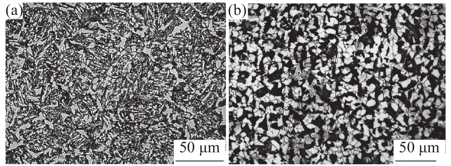 Three kinds of bainite/martensite dual-phase steels with different titanium content (0, 0.9, and 1.8 wt%) were smelted in this paper. The bainite content in the samples was changed by heat treatment to maintain the same strength level. The effect of bainite content on the hydrogen embrittlement resistance of bainite/martensite dual-phase steel was studied by electrochemical hydrogen charging and a slow strain rate tensile test. The results show that the test steel with a titanium content of 1.8 wt% has the highest bainite content and the best resistance to hydrogen embrittlement, mainly due to the capture of hydrogen atoms by irreversible traps such as cementite ferrite interface dislocations. In order to improve the hydrogen embrittlement resistance of bainite/martensite dual-phase steel, the number of fine cementite particles in the bainite structure can be increased, which provides more irreversible hydrogen traps for hydrogen migration during plastic deformation.