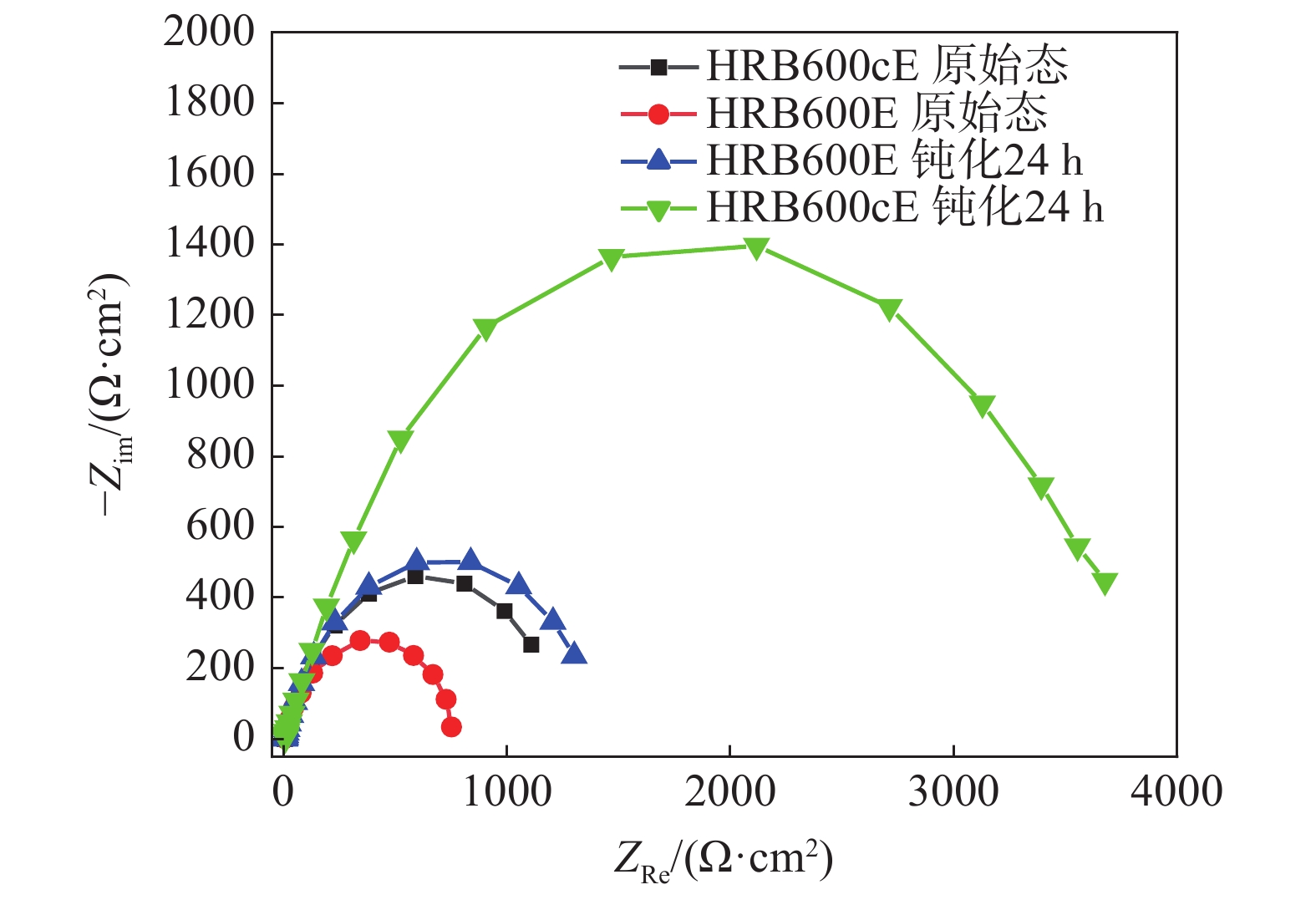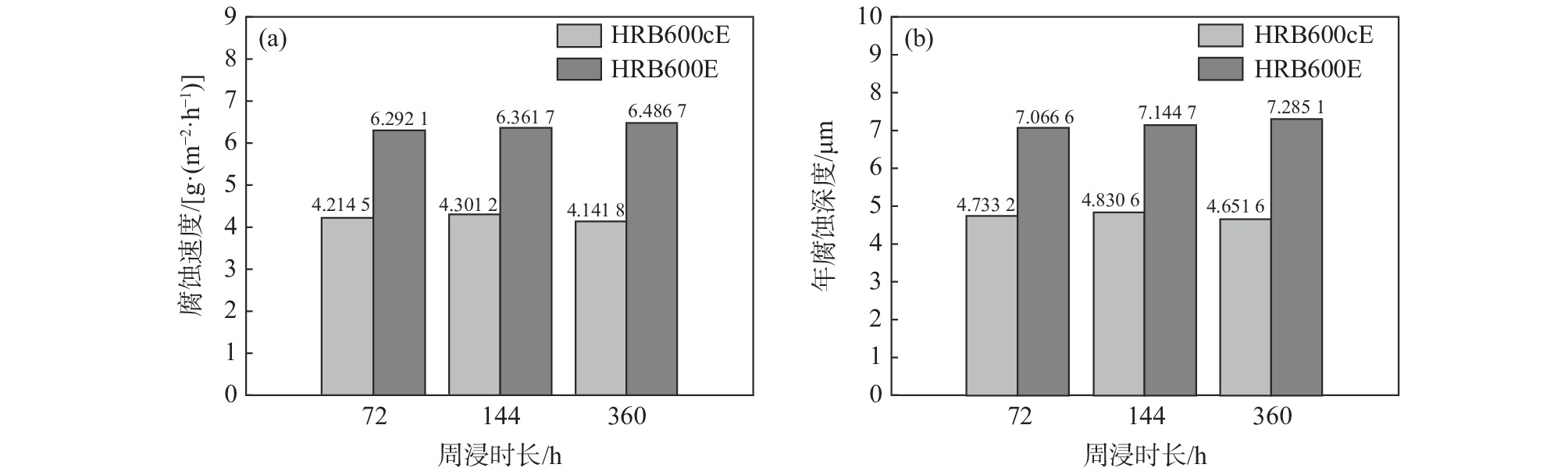 The effect of Cr and V elements on the corrosion behavior of the ordinary 600 MPa grade high-strength seismic steel bar HRB600E and the same grade corrosion-resistant steel bar after alloy regulation was studied by the cyclic immersion tests, electrochemical tests, surface analysis, and phase analysis in a chloride environment. The results show that the addition of corrosion-resistant alloy promotes the formation of bainite in the matrix and slows down the corrosion process of the ferrite anode. The synergistic effect of V and Cr elements can hinder the infiltration of Cl?, effectively delaying the growth rate of the rust layer, and the corrosion rate of corrosion-resistant steel bars decreases after 360 hours of cyclic immersion. Under the control of Cr-V elements, the self-corrosion potential of the electrochemical properties of corrosion-resistant steel bars increases, while the potential shifts positively after passivation, and the corrosion current density decreases. The AC impedance value of the corrosion-resistant steel bar is significantly improved after passivation, and it shows excellent corrosion resistance in the alkaline environment of concrete. The regulation of alloying elements improves the phase composition of corrosion products of the steel bars. The proportion of α-FeOOH and γ-FeOOH in the later corrosion products of the corrosion-resistant steel bars is higher and the internal rust layer is enriched with spinel-structured product FeCr2O4, which increases the density and stability of the internal rust layer.