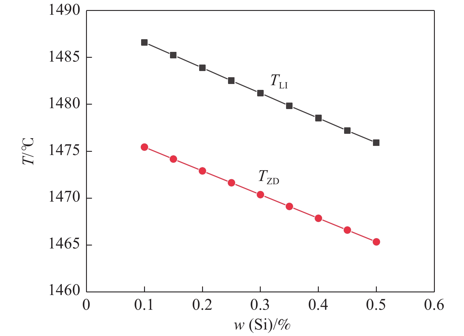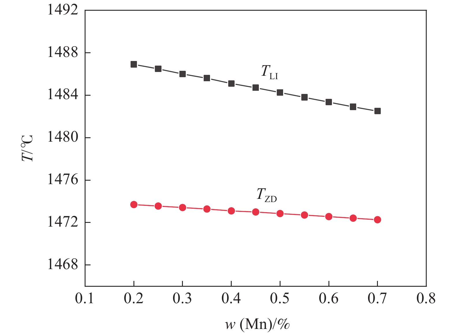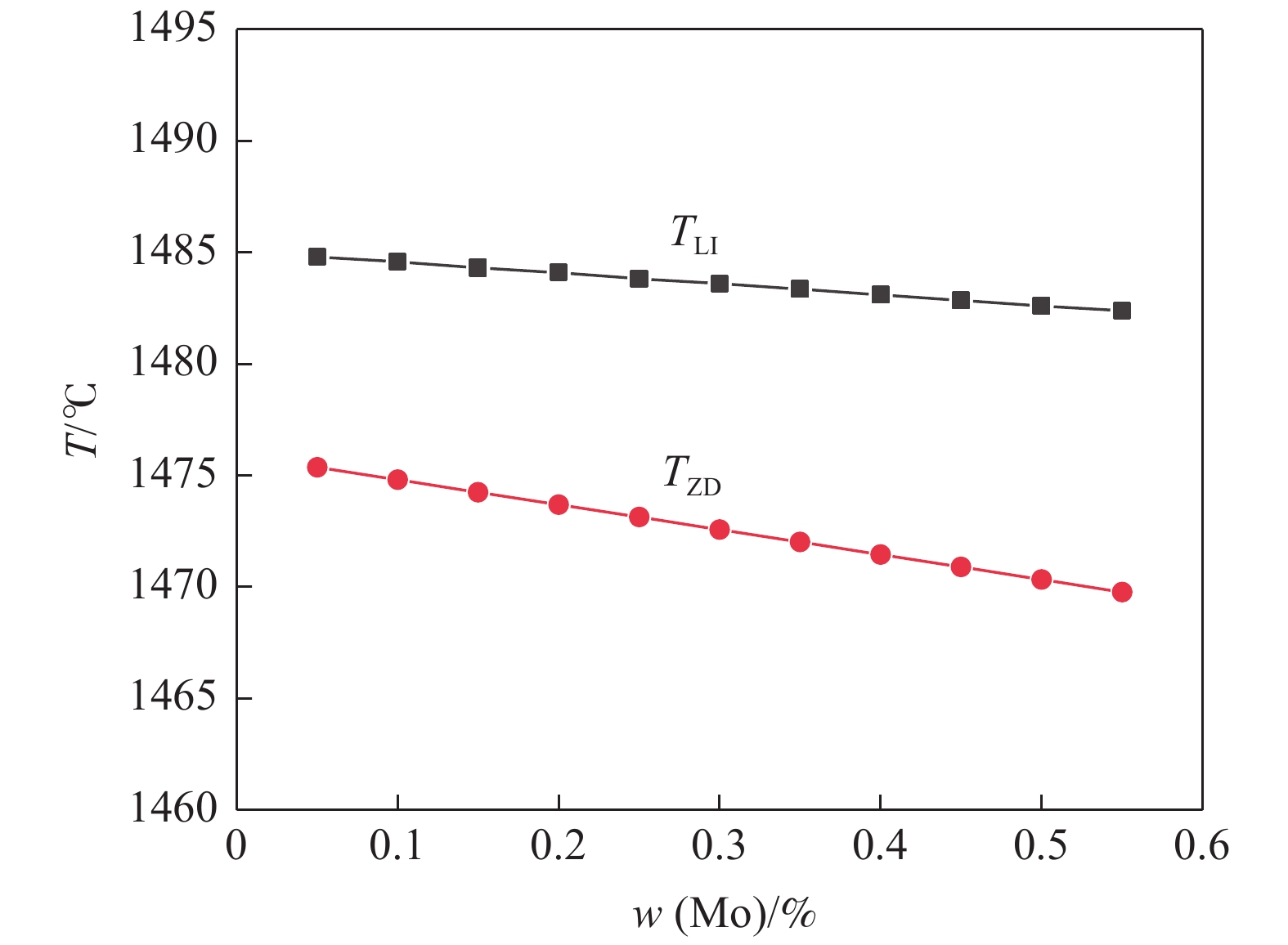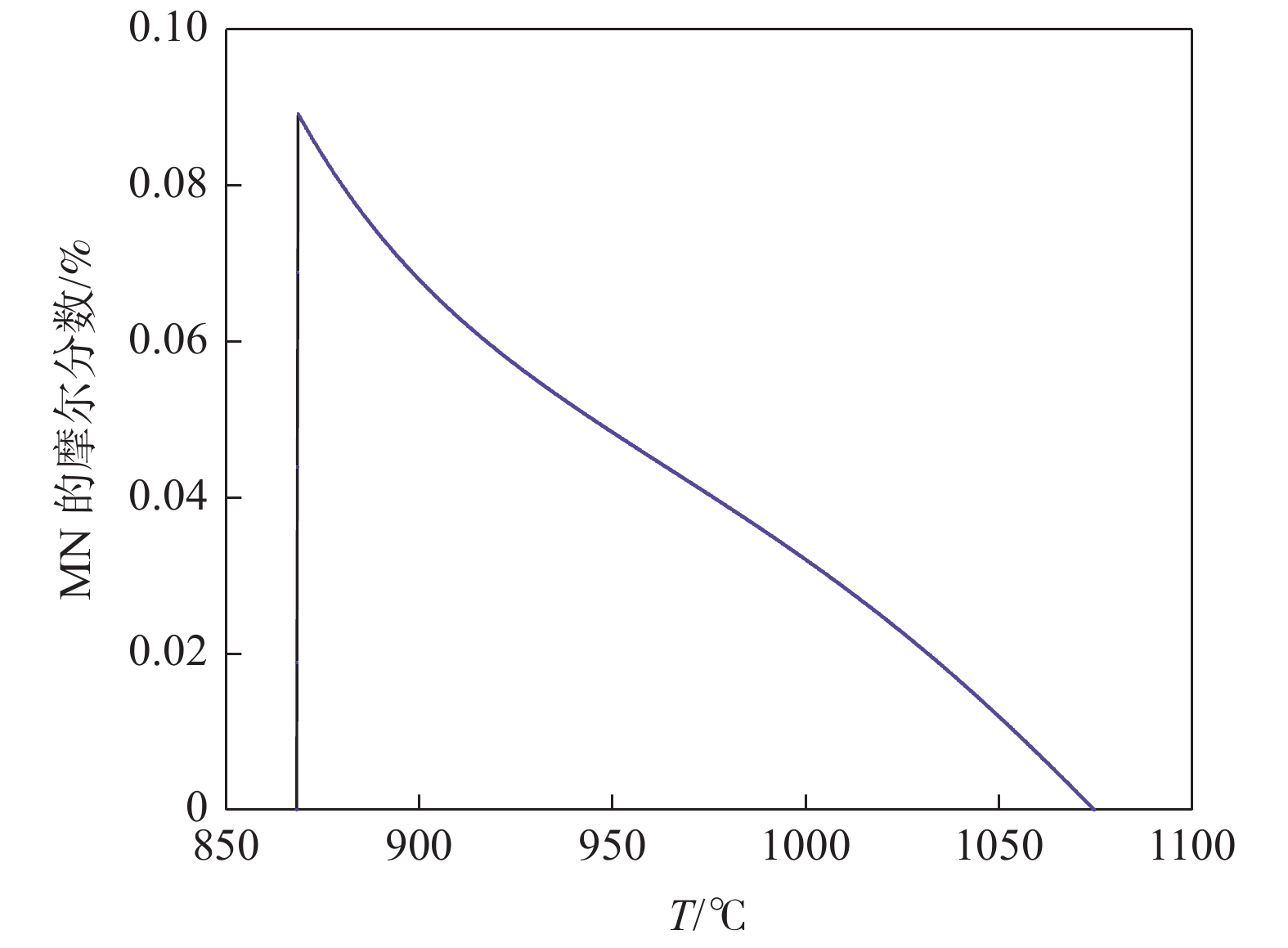 The phase transformation and precipitation behavior of 12Cr1MoVG steel during cooling were studied by thermodynamic software JMatPro, and the effect of alloying elements in the steel on longitudinal crack sensitivity was analyzed. The results show that the transformation path of 12Cr1MoVG steel from 1600 ℃ to 400 ℃ is L→ L+δ→ L+δ+γ→ δ+γ→ γ→ γ+MnS→ γ+MnS+MN→ γ+MnS+M(C,N)→ γ+α+MnS+M(C,N)→ γ+α+MnS+M(C,N)+AlN→ γ+α+MnS+M(C,N)+M(C,N)+AlN+M23C6→ α+MnS+M(C,N)+M(C,N)+AlN+M23C6. With the increase of P, S, Mo, V and Cr contents in the steel, the longitudinal crack sensitivity increases. While, the longitudinal crack sensitivity decreases with the increase of Mn and Si contents. Based on the temperature range of the (α+γ) two-phase region and the precipitation behavior of M (C, N), the low-temperature brittleness temperature range is calculated to be in the range of 747.6~869 ℃, which is basically consistent with the tensile testing results.