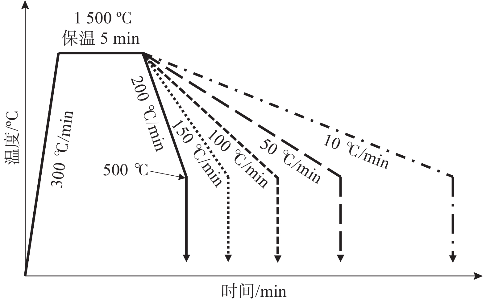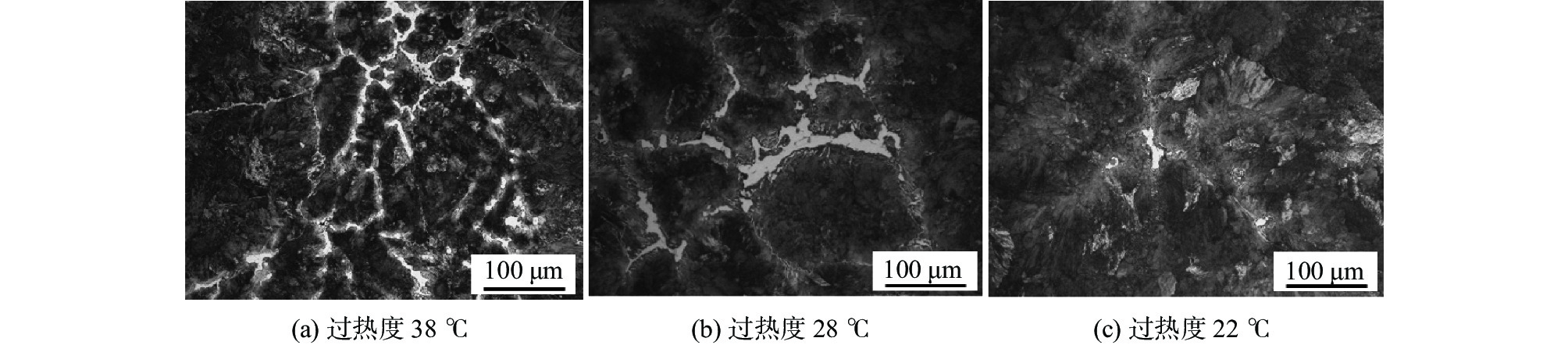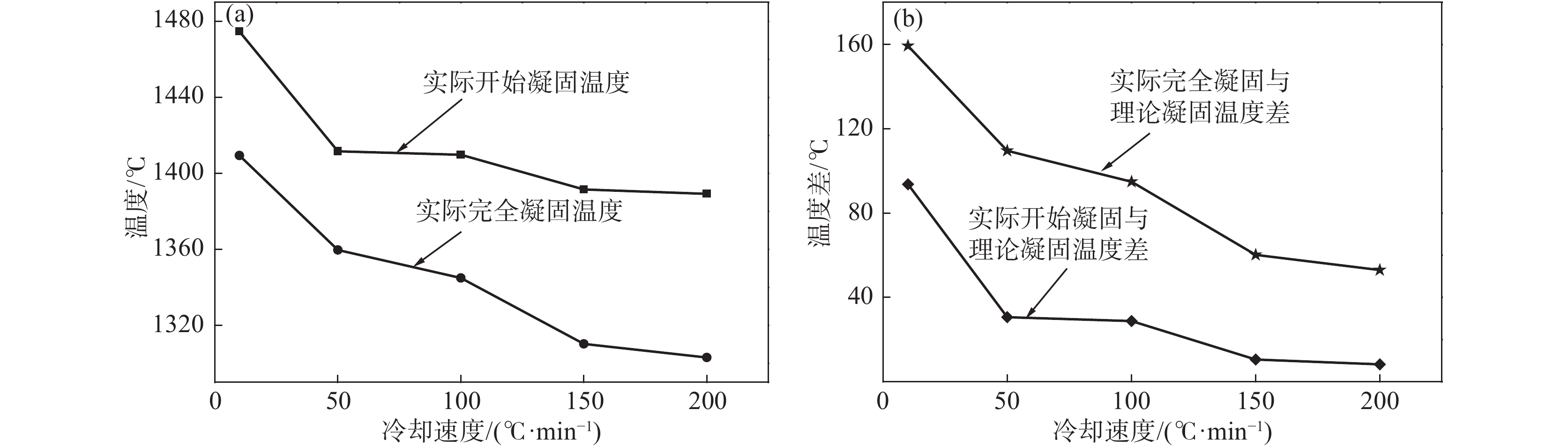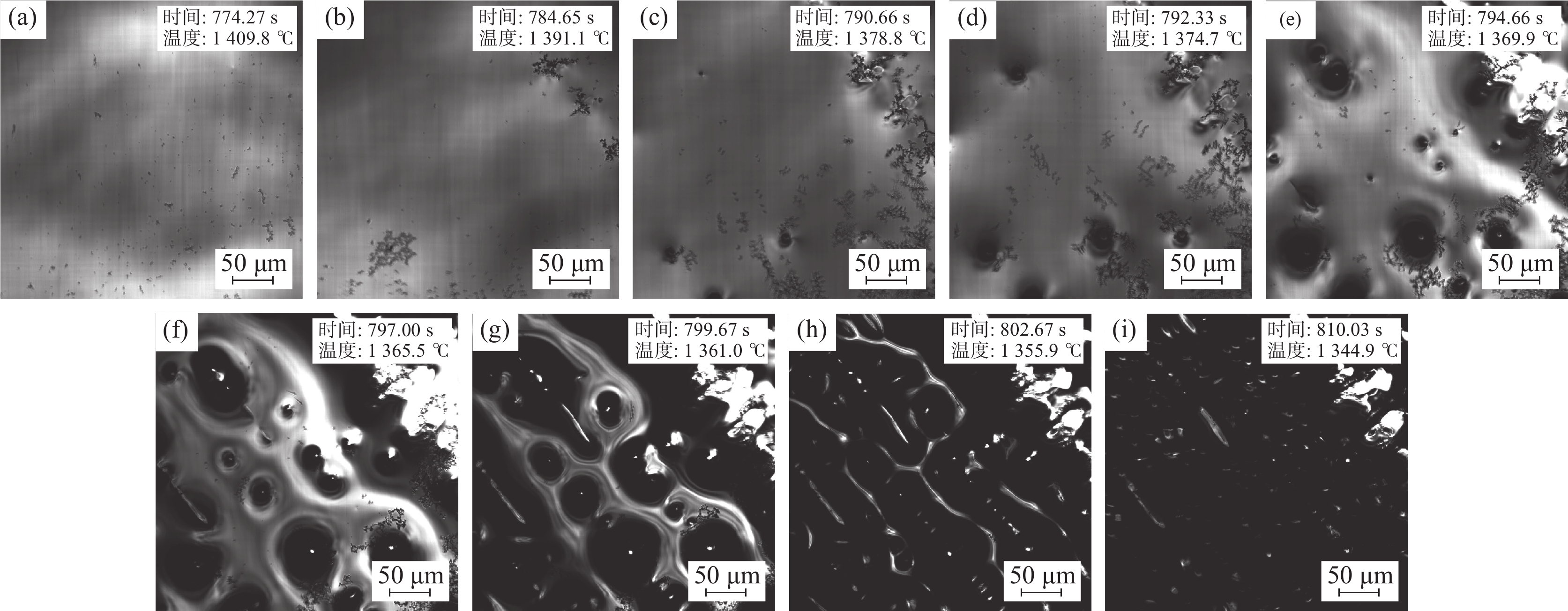 The solidification process of the GH5188 alloy at cooling rates of 10-200 ℃/ min was dynamically in-situ observed by high-temperature confocal laser scanning microscopy (CLSM). The effects of cooling rates on the solidification process, structure and precipitates of the GH5188 alloy were studied. The results show that the solidification process for the GH5188 alloy is slow-rapid-slow solidification. The higher the cooling rate, the greater the peak solidification rate is obtained. The cooling rate affects the solidification temperature of the alloy, and the solidification temperature decreases with the increase in the cooling rate. With the increase in cooling rate, the secondary dendrite arm spacing of the alloy after solidification decreases. The size of precipitates is more uniform and refined, which is conducive to reducing the crack sensitivity of the alloy during solidification. The secondary dendrite arm spacing prediction formula is obtained under different cooling rates.